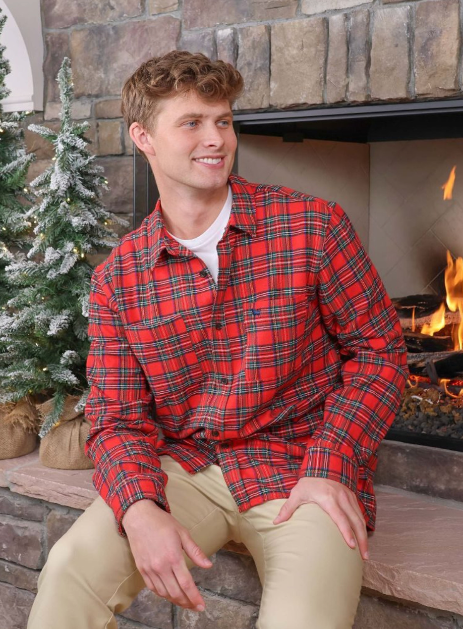 Simply Southern | Men's Plaid Button Up - Red