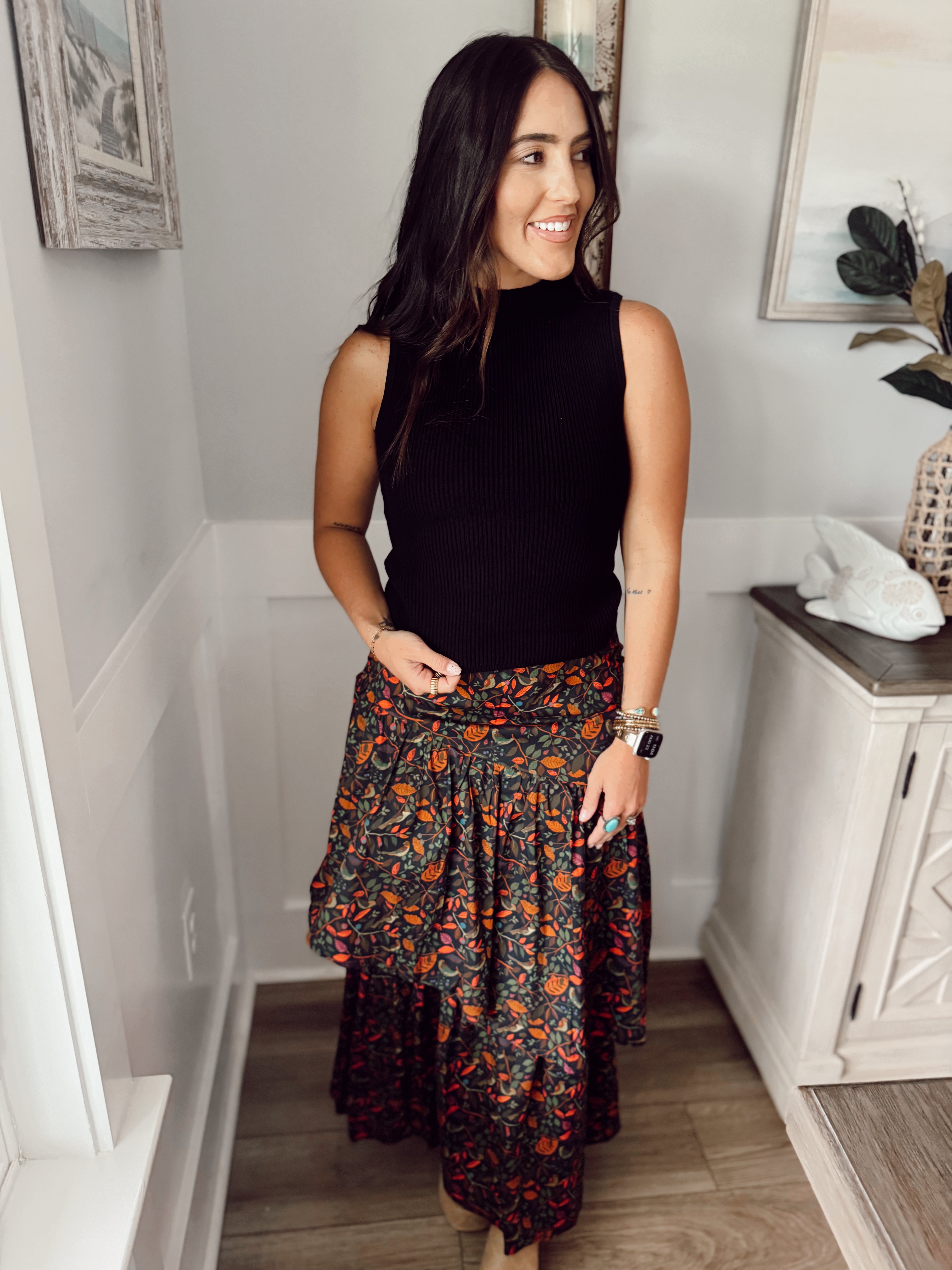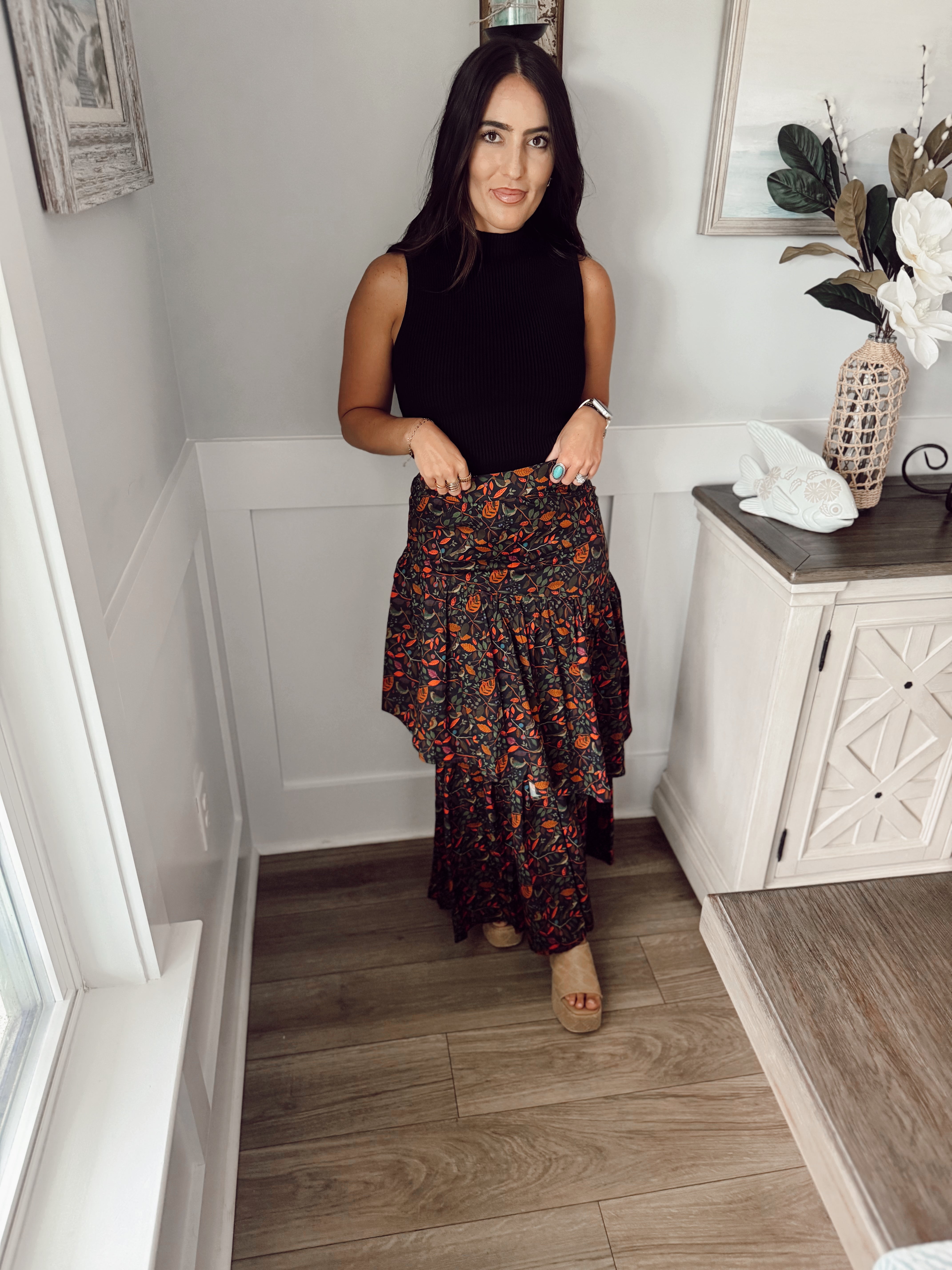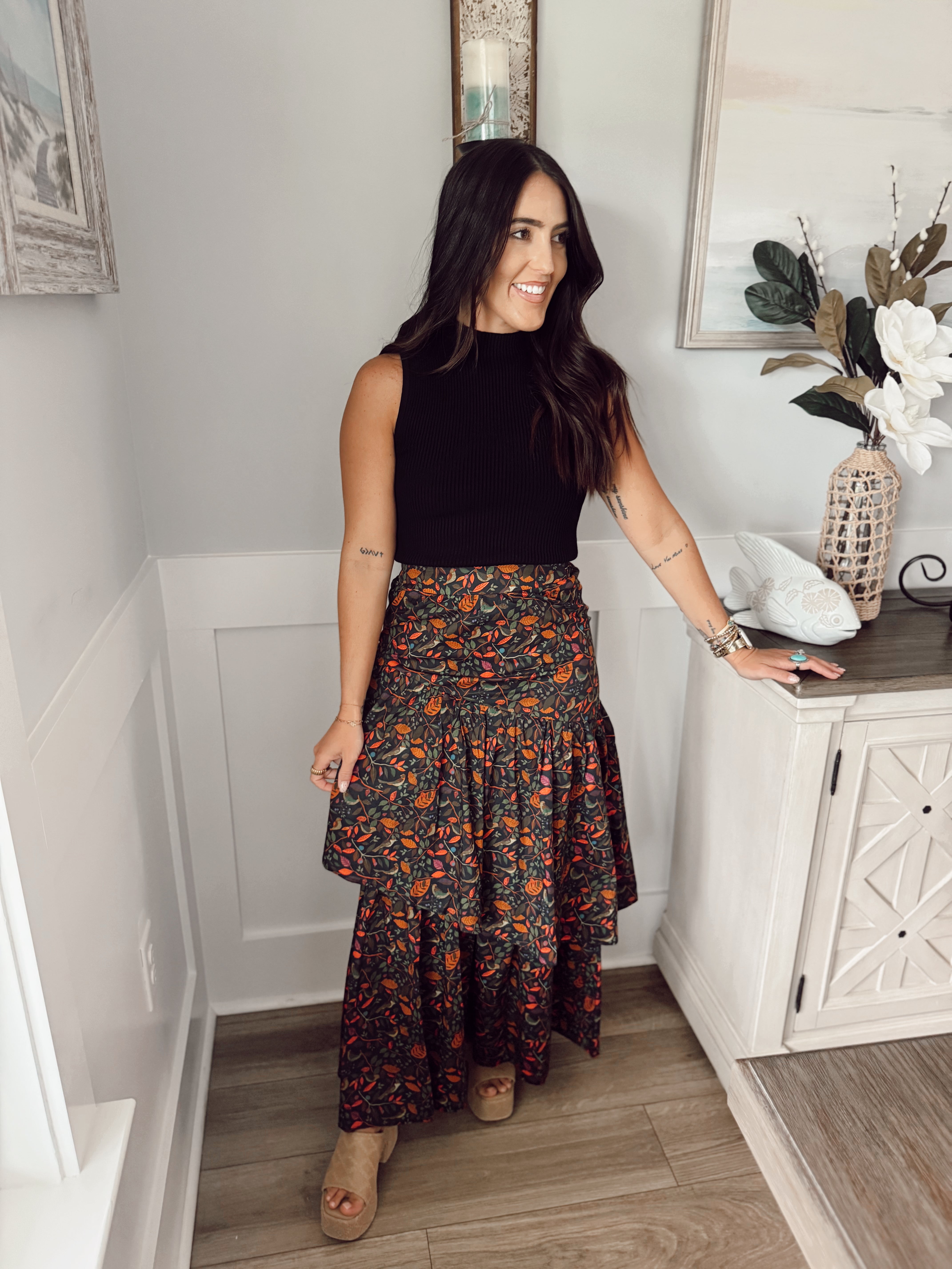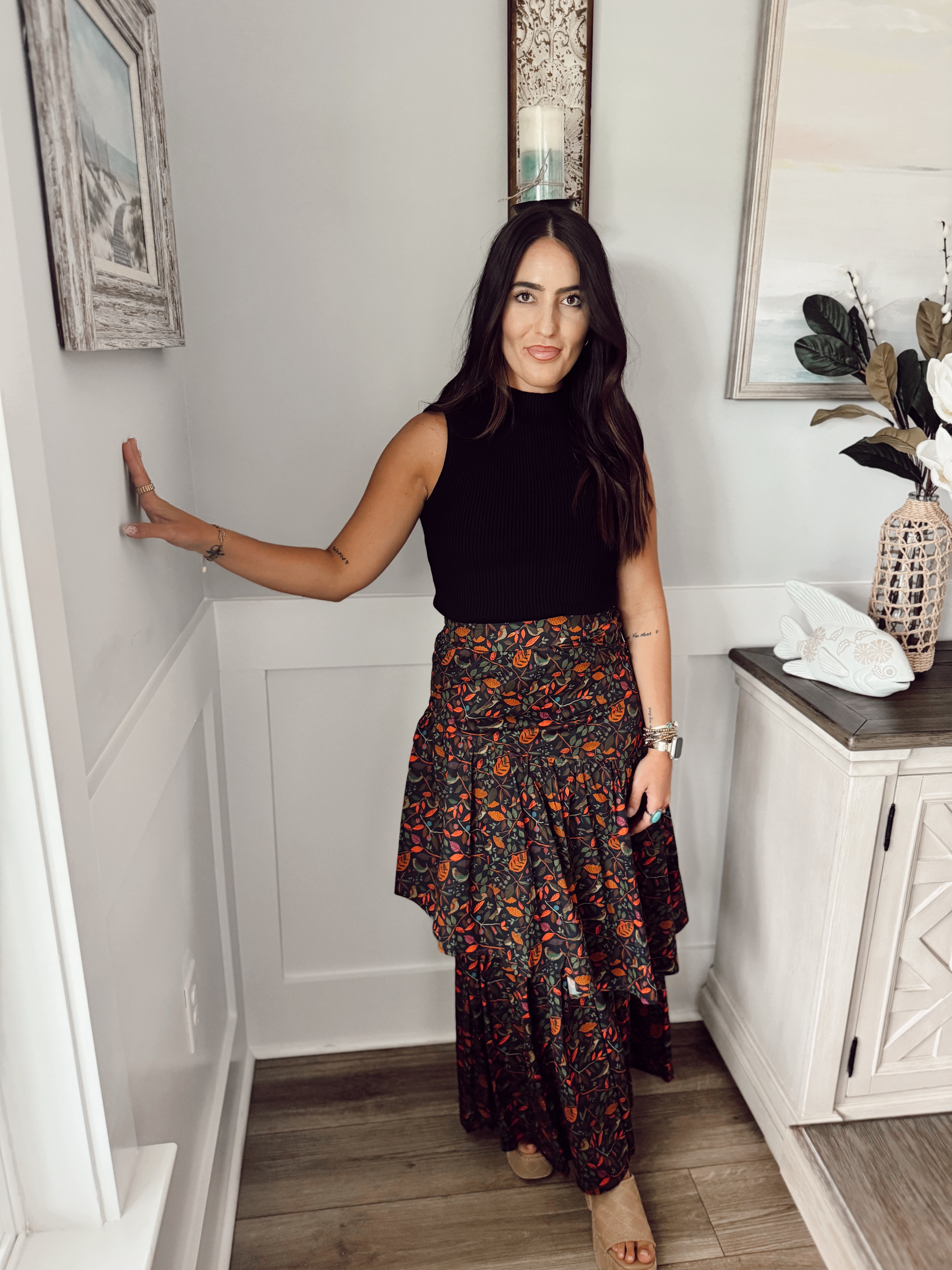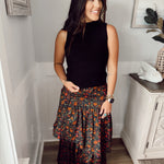 Introducing the Celeste Maxi Skirt in Wintergarden – a captivating blend of elegance and comfort that will sweep you off your feet. This tiered maxi skirt is designed to make a striking fashion statement while offering versatility and ease of wear.