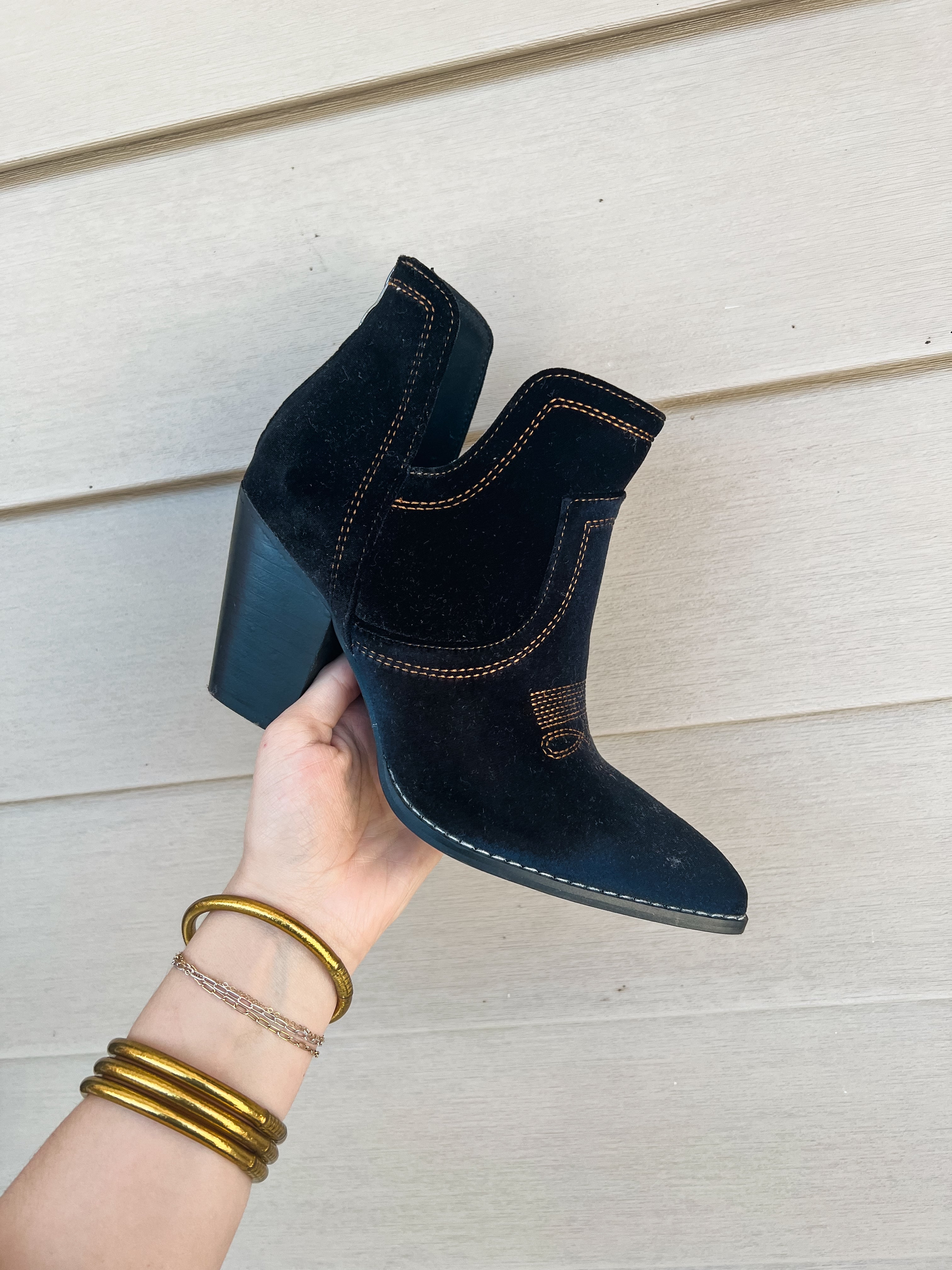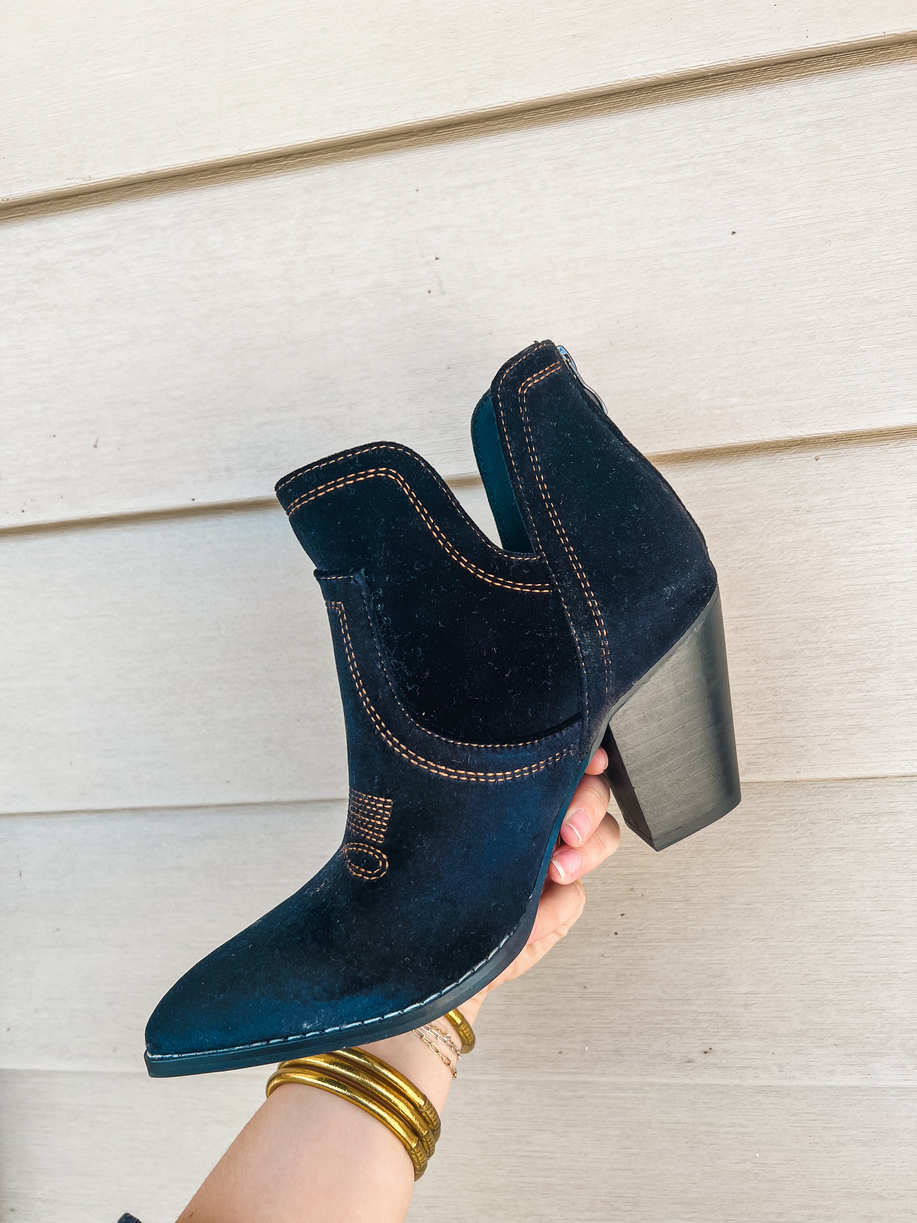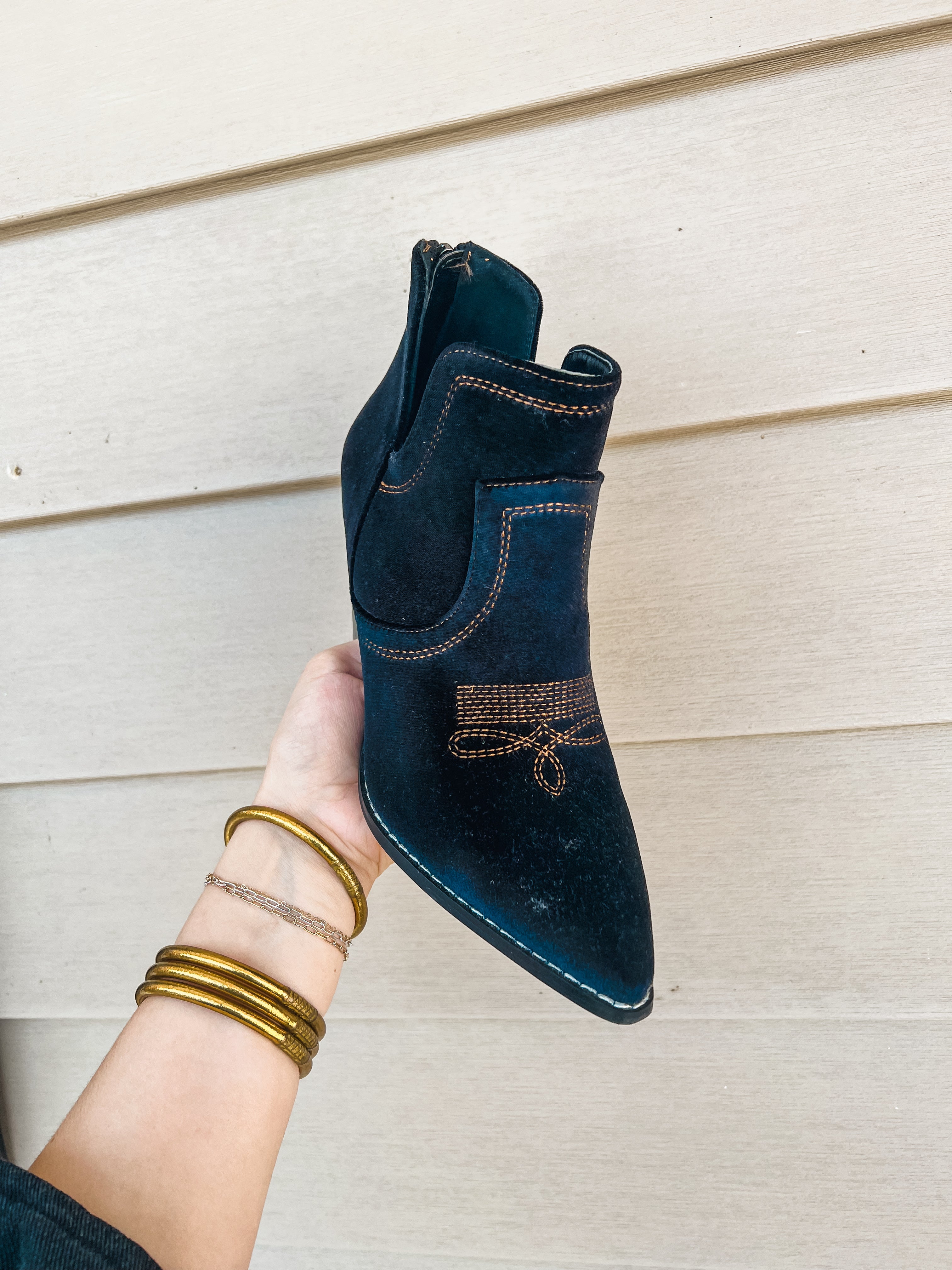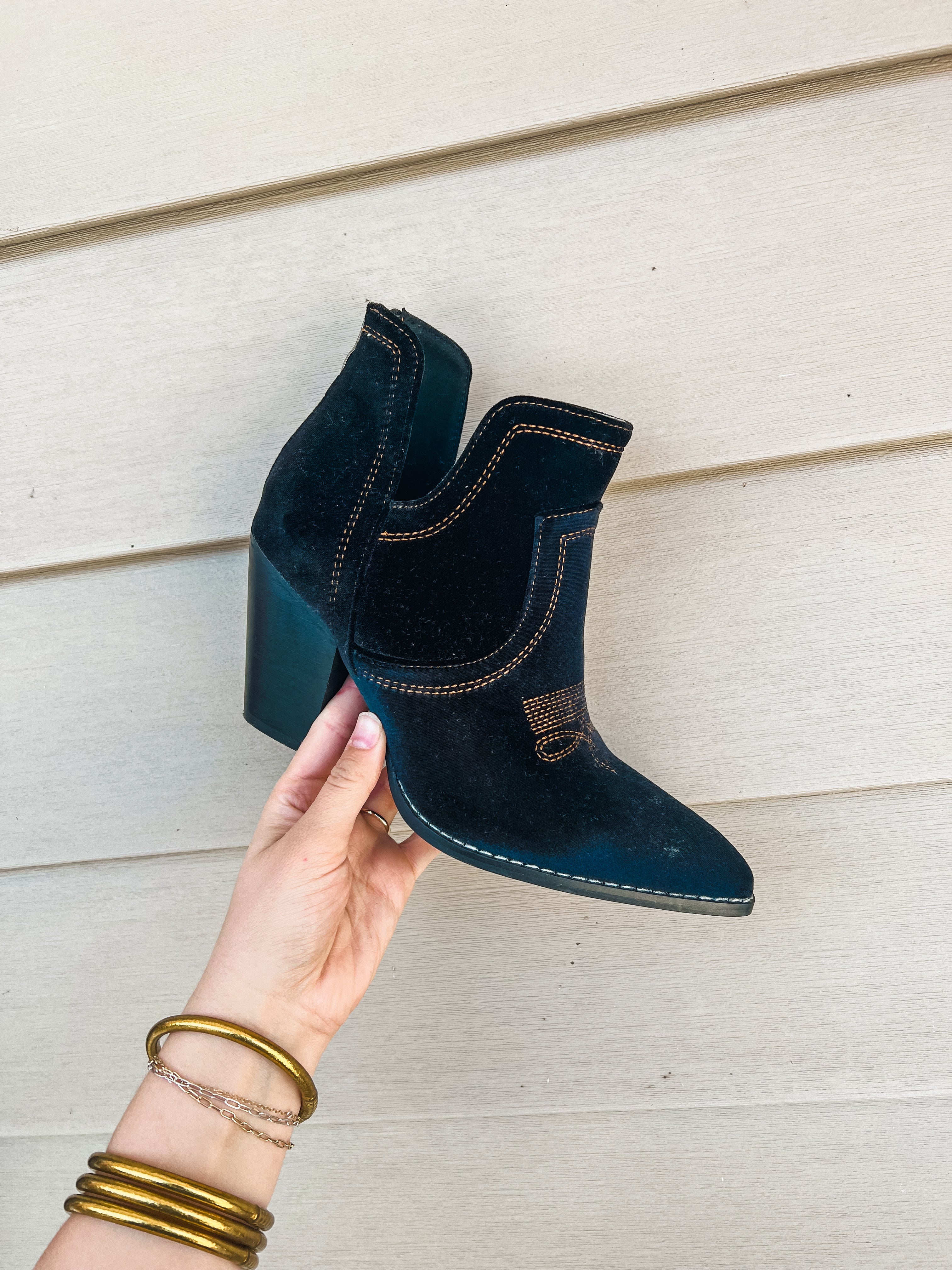 Holy Smoke Show! Boot in this beautiful Brown Velvet color! This western style boot features contrast stitching and cutouts on both sides of the ankle for a bold and unique look. With a convenient zipper back, it's easy to slip on and off, making it the perfect choice for pairing with dresses, leggings and sweaters.