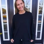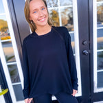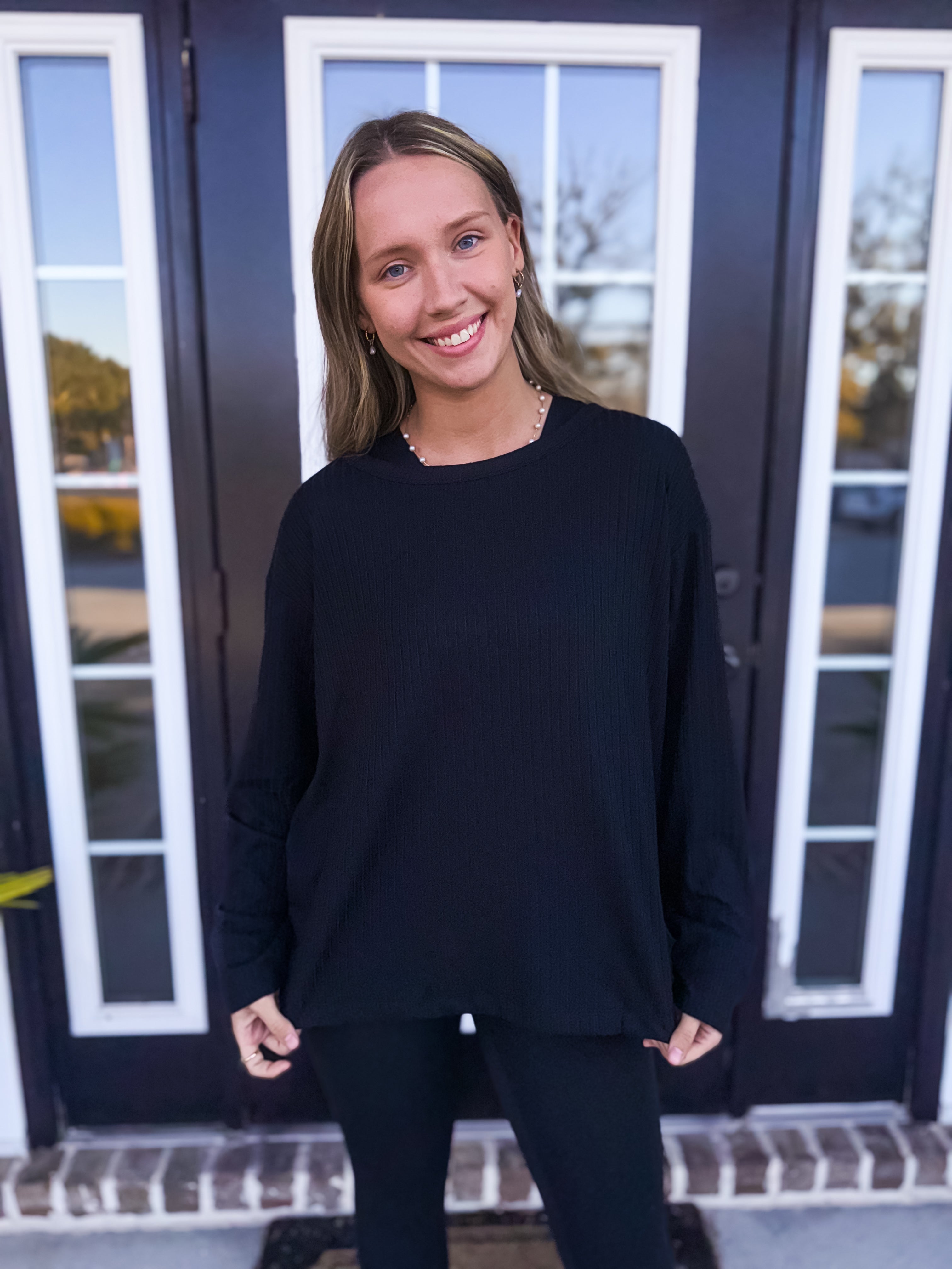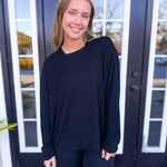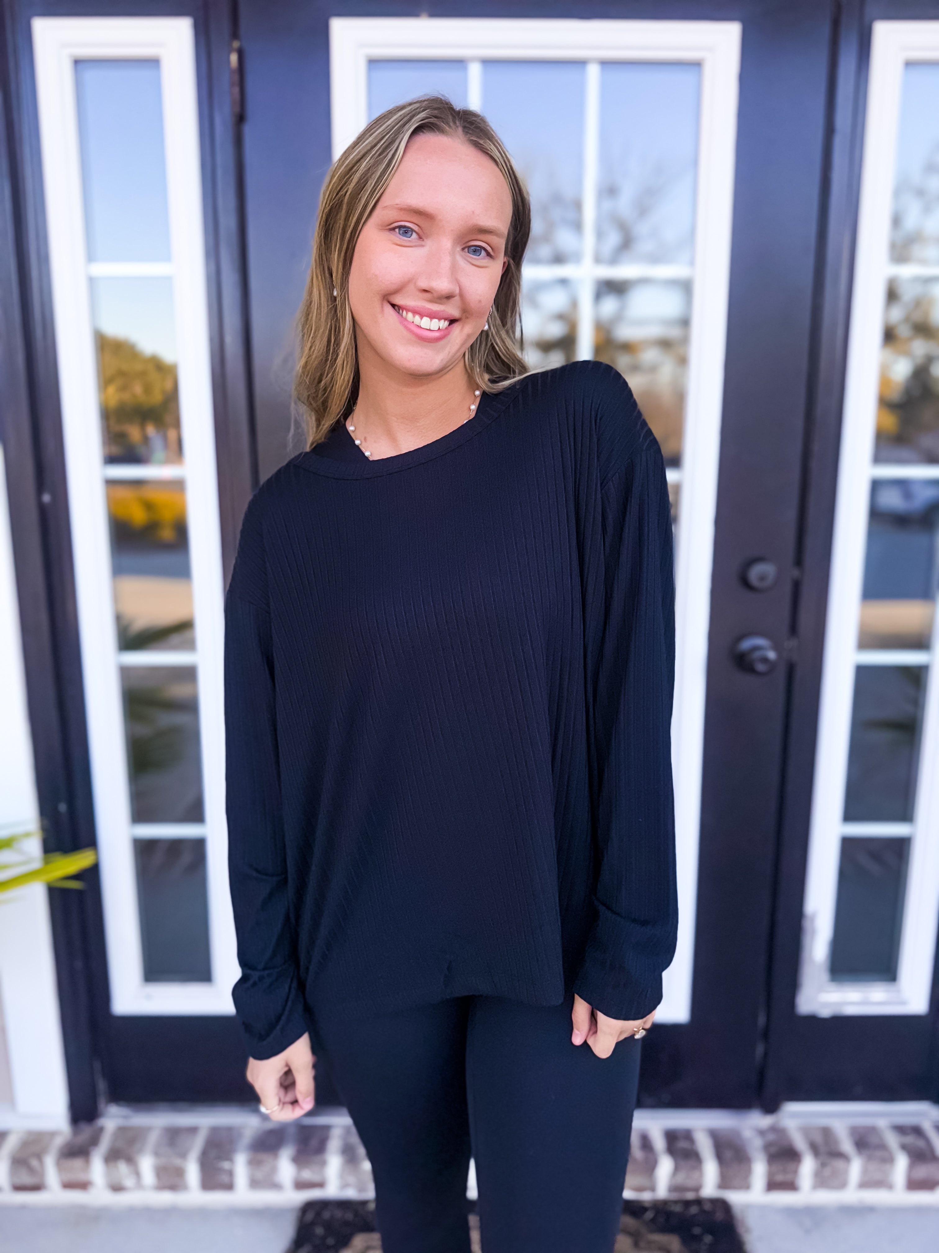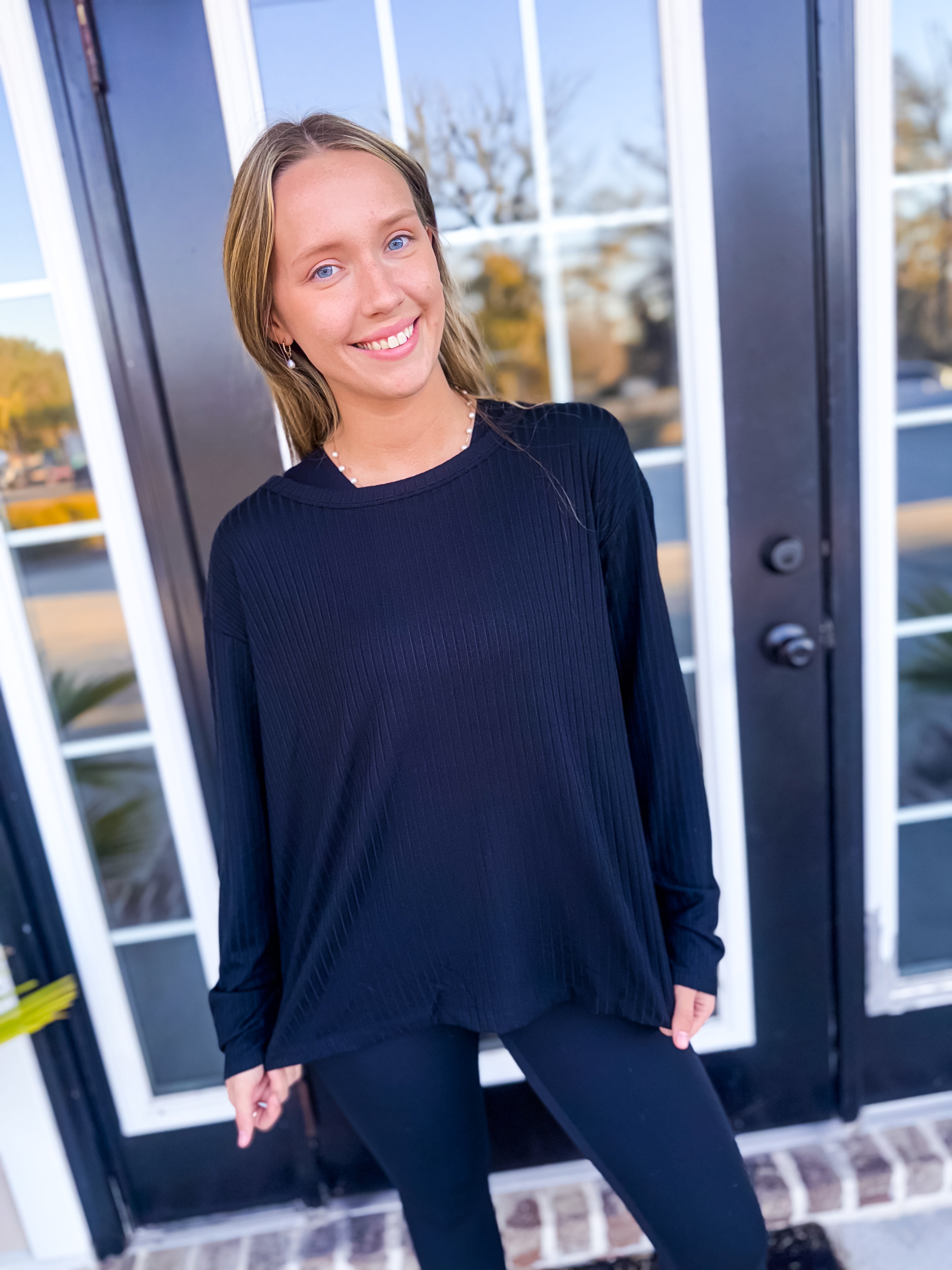 SOFT RIBBED SCOOP NECK TOP- BLACK