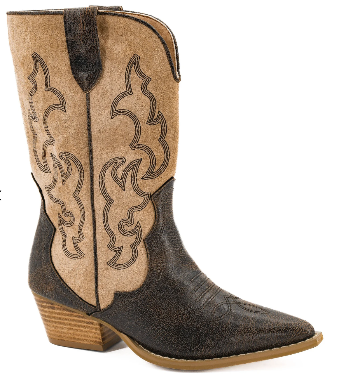 Kick up your style with the Corky’s Somebody’s Problem Boot! 🤎 This western-inspired boot features a two-tone design with stitched details, a comfy stacked heel, and an easy side zipper. Perfect for pairing with denim, dresses, or skirts for that effortlessly chic country vibe.
