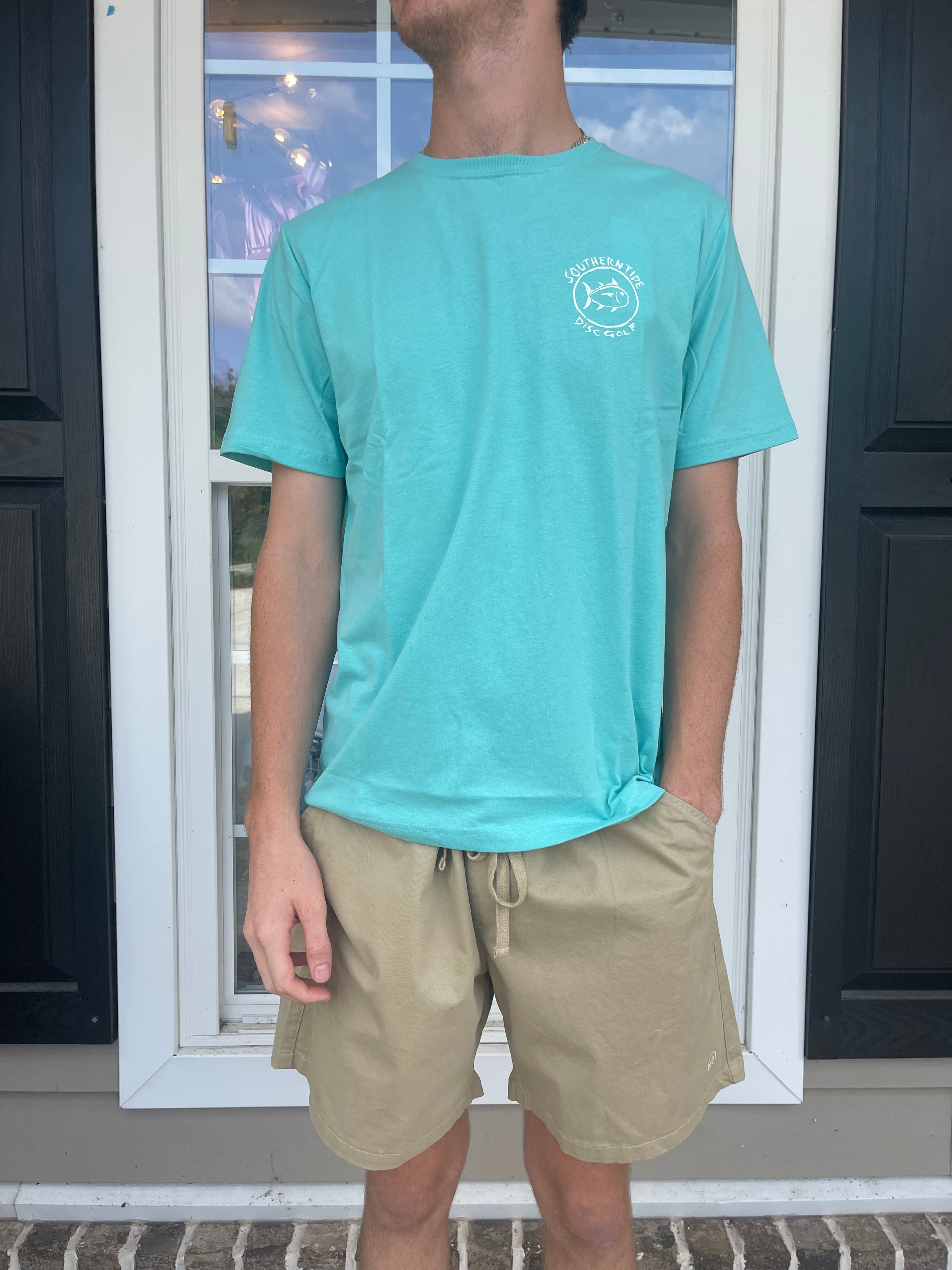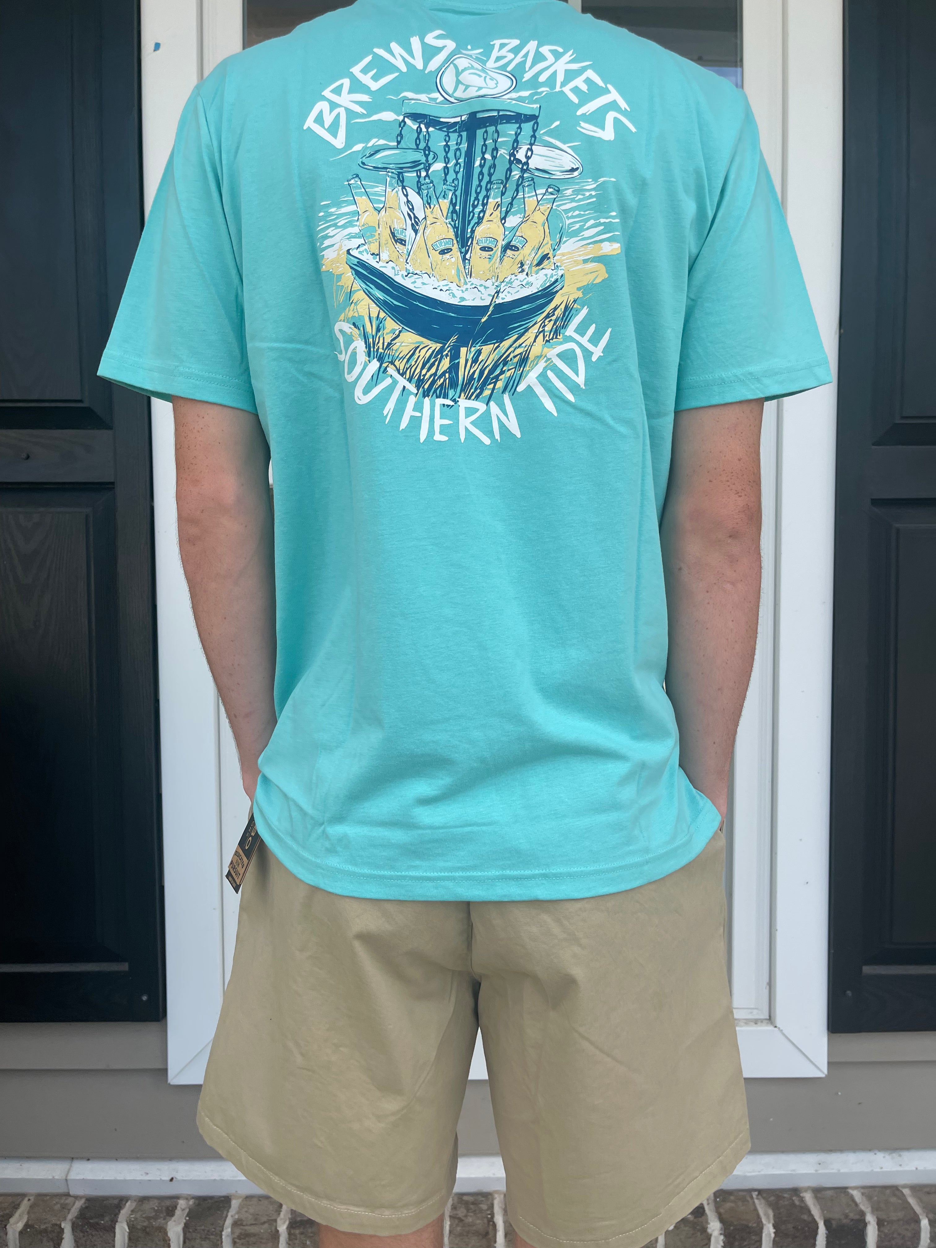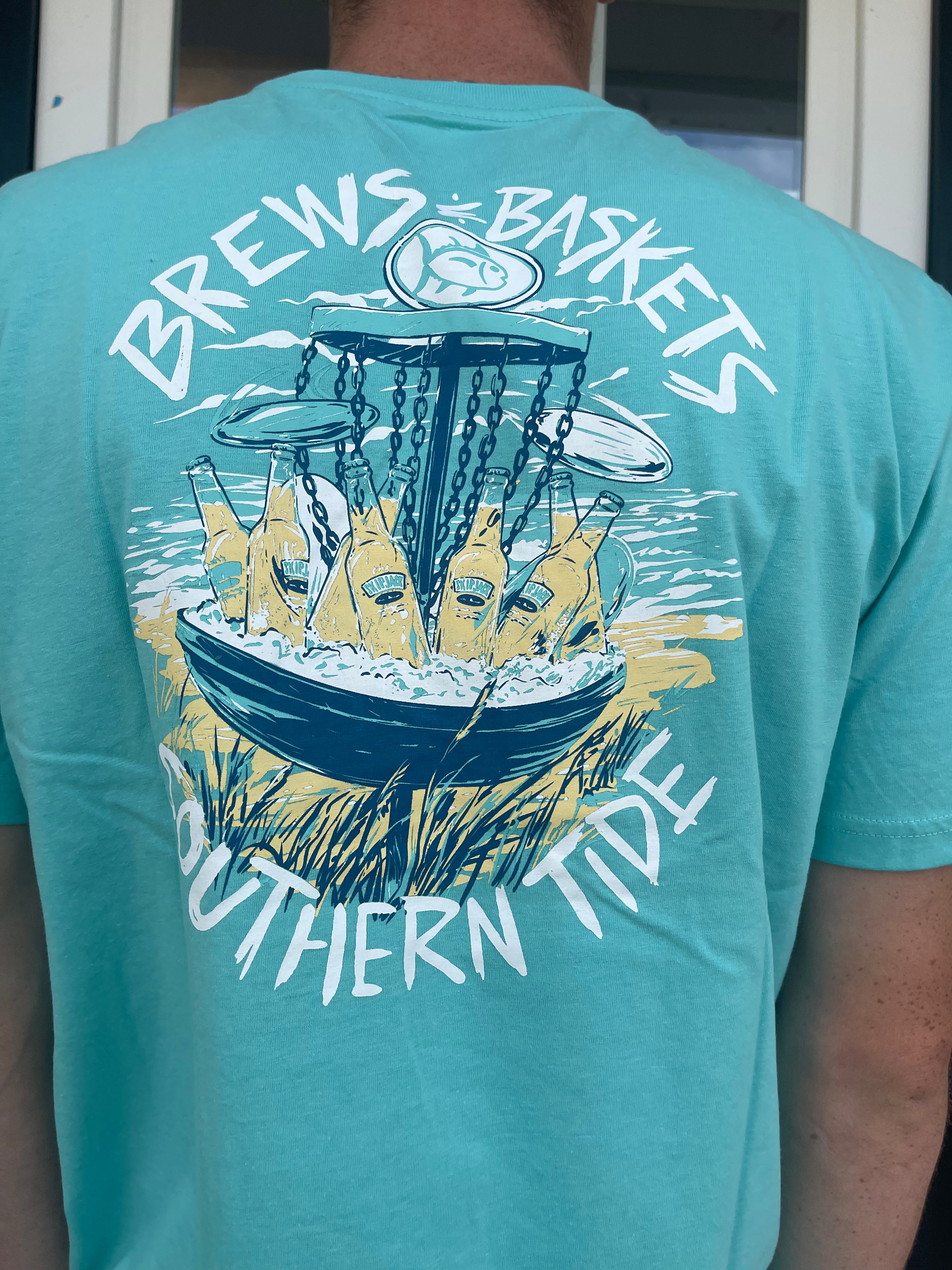 Disc golf and day drinking? Don't mind if we do. Crack open a cold one for your best round in this soft cotton blend t-shirt featuring an original Southern Tide brews and baskets design.
