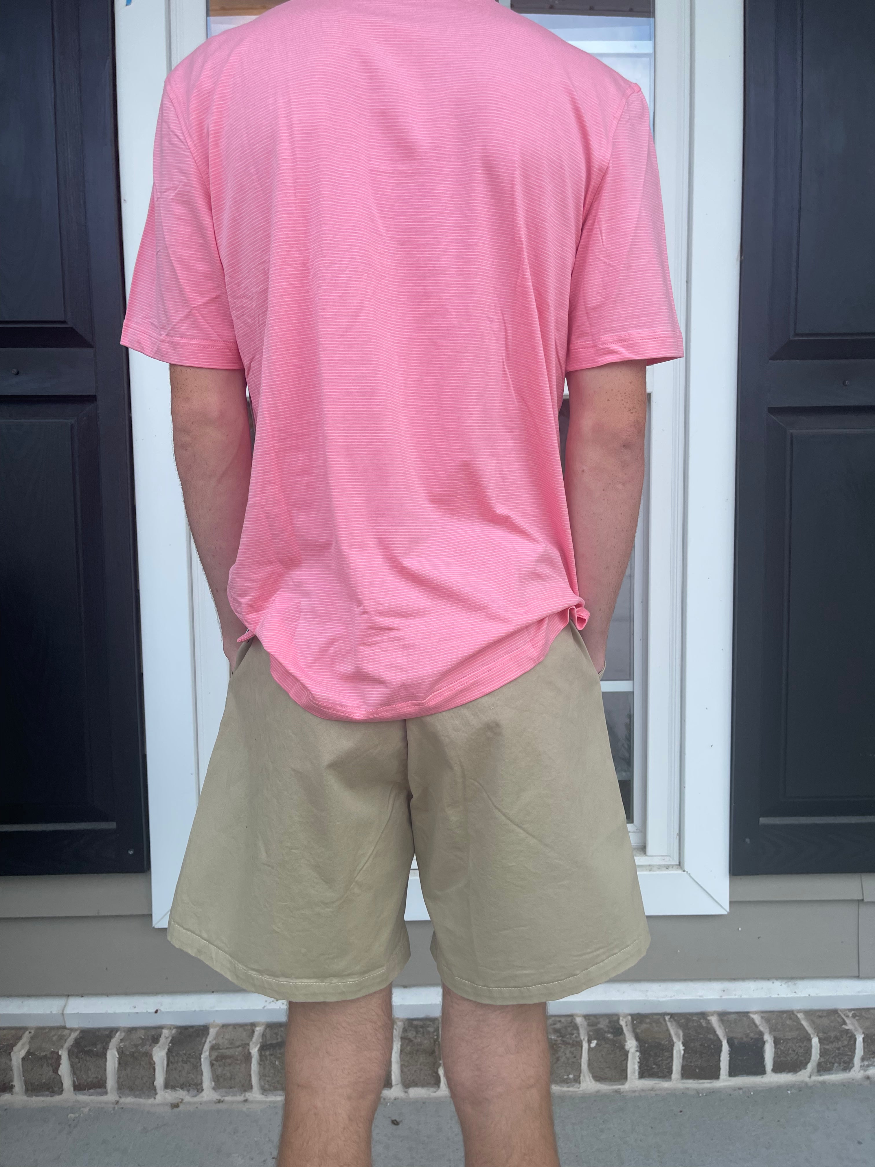 Sun-washed spring colors pair with a simple stripe to bring the sea and season together. This classic short-sleeve polo shirt features a 3-button placket and drop-tail hem for the perfect fit at parties or the pier.