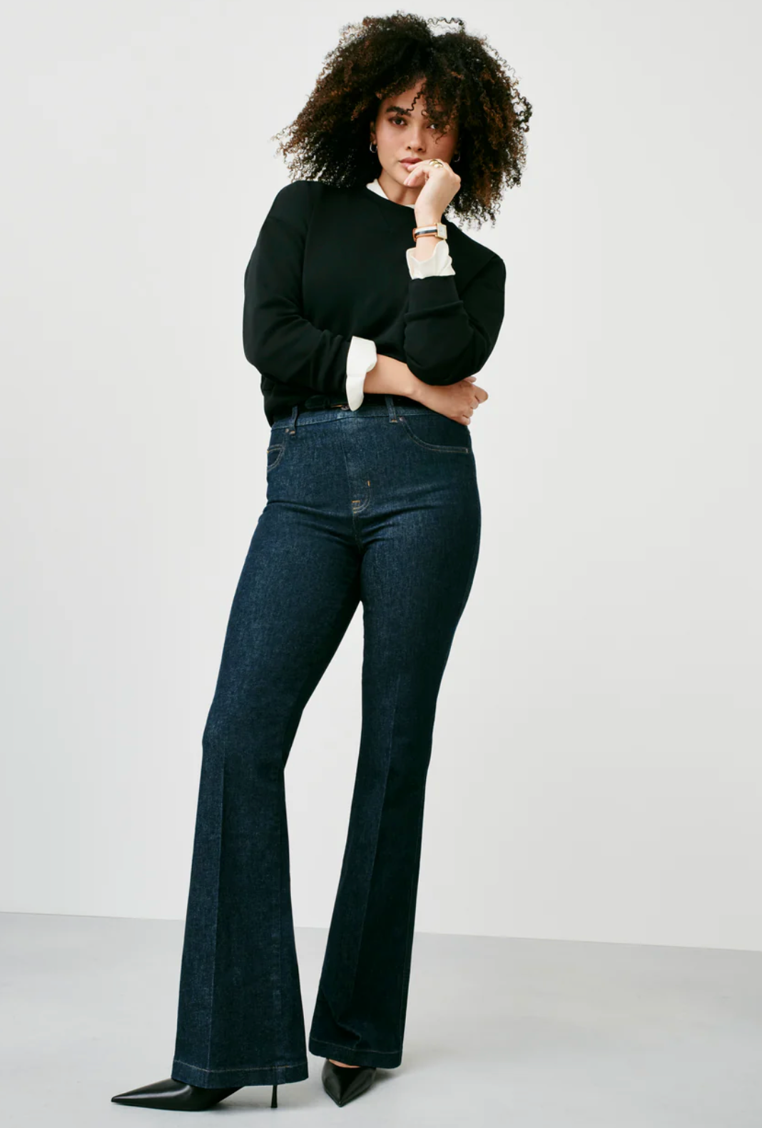 - Fitted, Flare Leg Style: Enhances curves and lengthens legs with a 21" approximate flare leg opening