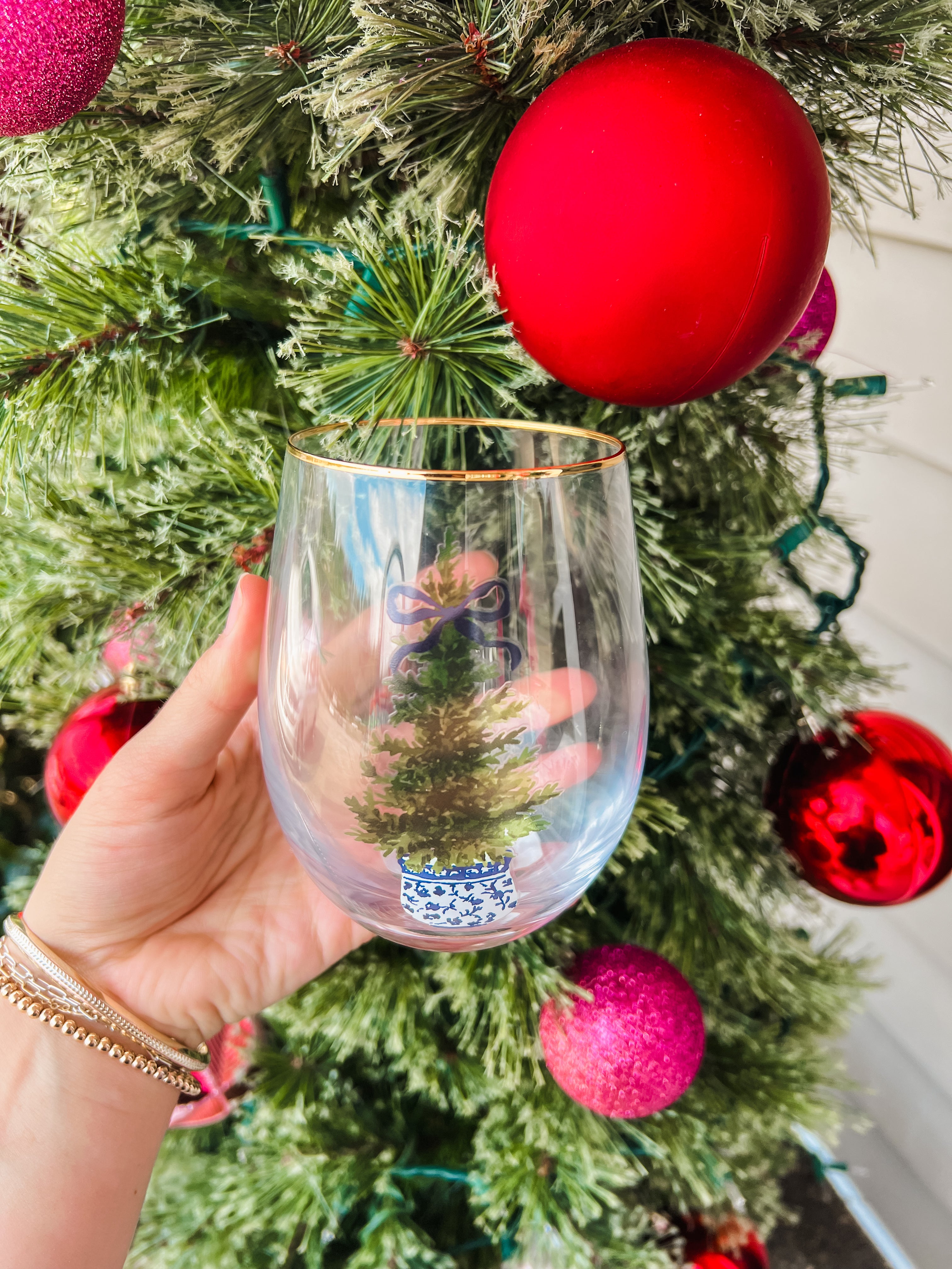 Stemless Wine Glass Fancy & Festive Tree - Final Sale