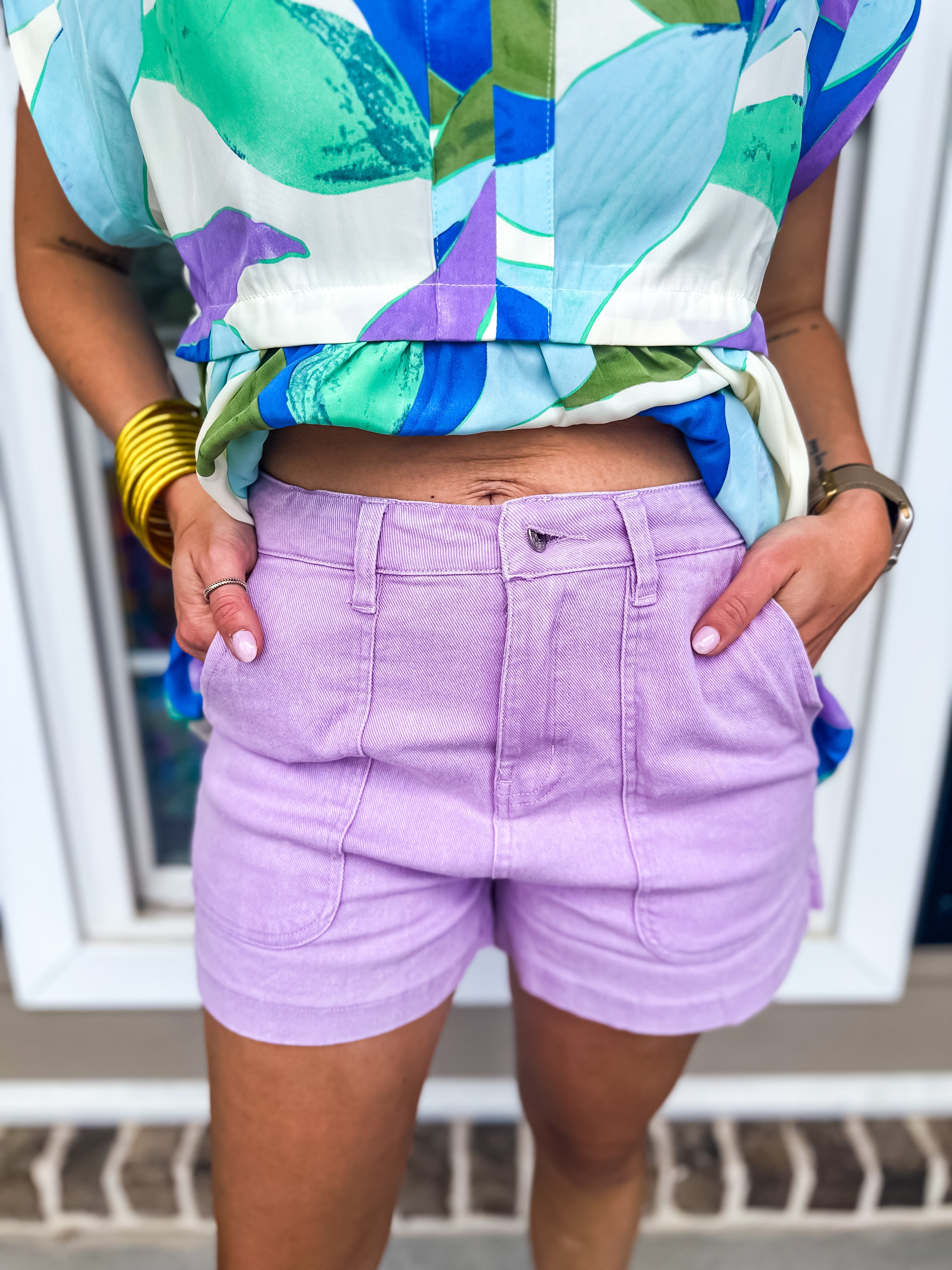 Steph HW Denim Shorts- Lavender