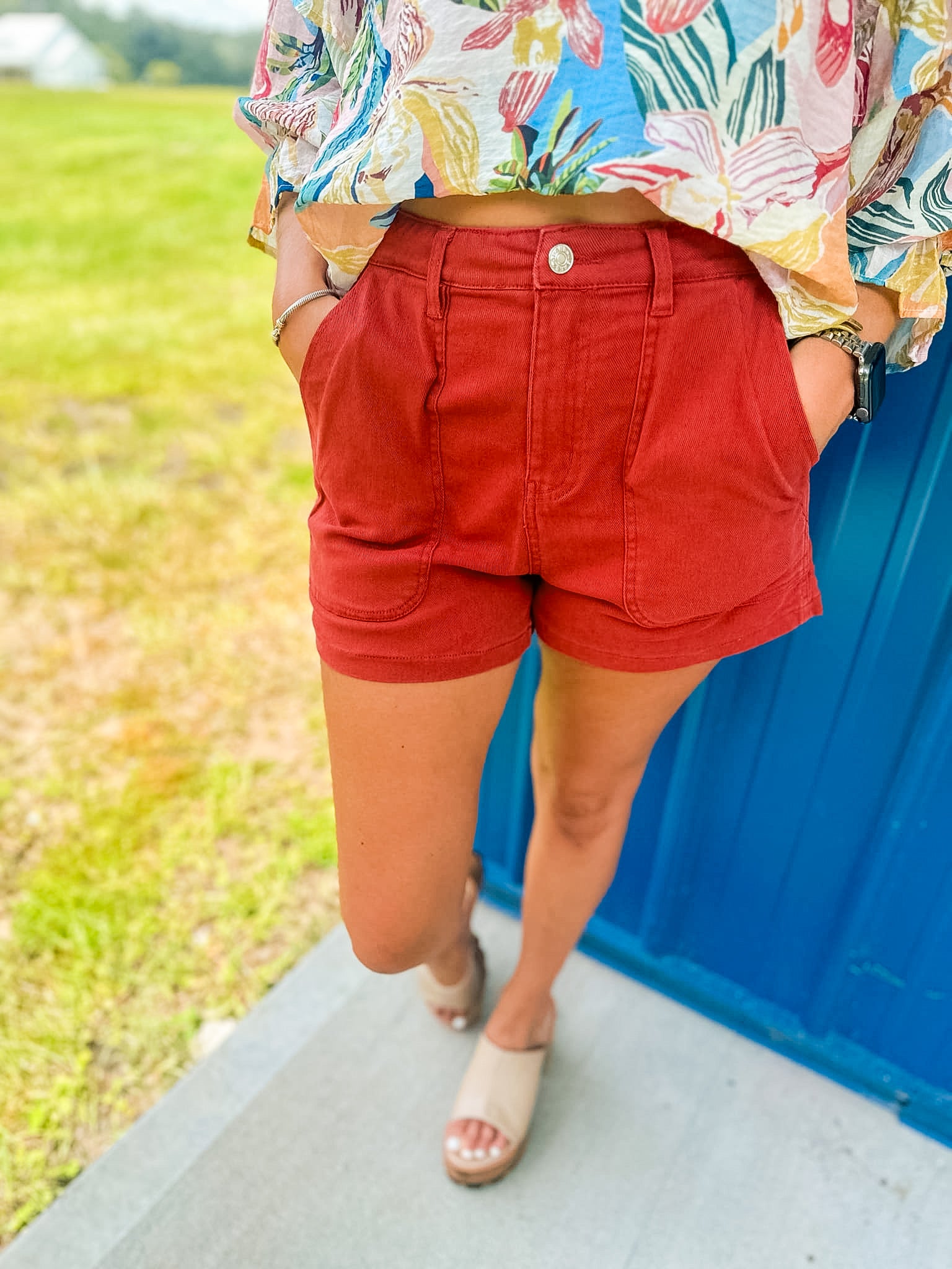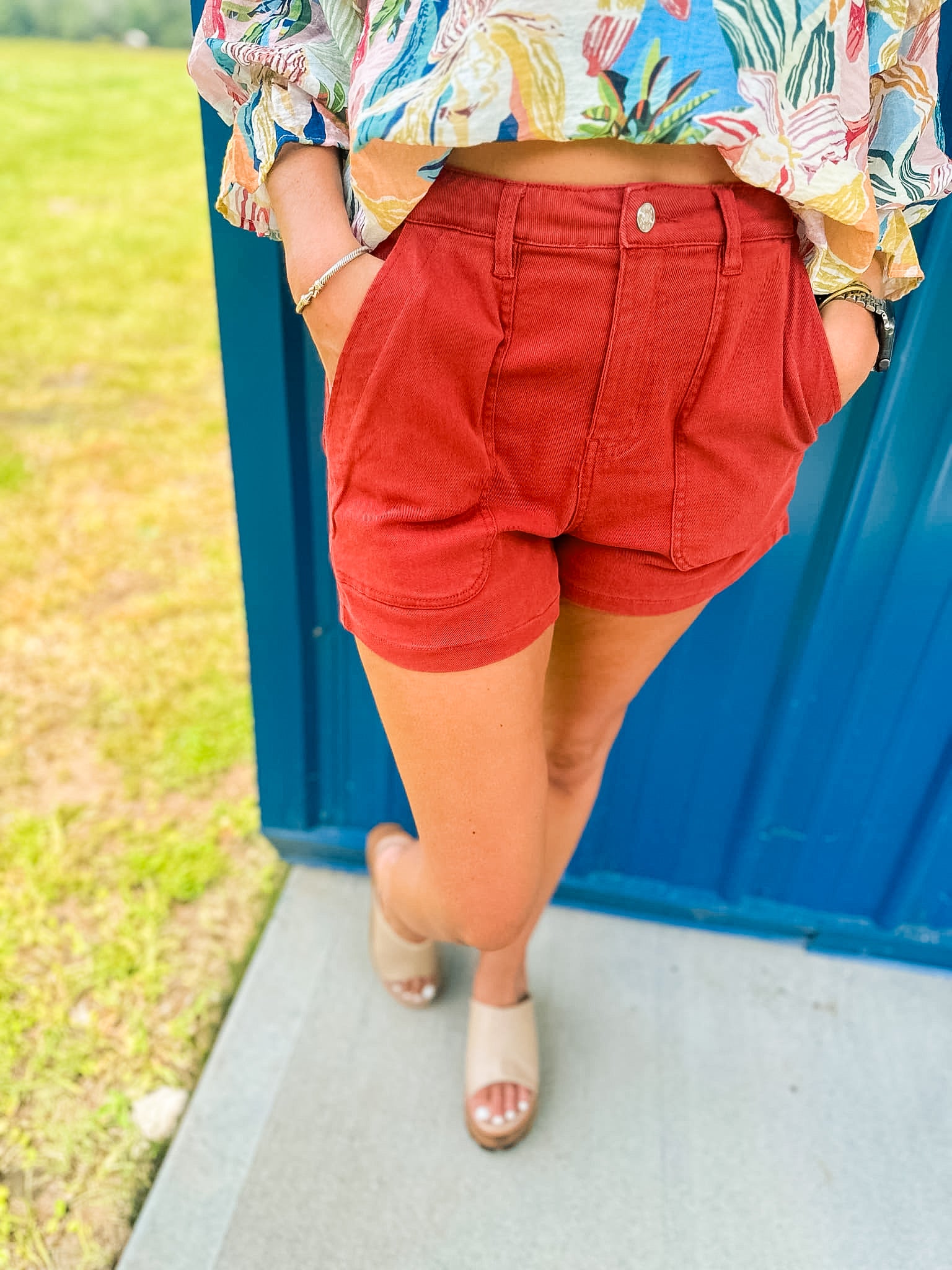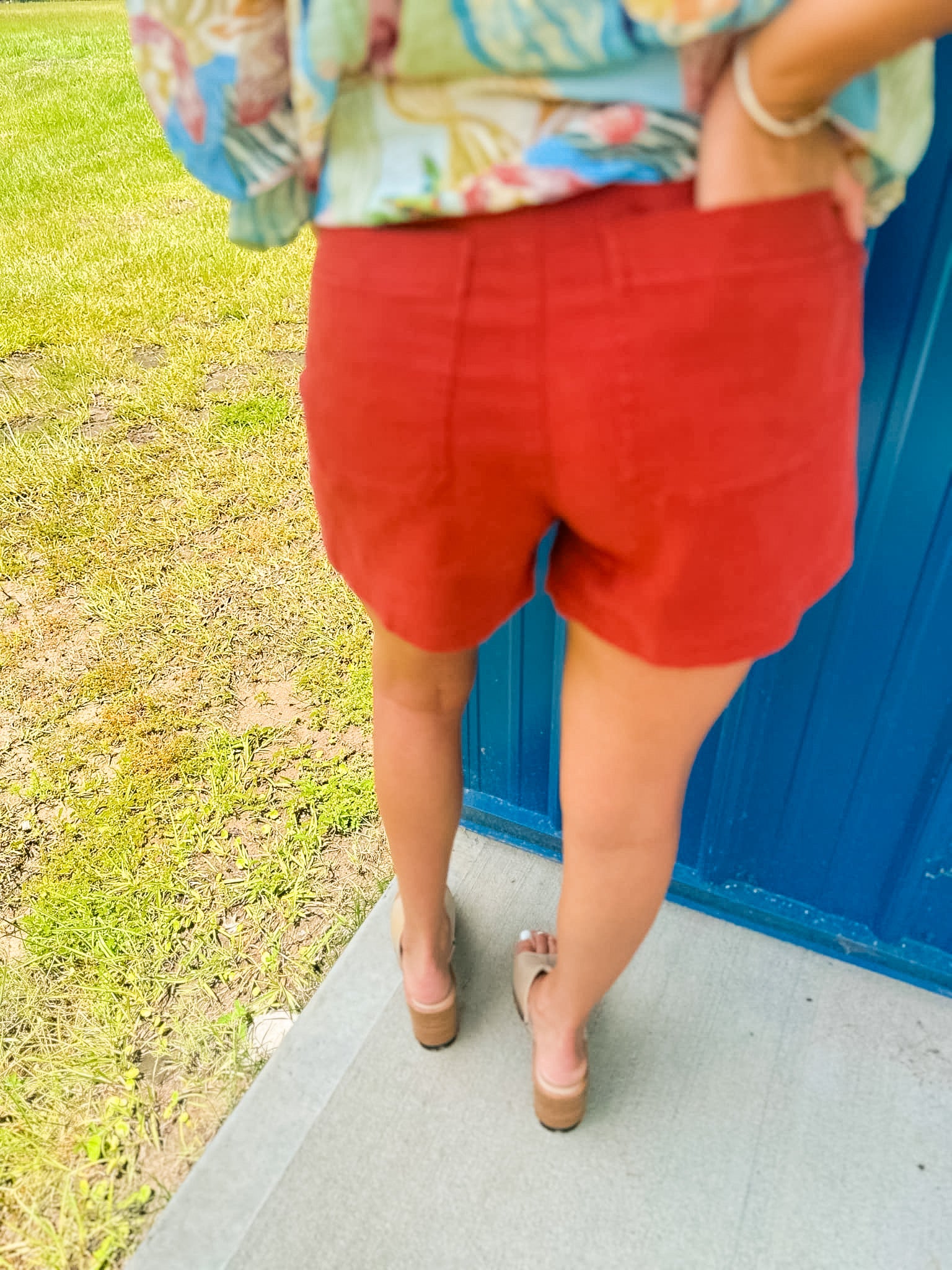 Steph HW Denim Shorts- Rust