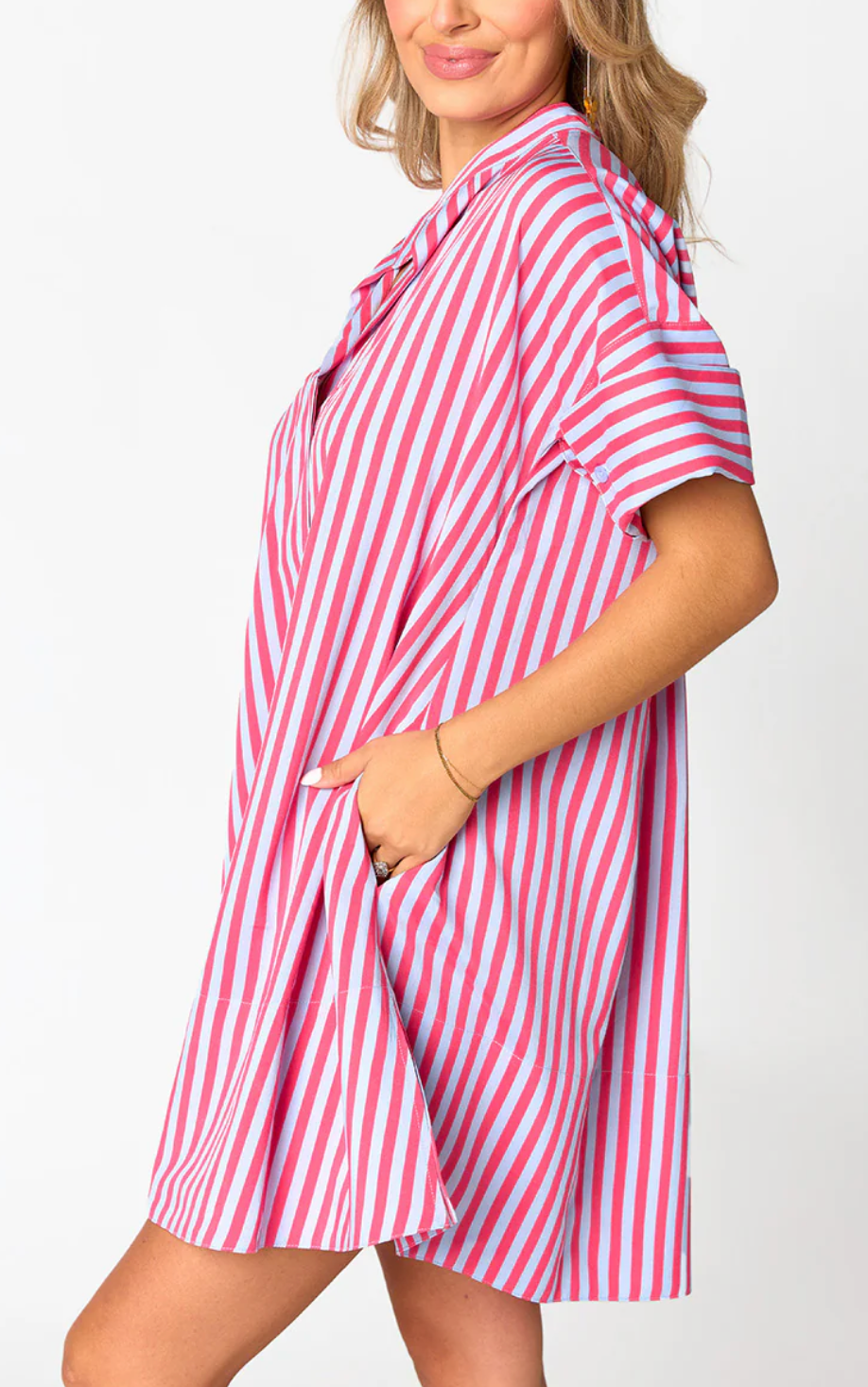Introducing the Stevie Mini Shirt Dress! This casual and cute dress is perfect for any day, keeping you relaxed and stylish. Say goodbye to outfit planning and hello to effortless style with this perfect day-to-day dress.