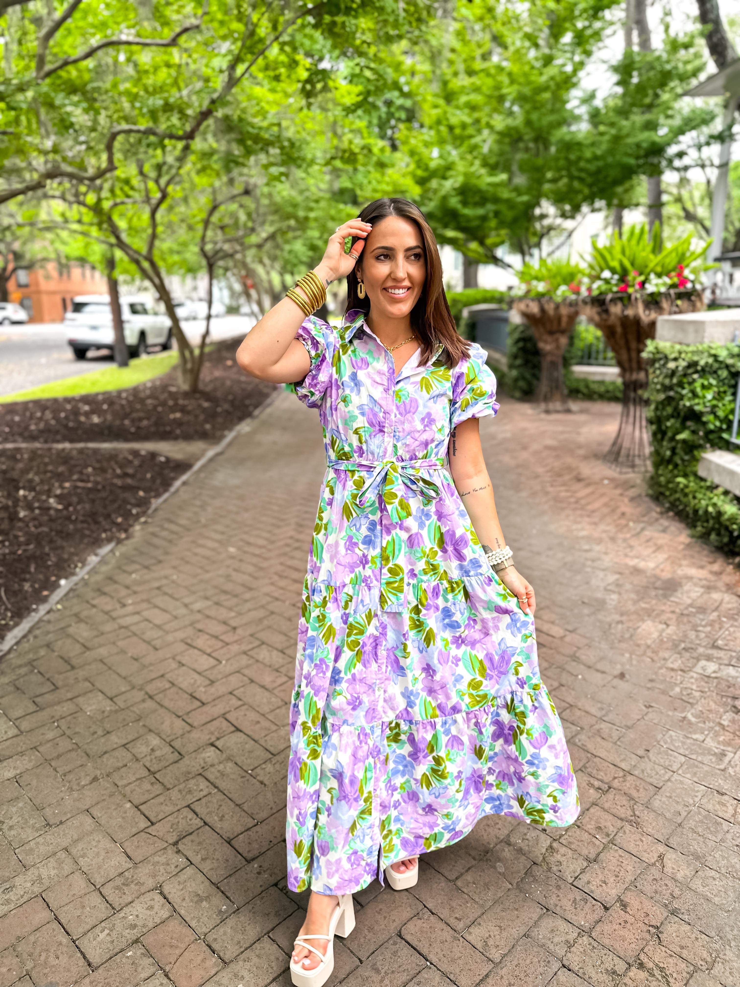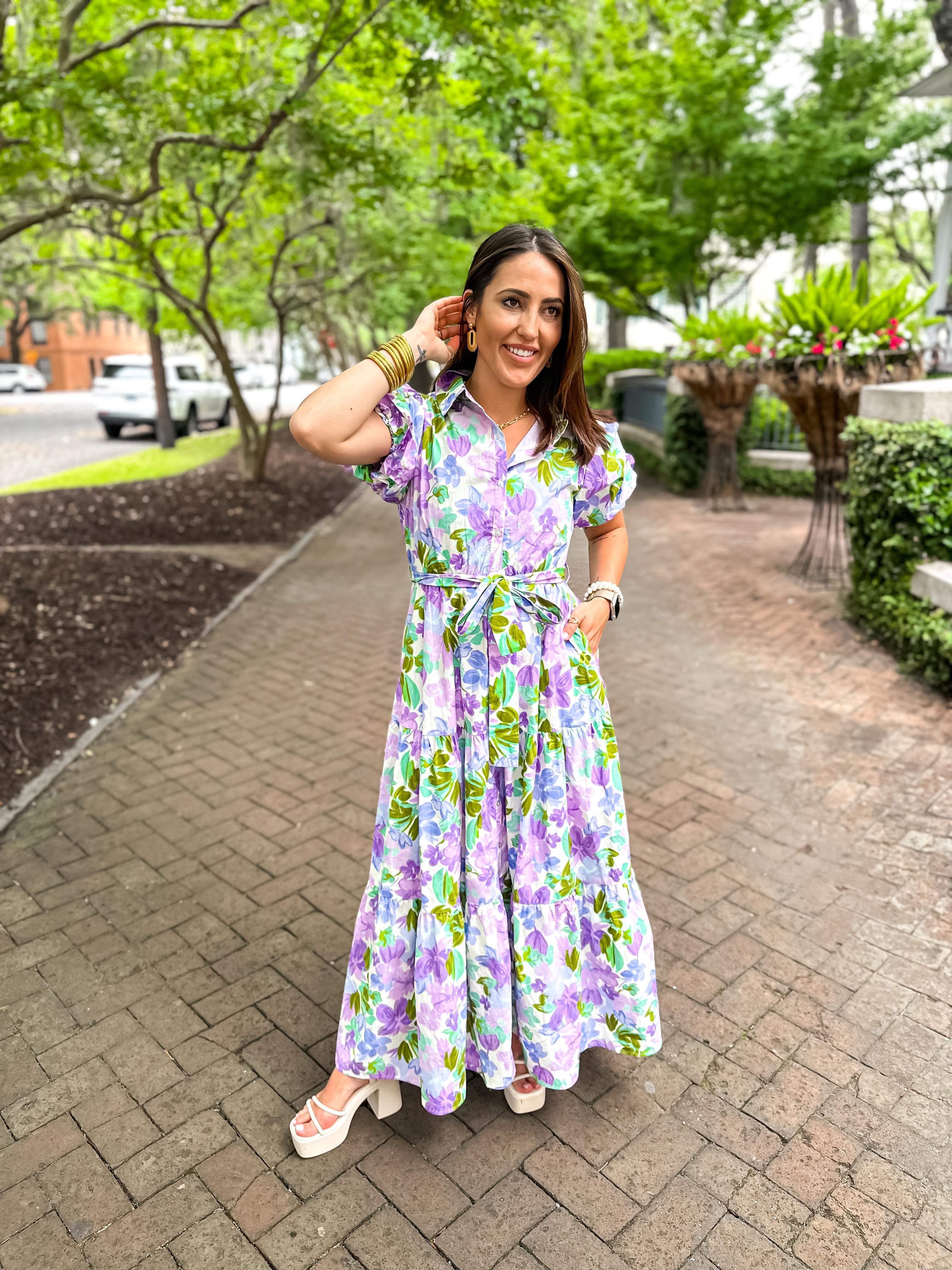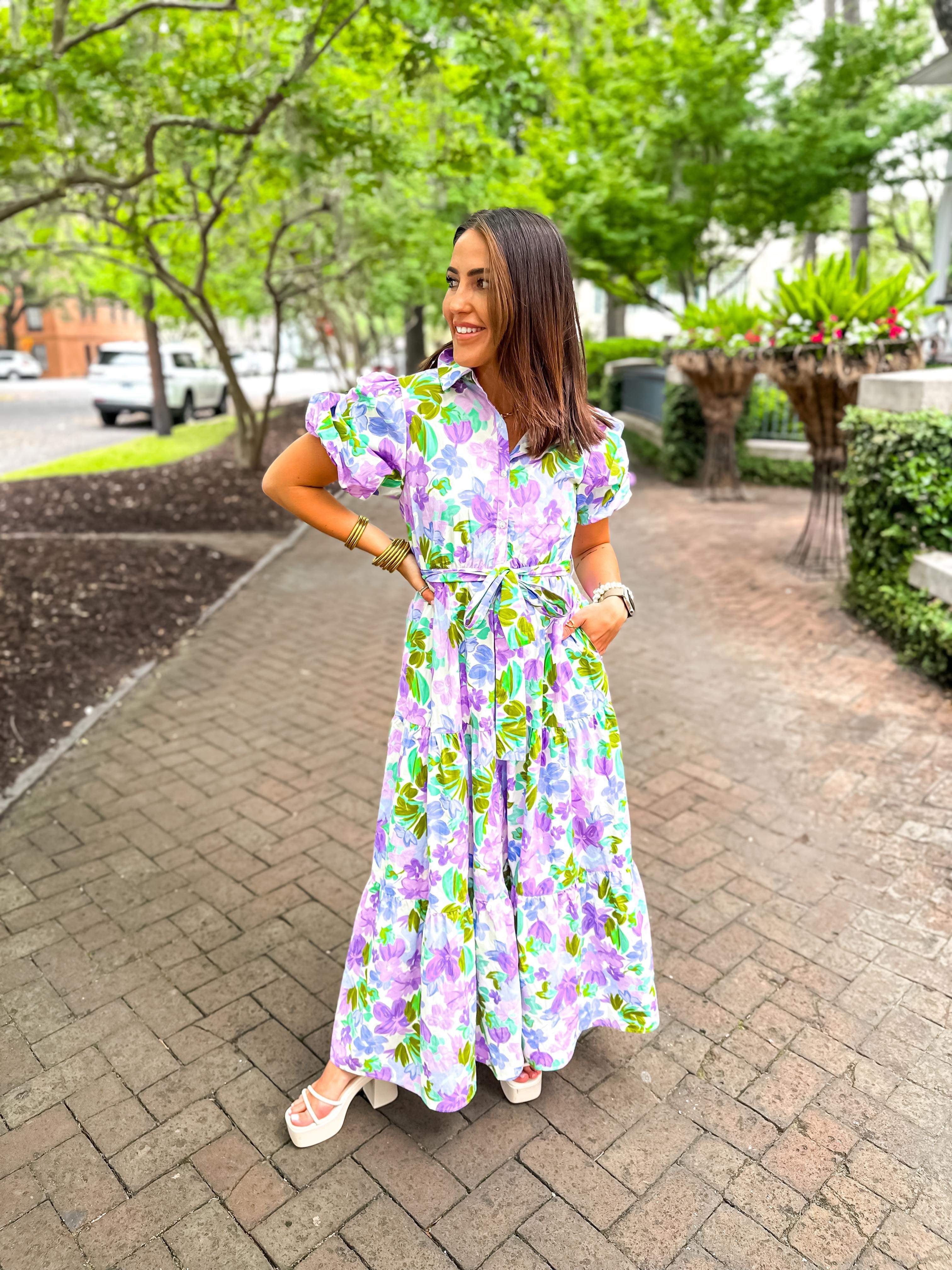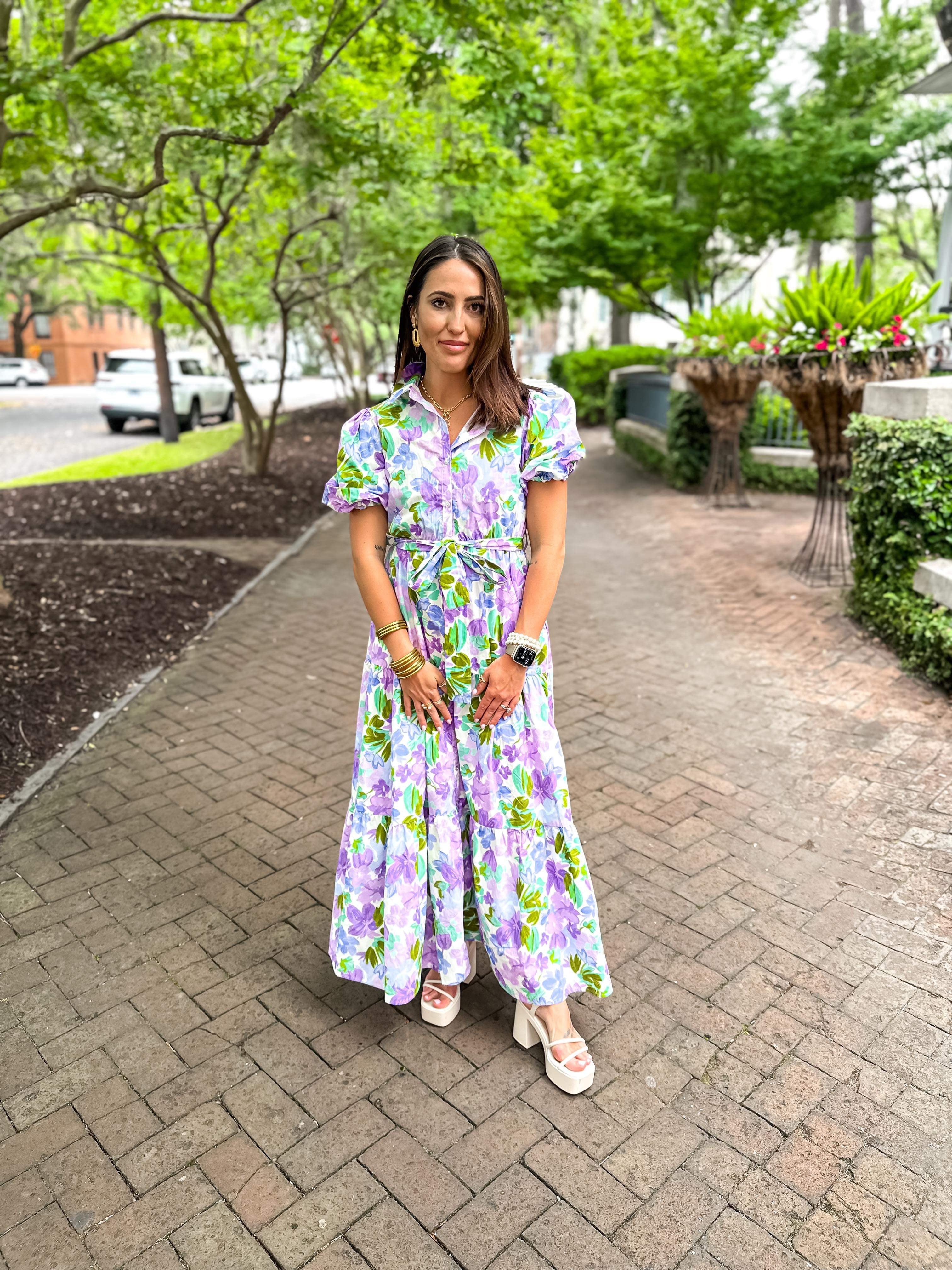 Introducing one of the prettiest dresses around. We are obsessed with this maxi. It features a poof sleeve and tie detail. It is a beautiful floral print and will work for any and every event.