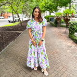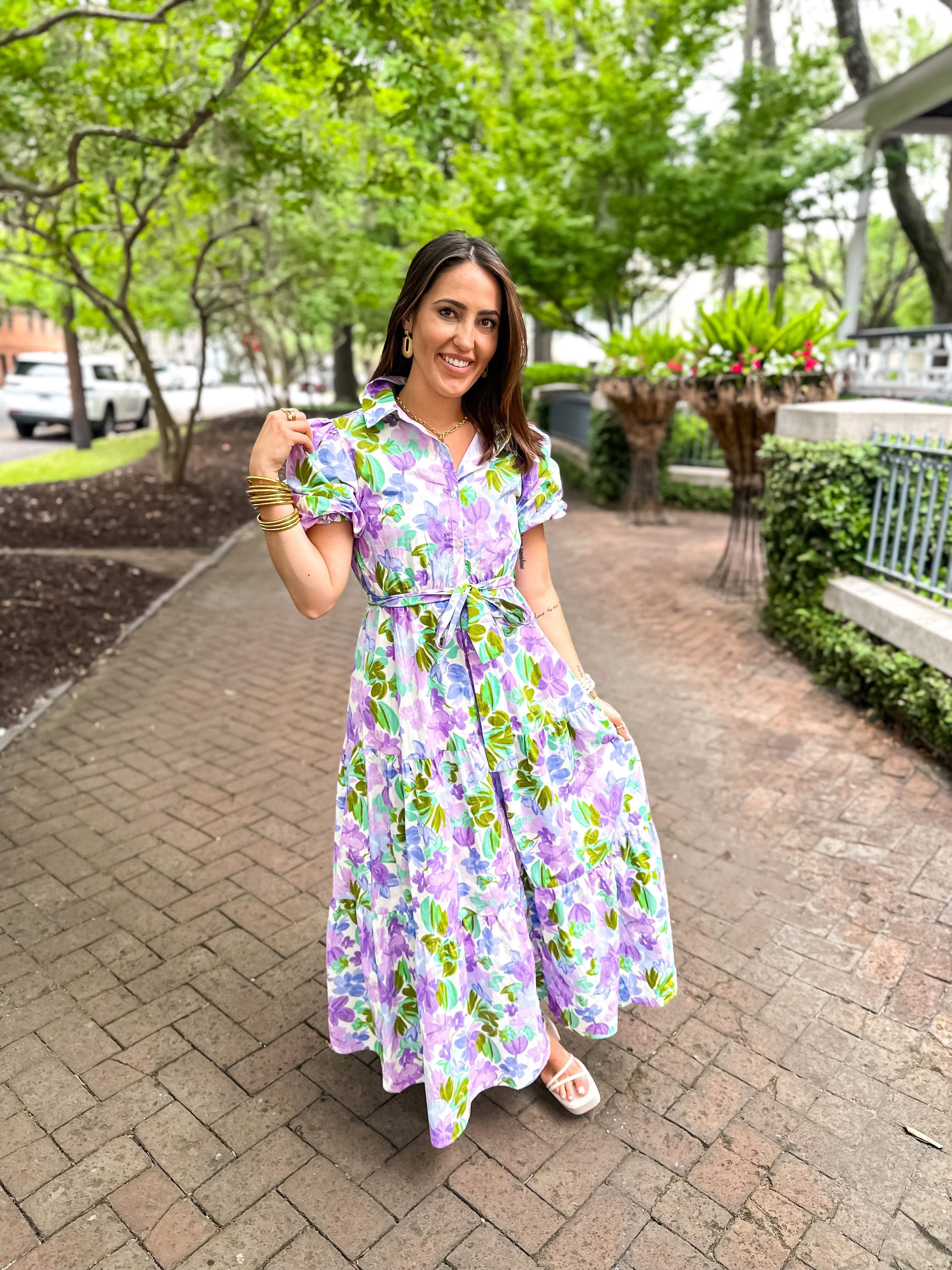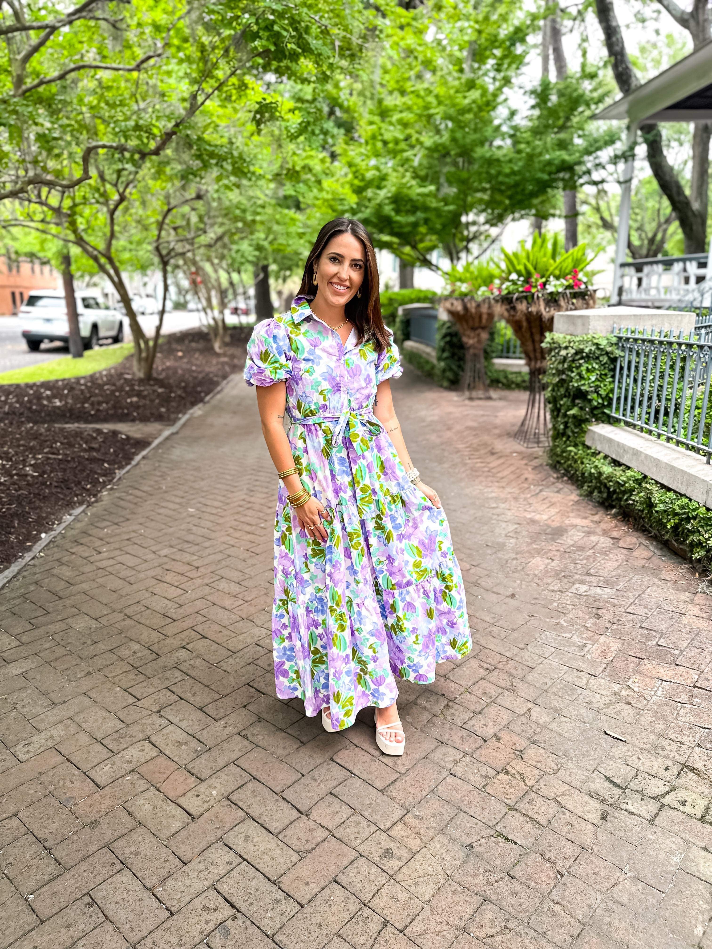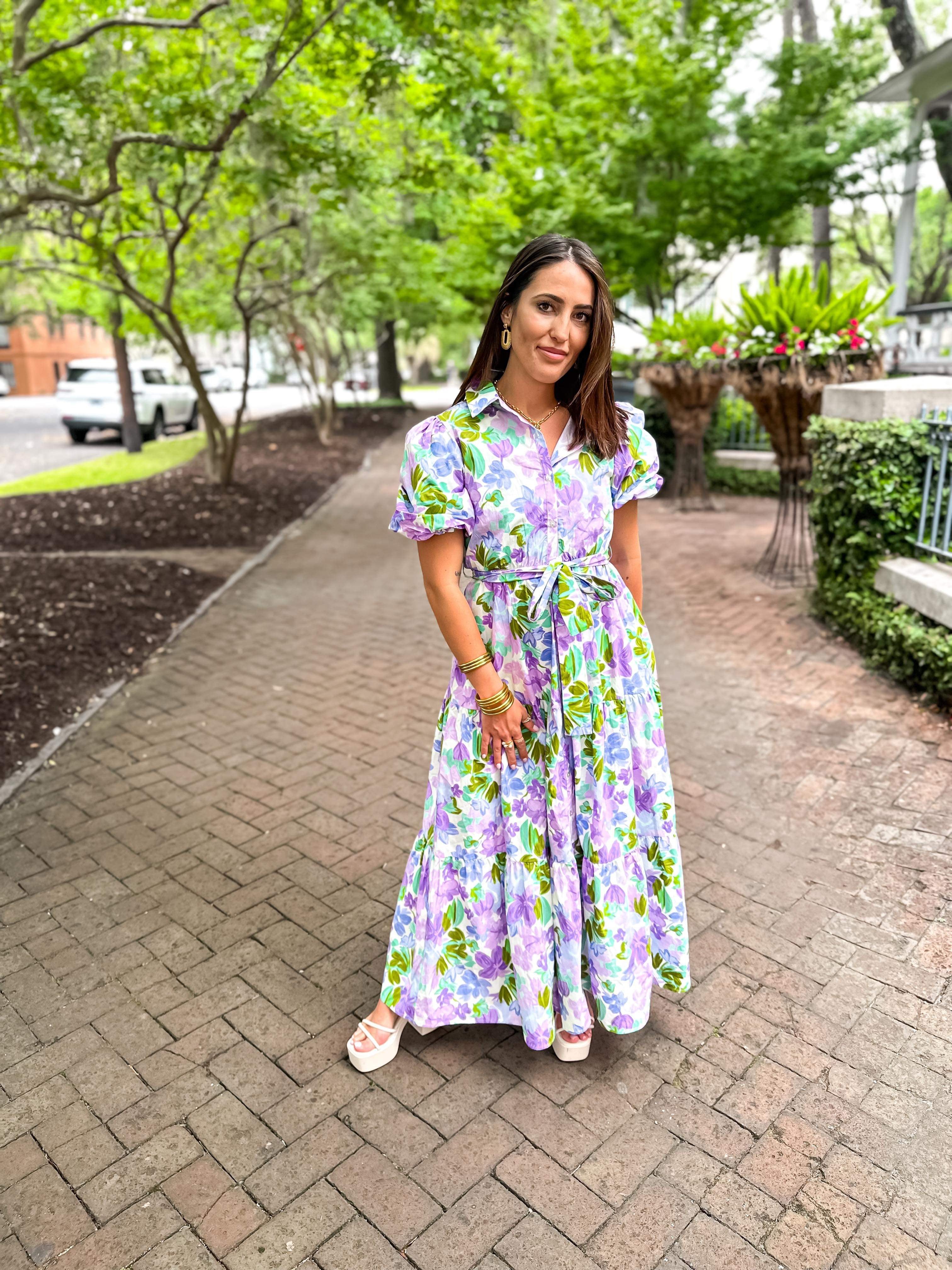 Introducing one of the prettiest dresses around. We are obsessed with this maxi. It features a poof sleeve and tie detail. It is a beautiful floral print and will work for any and every event.