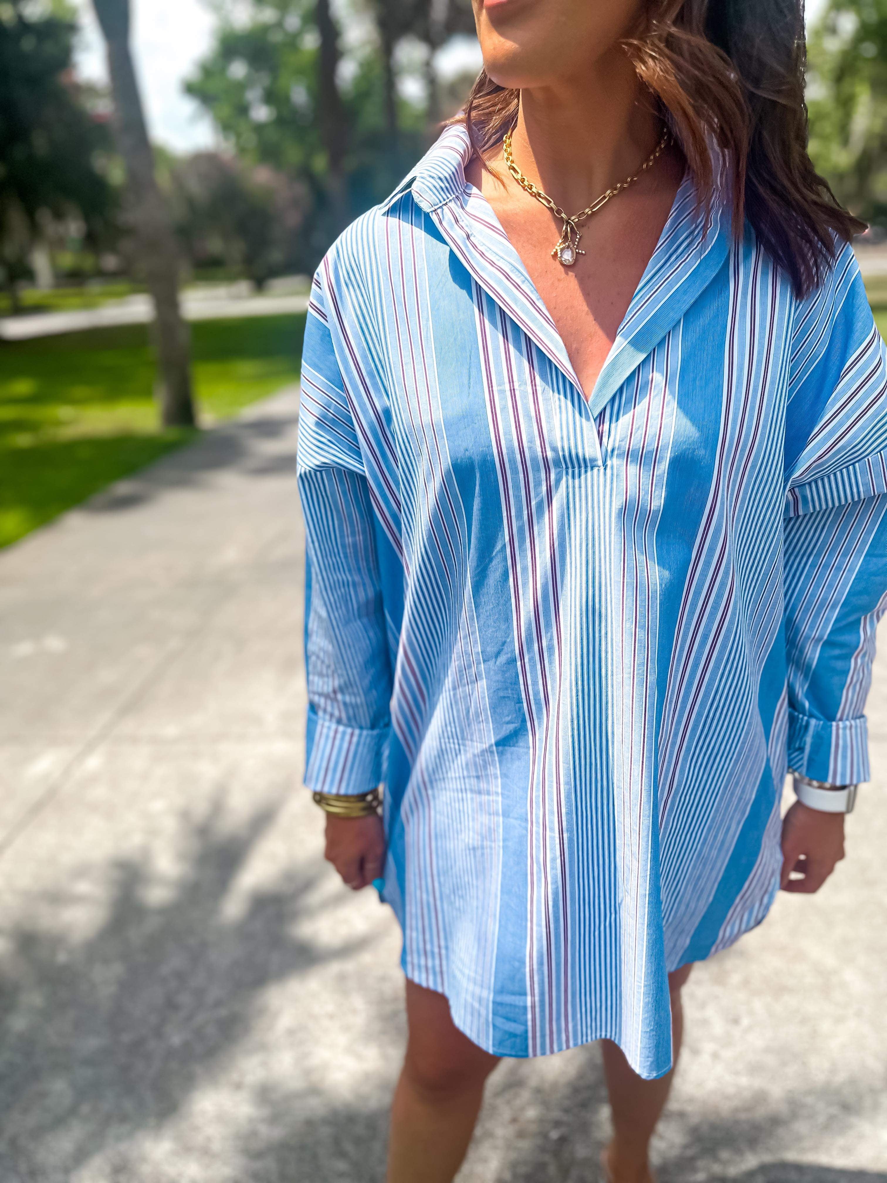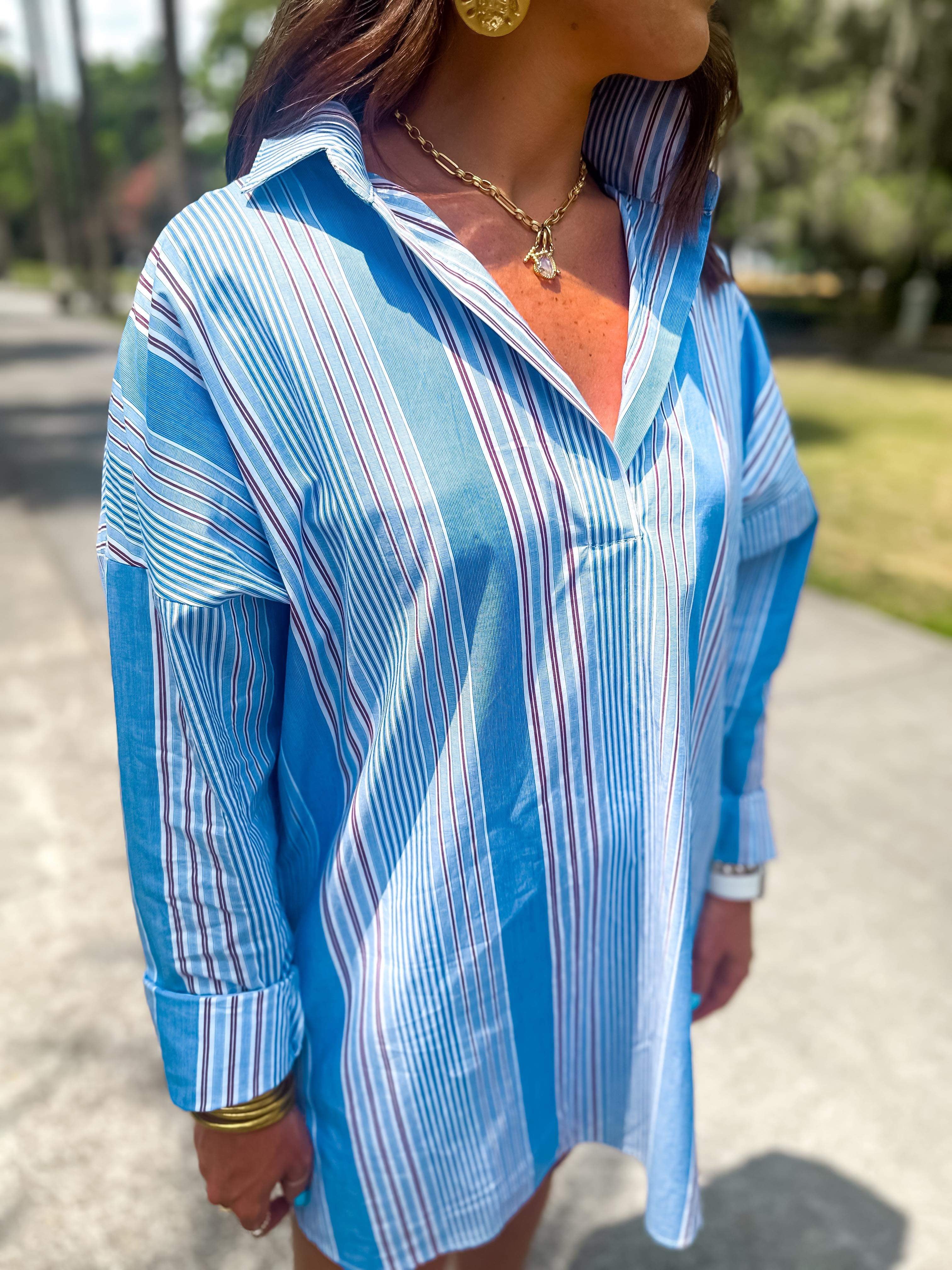 Experience comfort in style with our Stripe Oversized Tunic. Its loose and roomy fit is perfect for any occasion.
