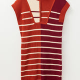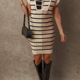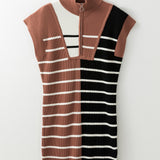 Striped Quarter Zip Cap Sleeve Sweater Dress