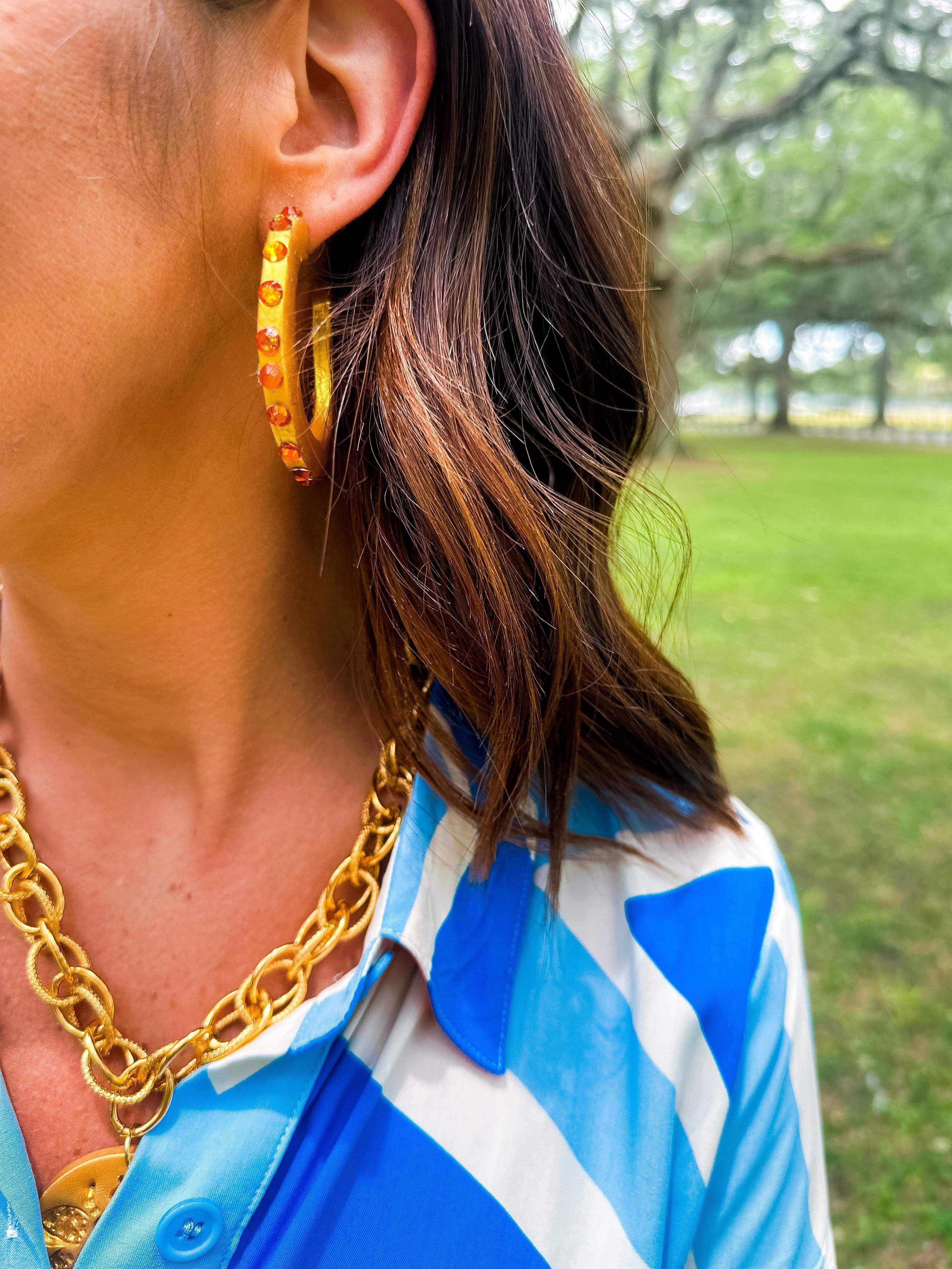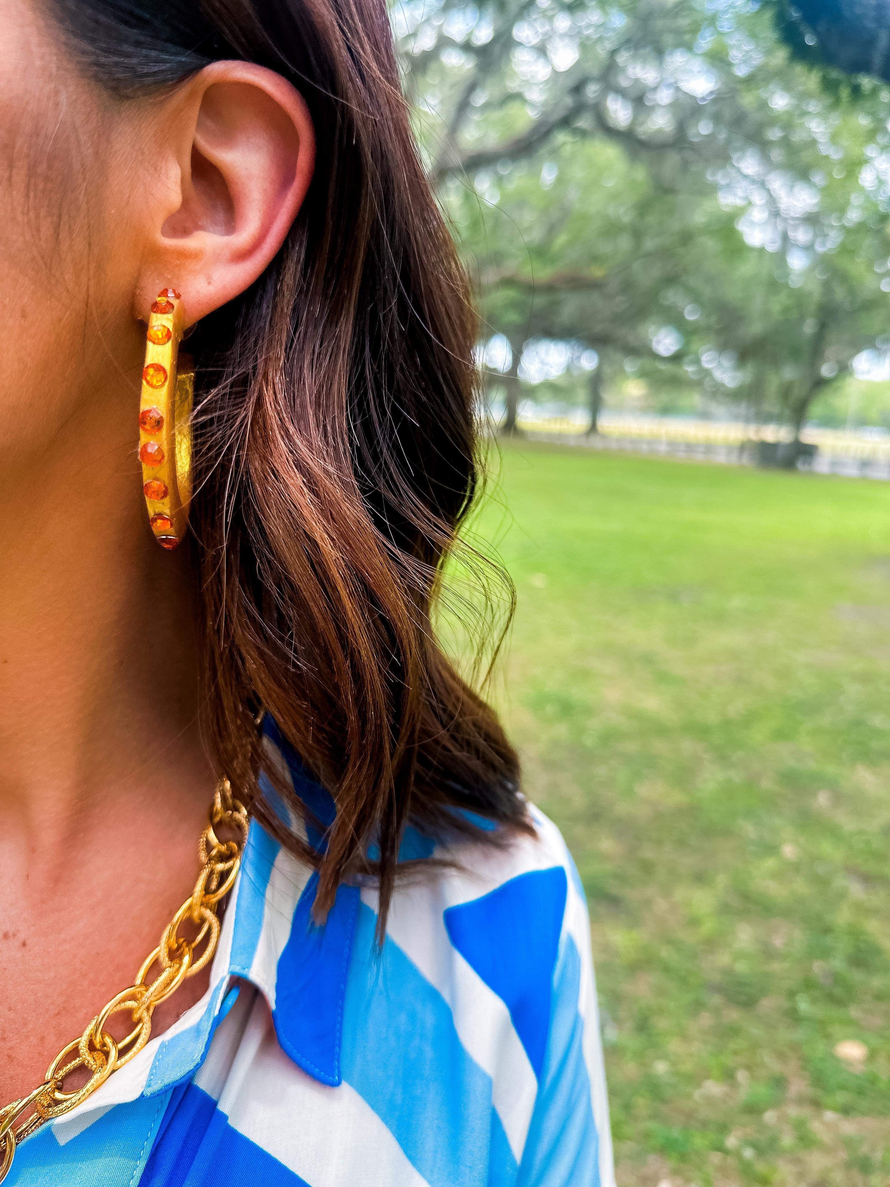 Studded Hoop Earrings- Orange