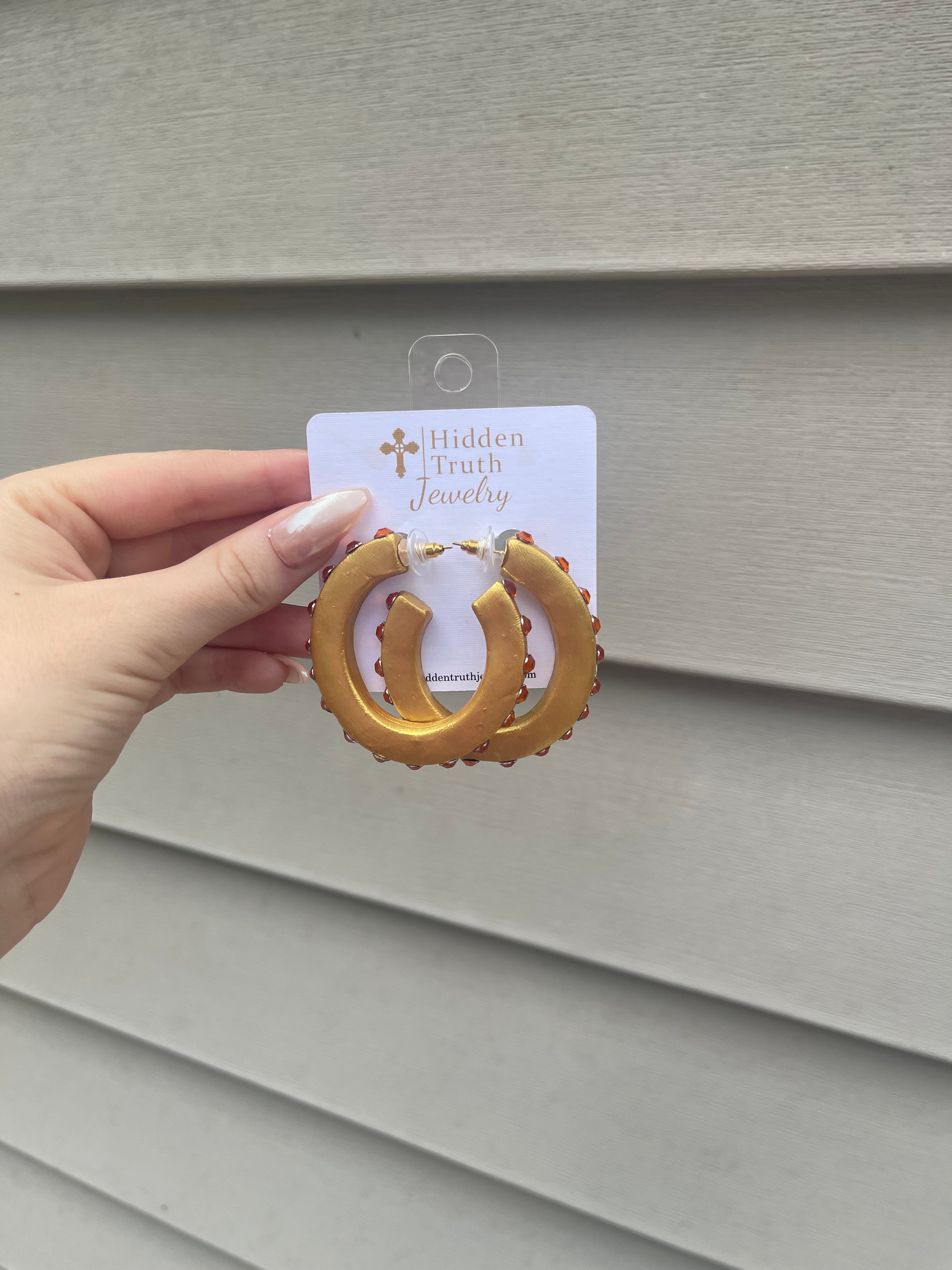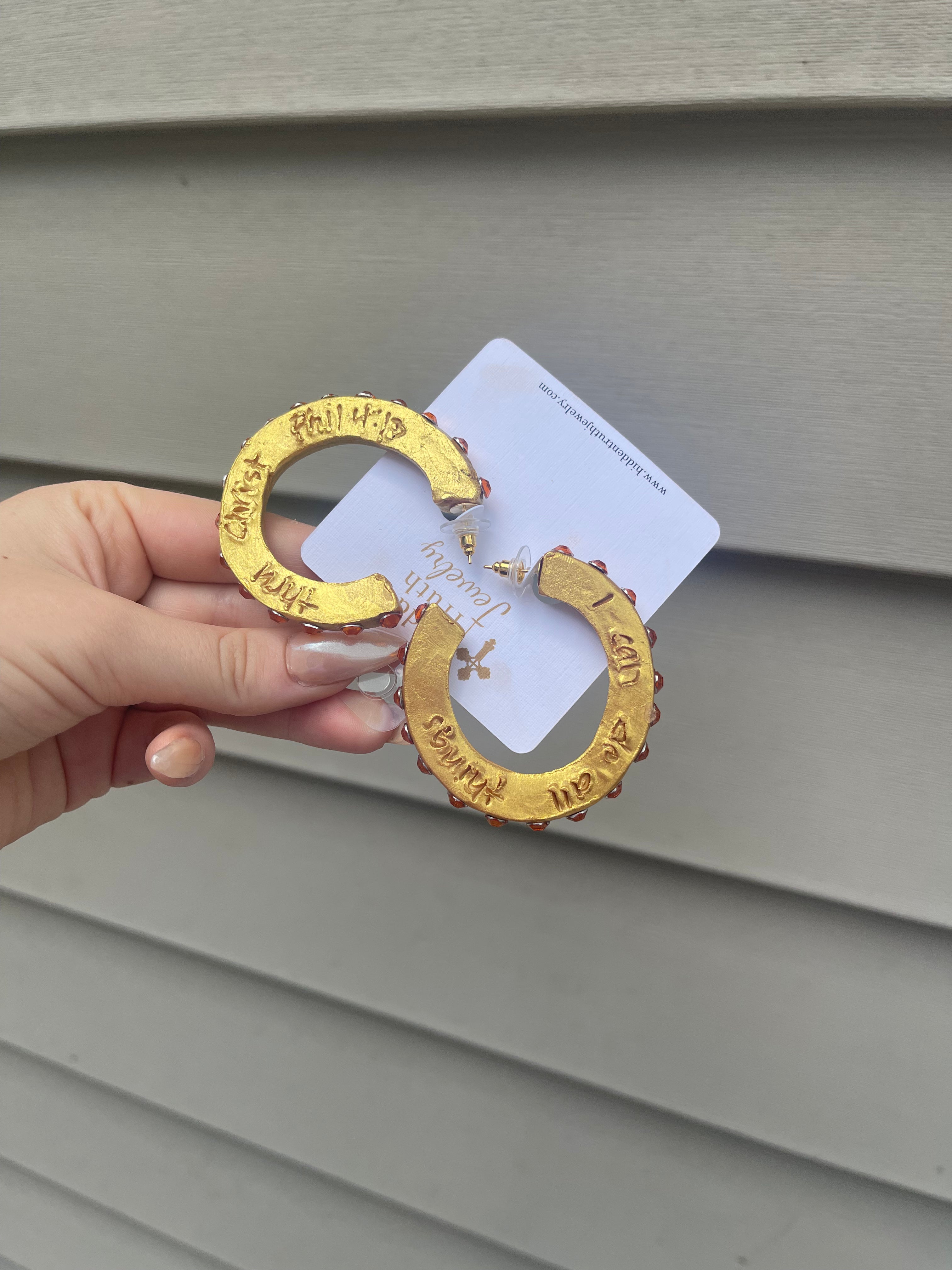 Fun, lightweight and fills you with joy describe these beautiful golden hoops! Wear them day to night and hold the truth that brings great joy near to your heart & mind. Be reminded that it's God's strength not yours that sustains you and helps you overcome any and every situation! Hidden Truth earrings are nickel free & hypoallergenic.
