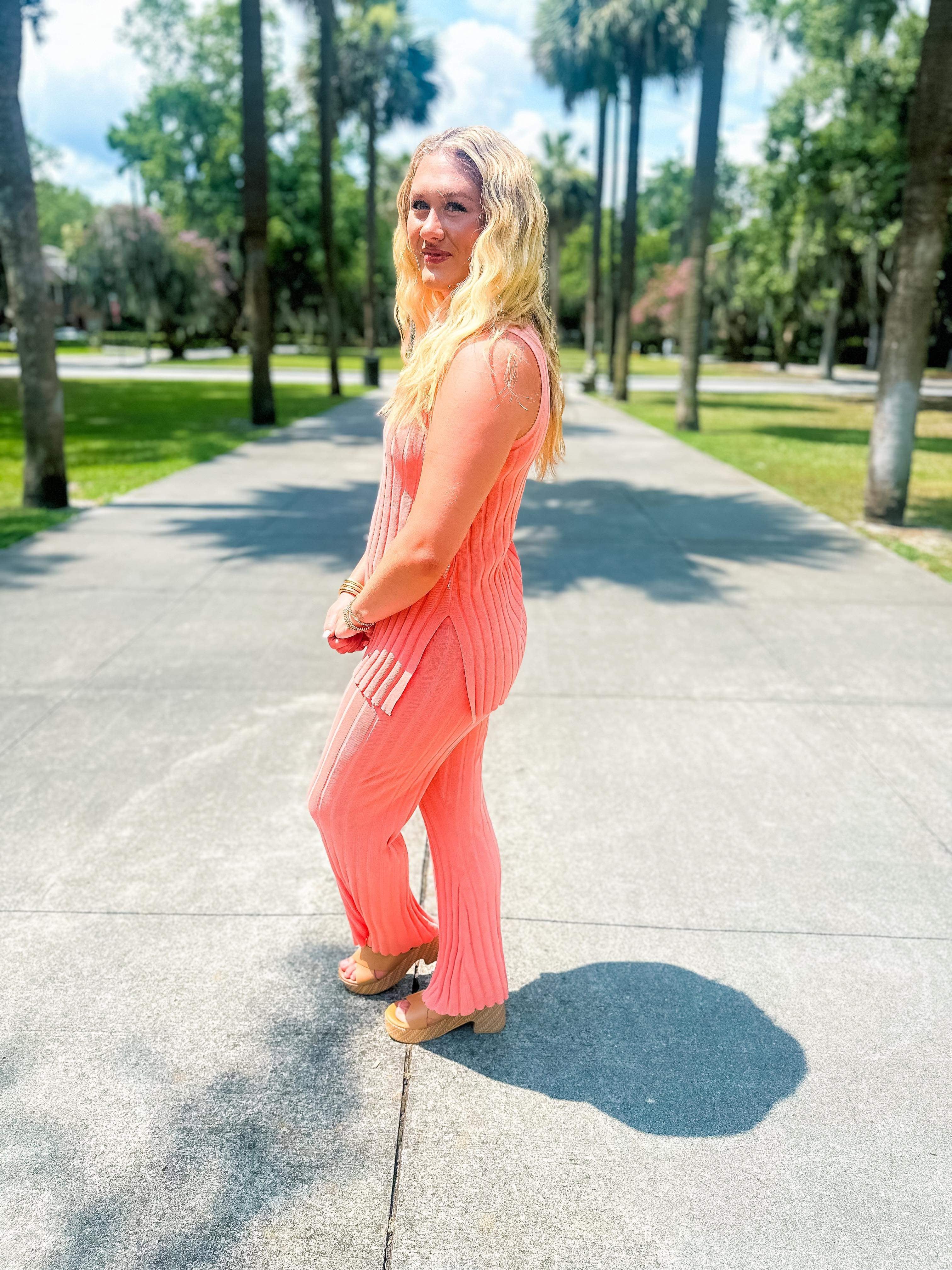 Sweater Knit Tank Set- Peach