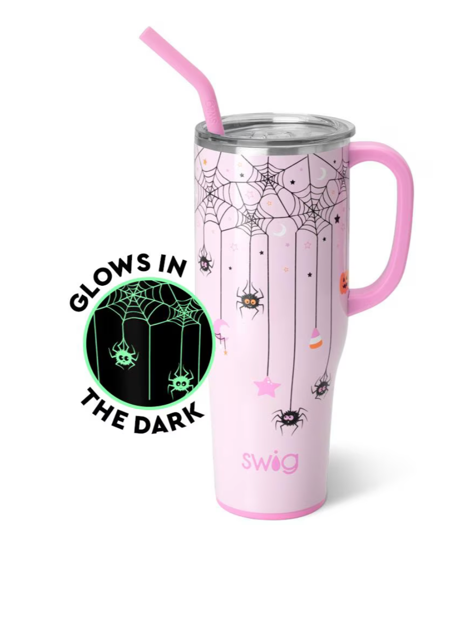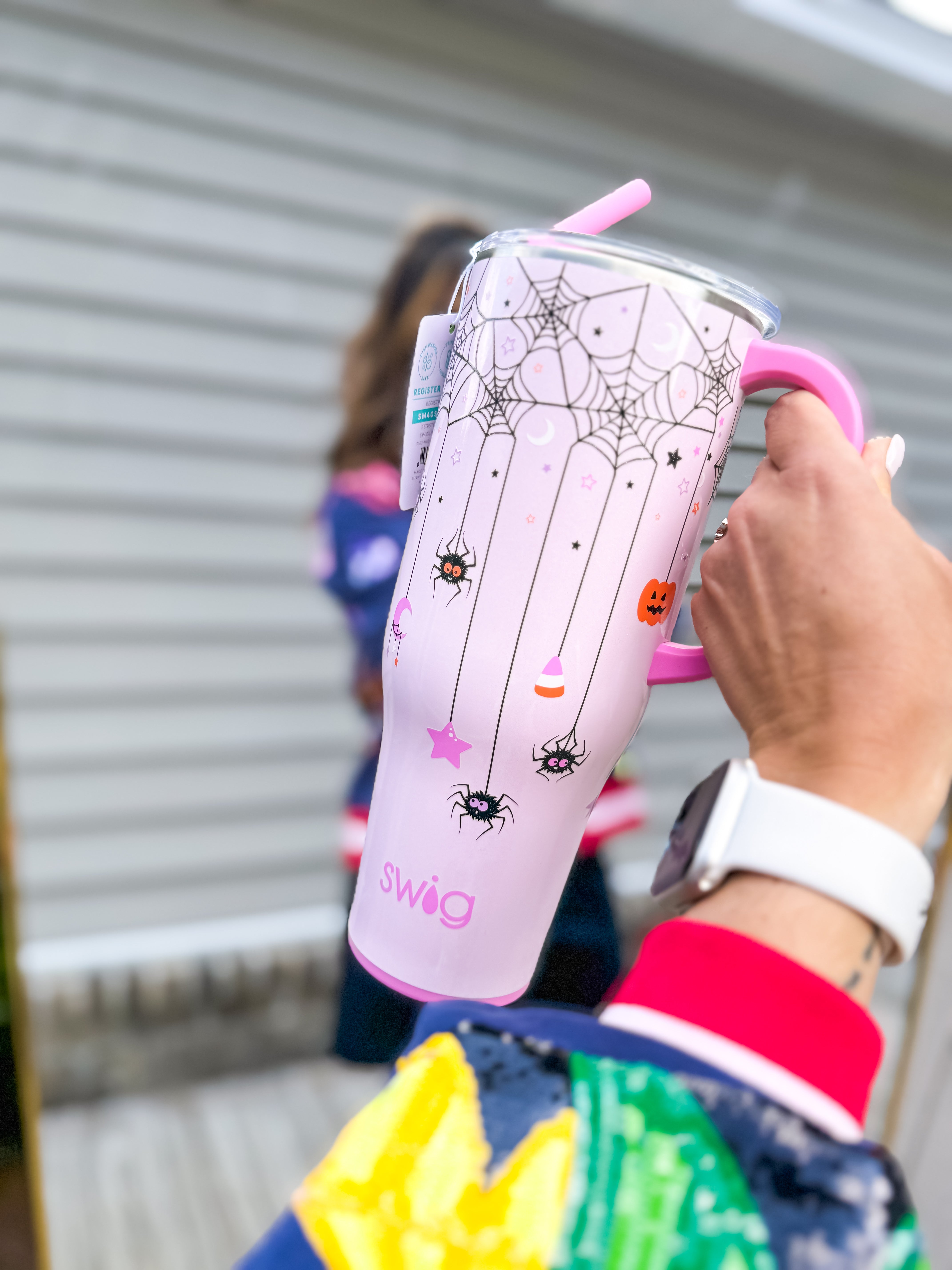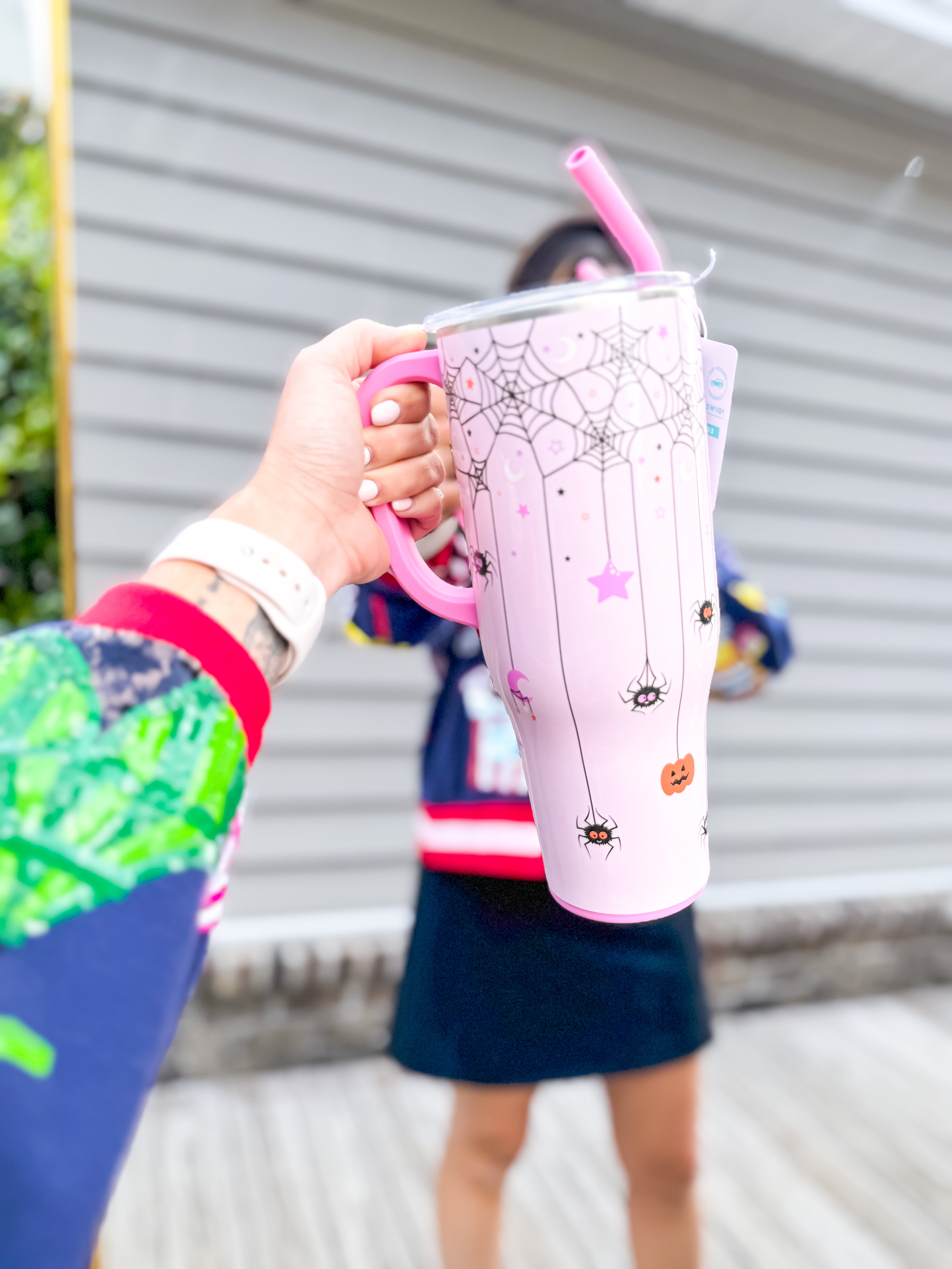 Mega sips, mega chill! π§ Whimsical bats and spiders spin a sweet web of Halloween delight!