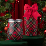 We've got it handled! ☕ Celebrate the season in timeless style with this red and green traditional Christmas tartan design. A removable charming bow adorns each item like a gift.