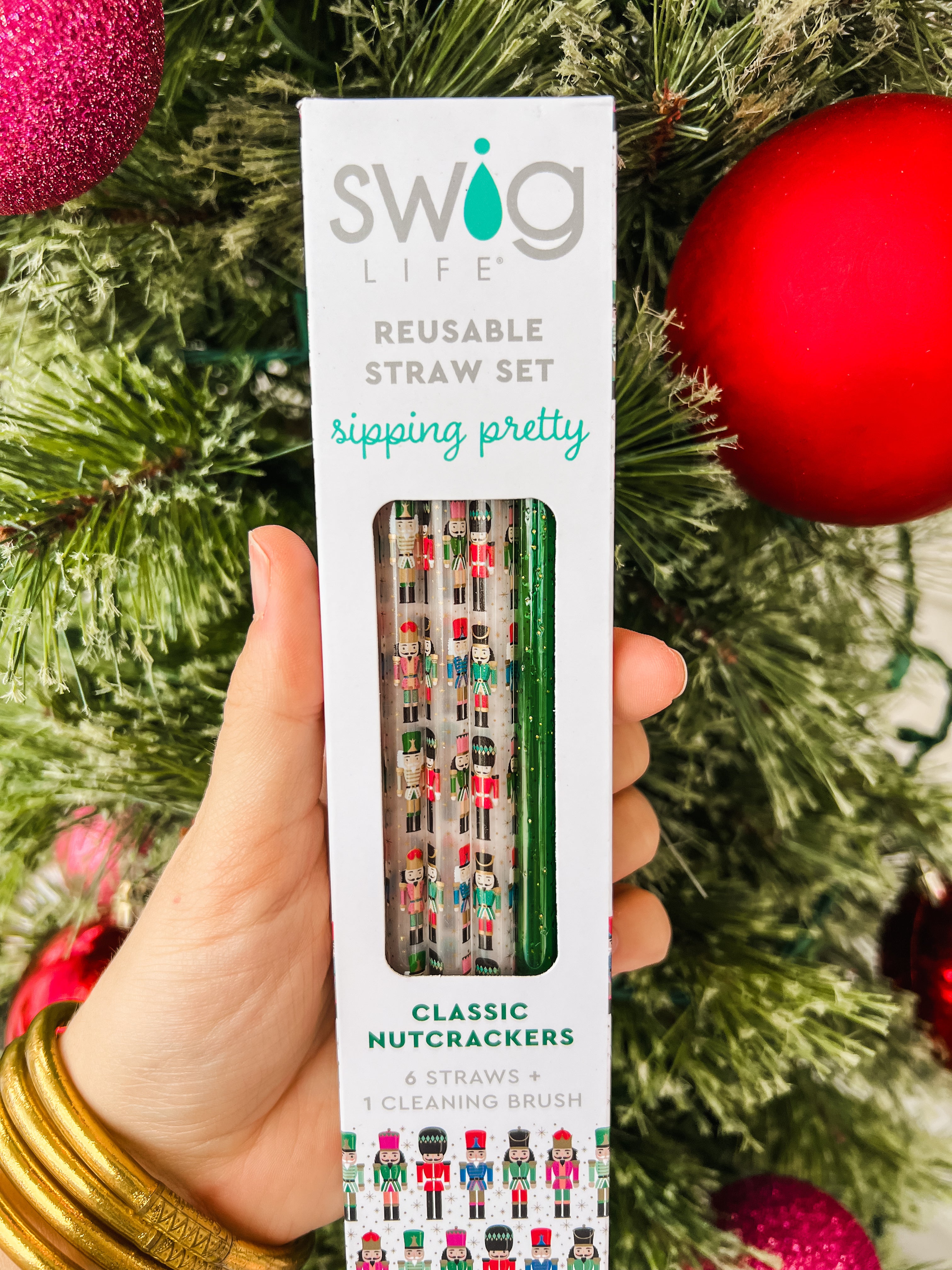 SWIG Classic Nutcracker Glitter Reusable Straw Set