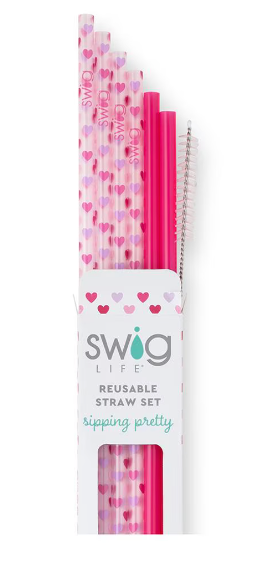 Eliminate the need of those single-use straws and sip with our reusable straw sets. Go eco-friendly and add printed straw sets to your Swig order for the ultimate sustainable routine!
