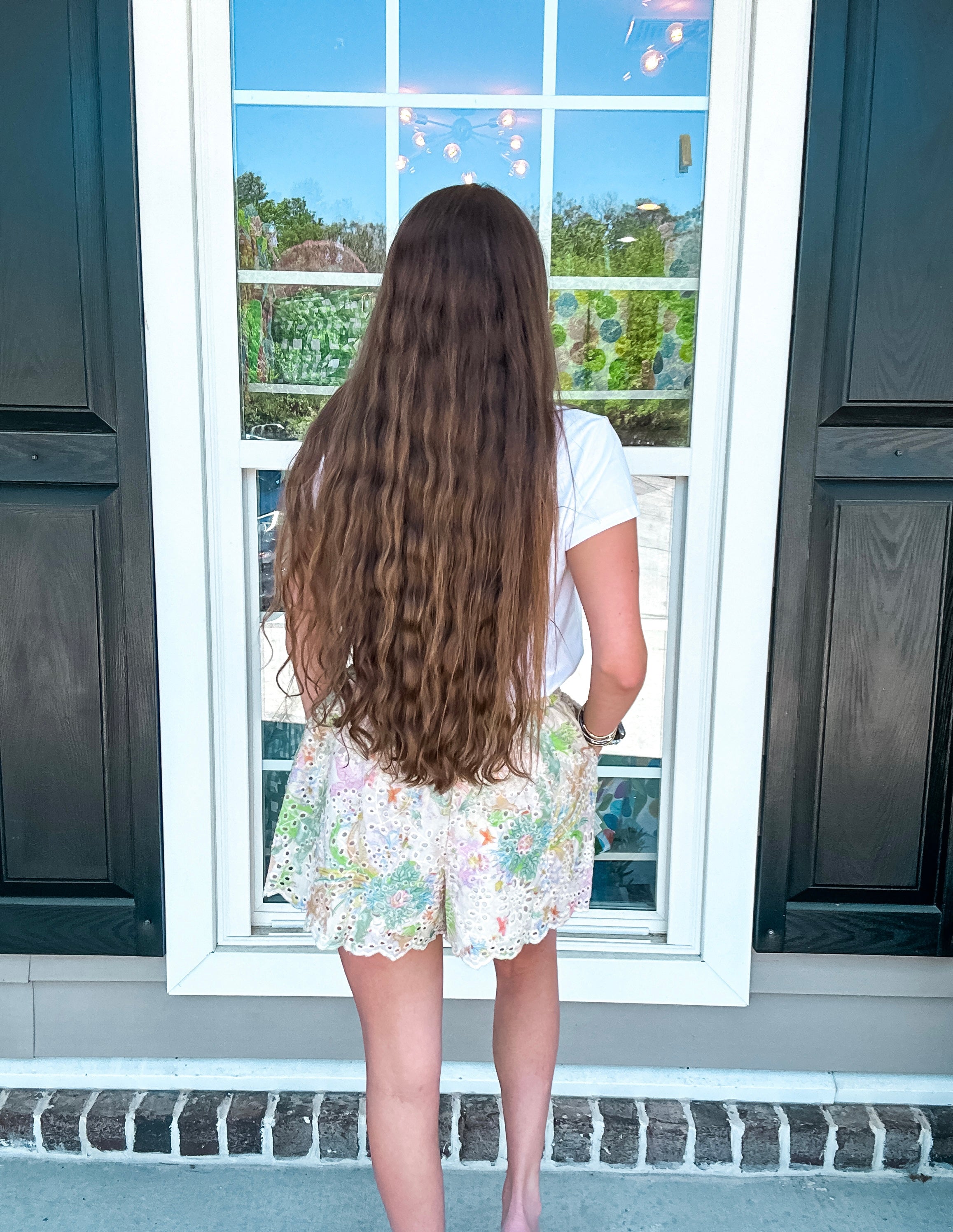We are happy to introduce our Taking It All Short. * We do have a matching top - called Taking It All Top in Green * We are loving the pastels throughout the the whole short with eyelet throughout. They have an elastic waistband for comfort! Take these on your next trip with the matching top OR with a nice solid basic top.