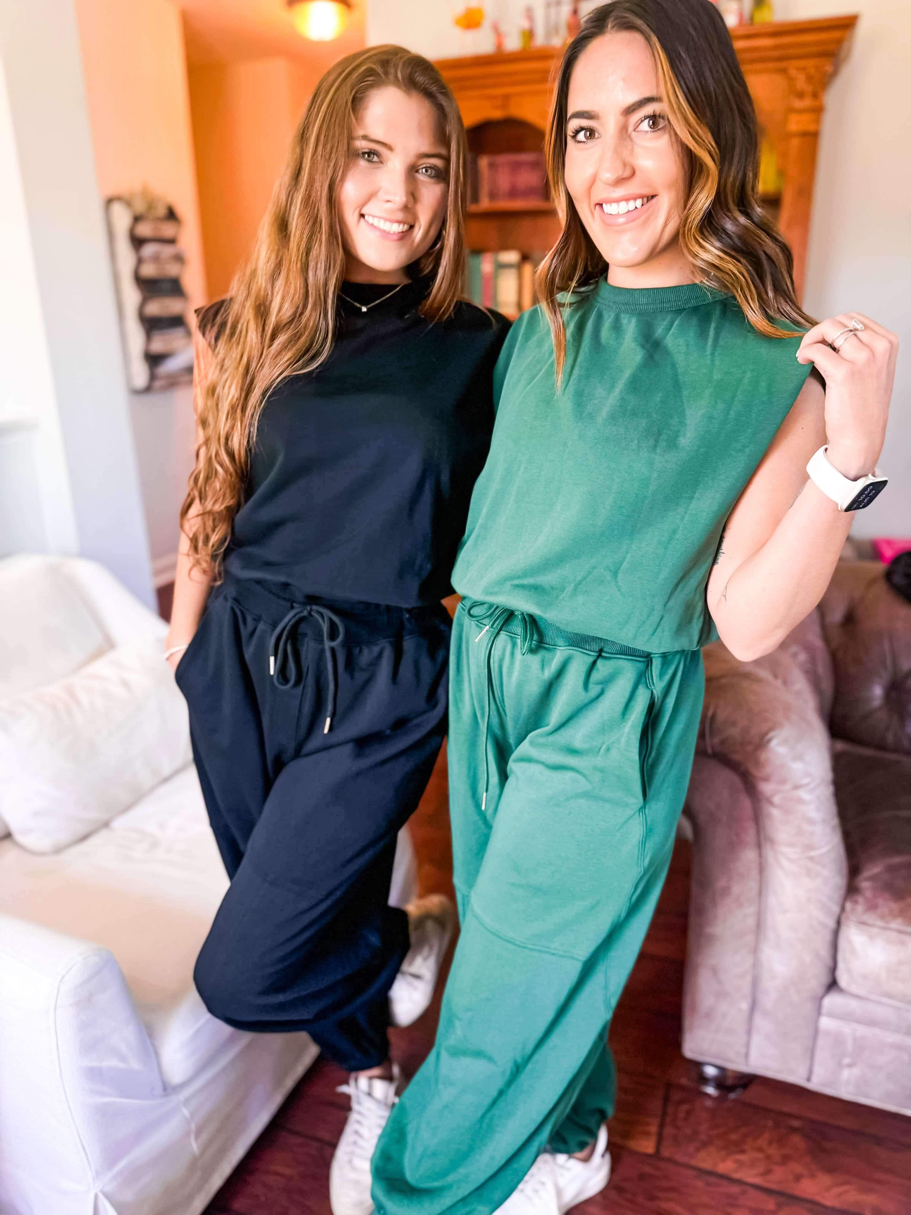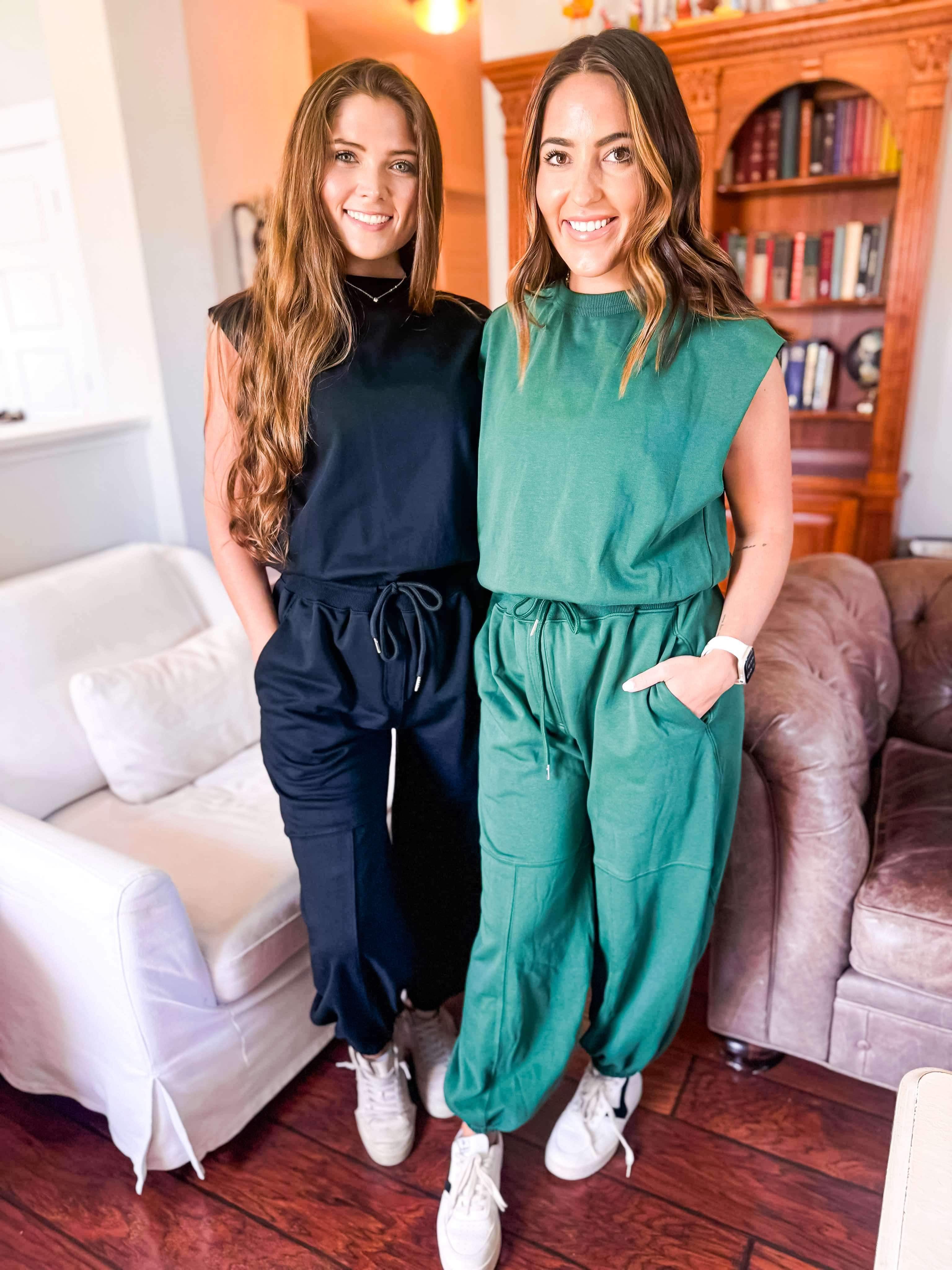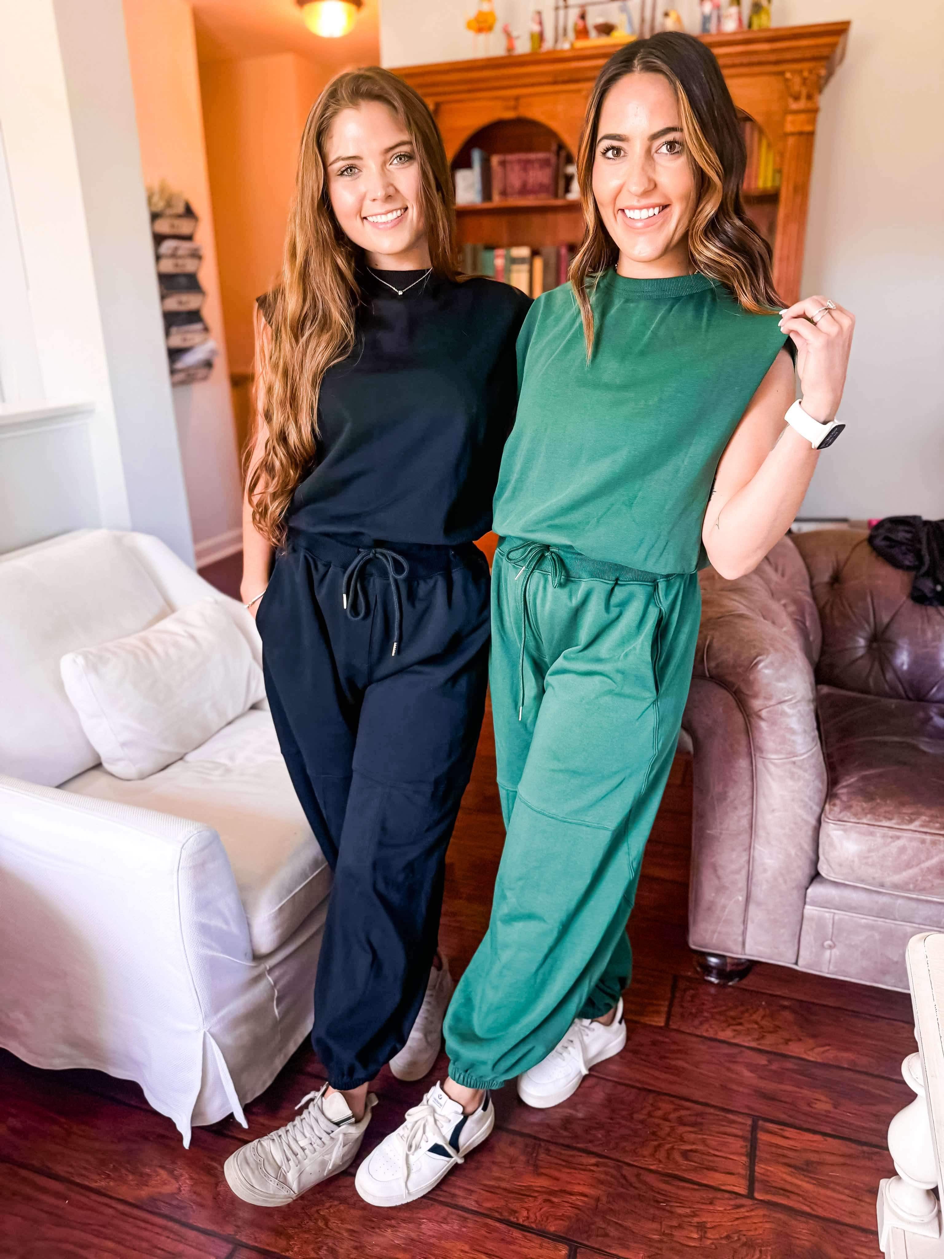 Solid round neck sleeveless oversized jumpsuit featuring self tie at waist.
