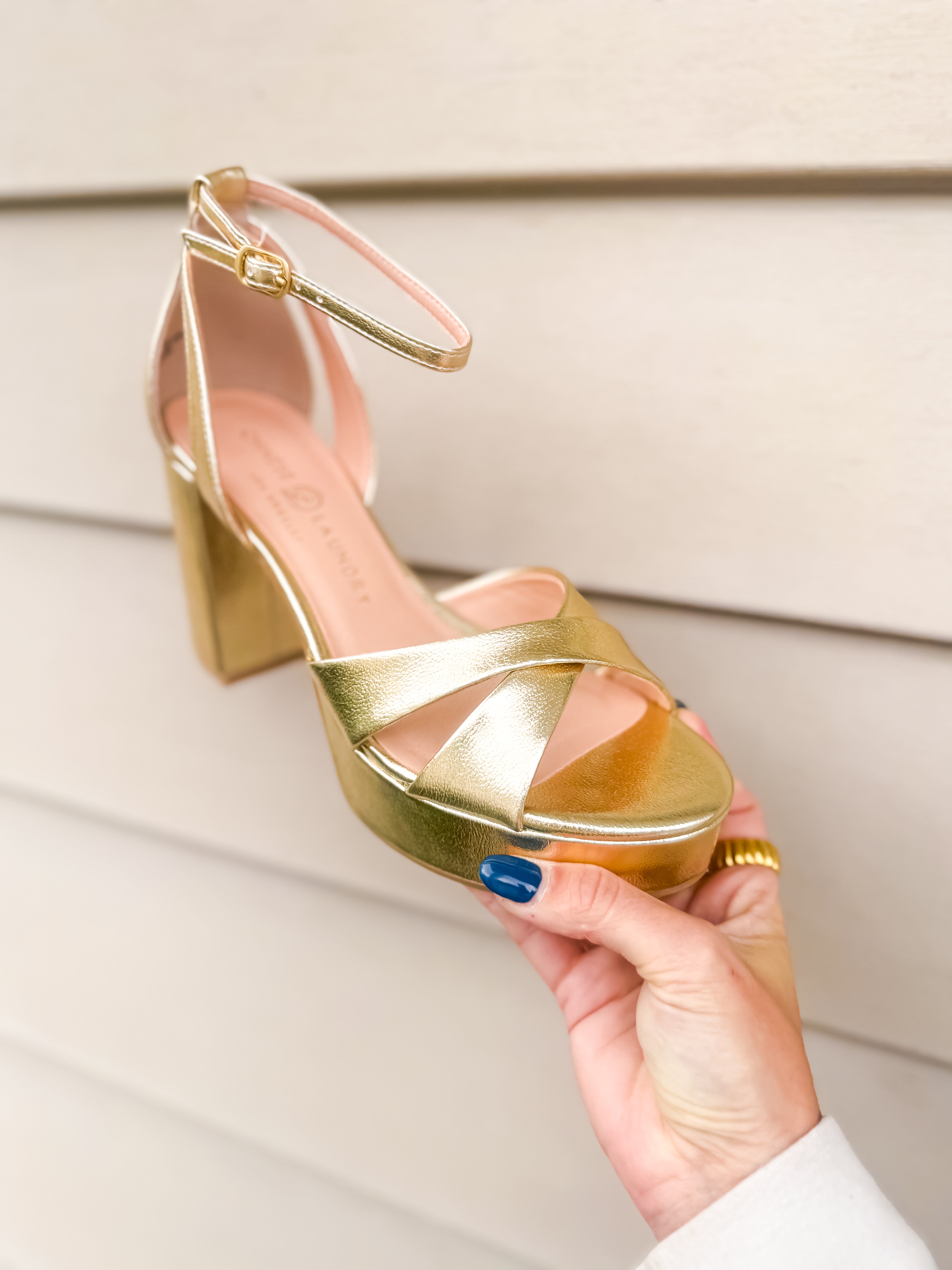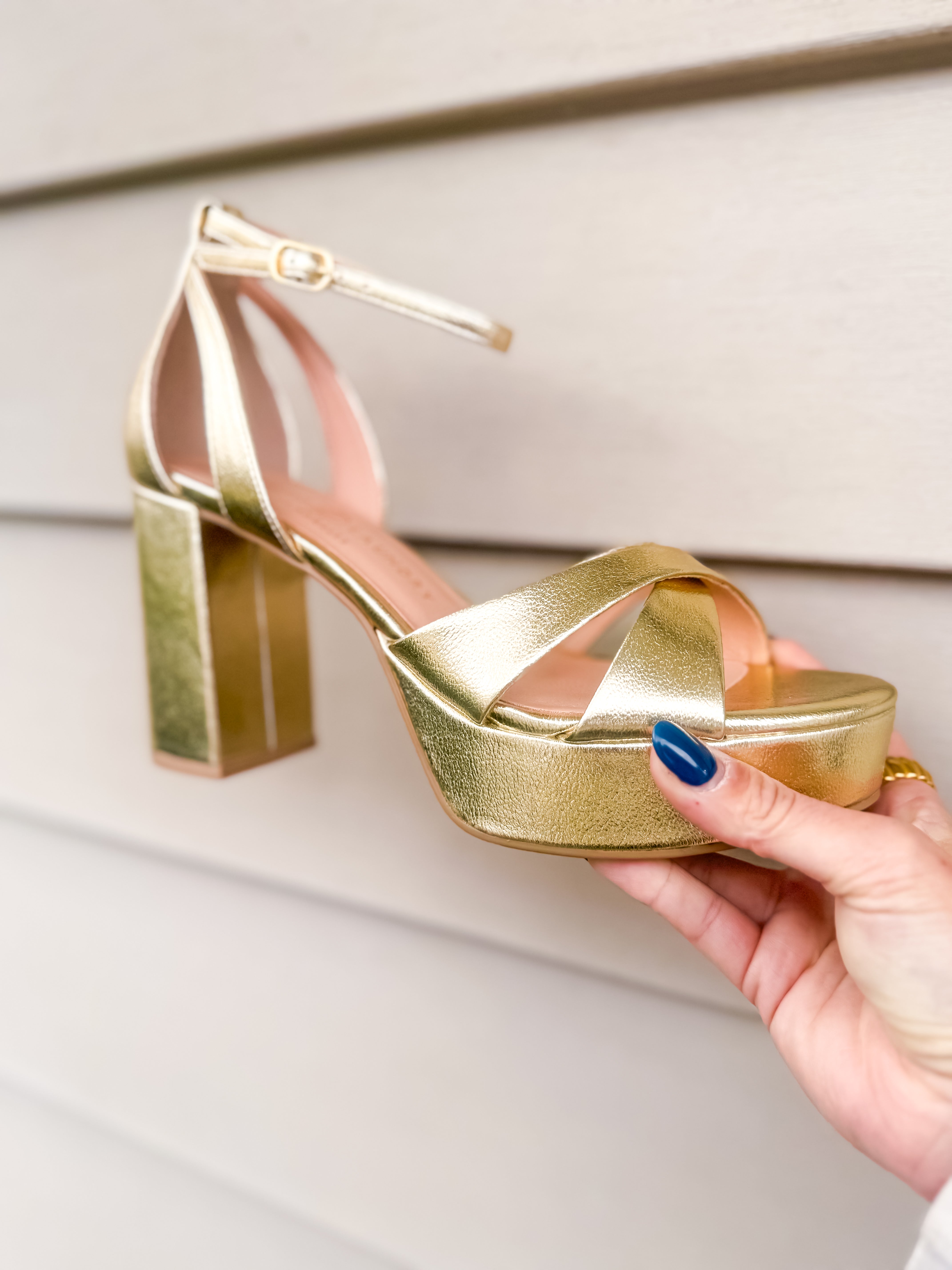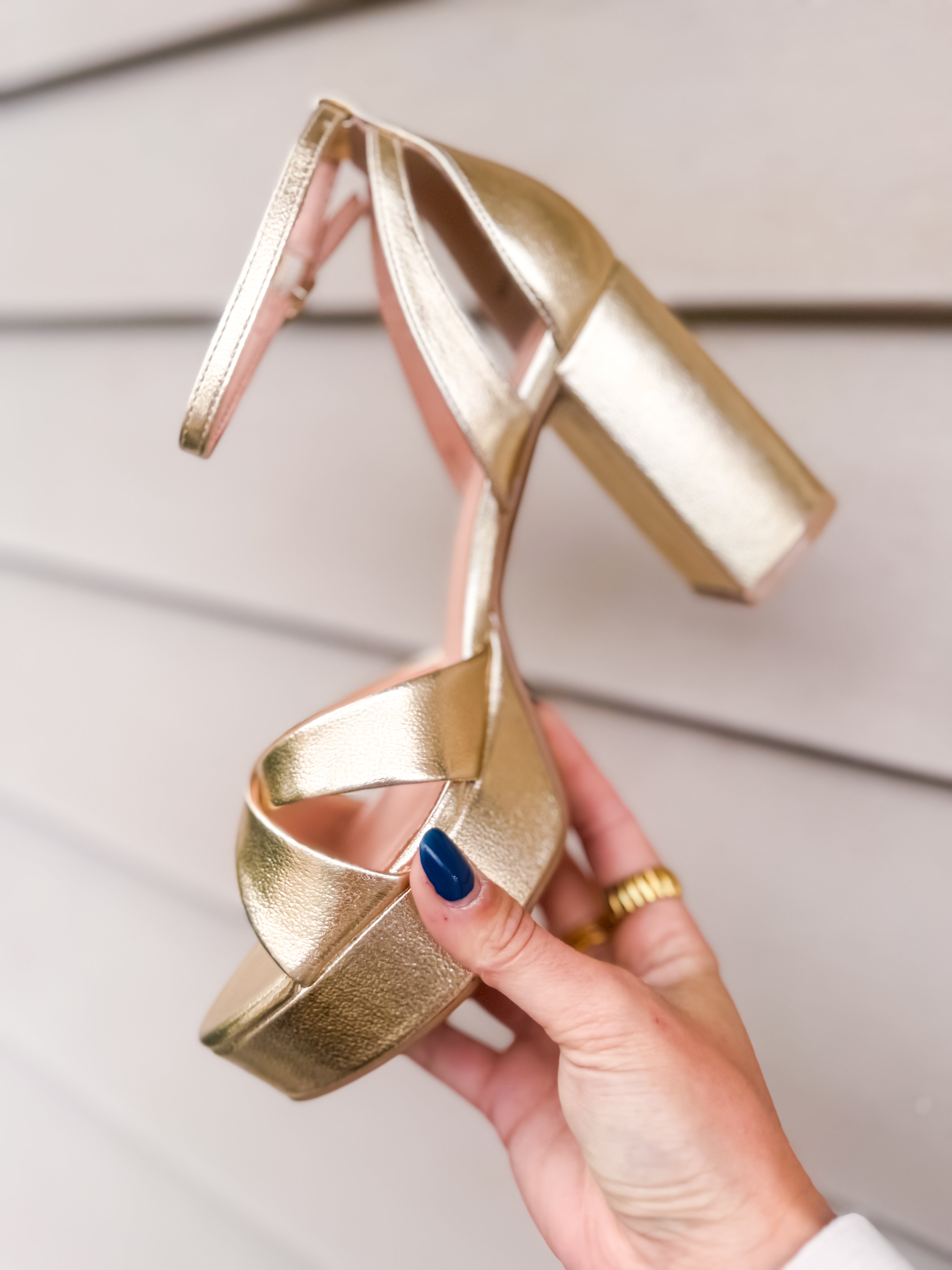Whisper sweet nothings to the evening in the Tammy Metallic Ankle Strap Heel, where metallic charm speaks volumes without uttering a word. This pair commands a presence with its audacious platform and bold chunky heel, ensuring every step echoes sophistication and allure, ideal for the party circuit or enchanting moments on a date.