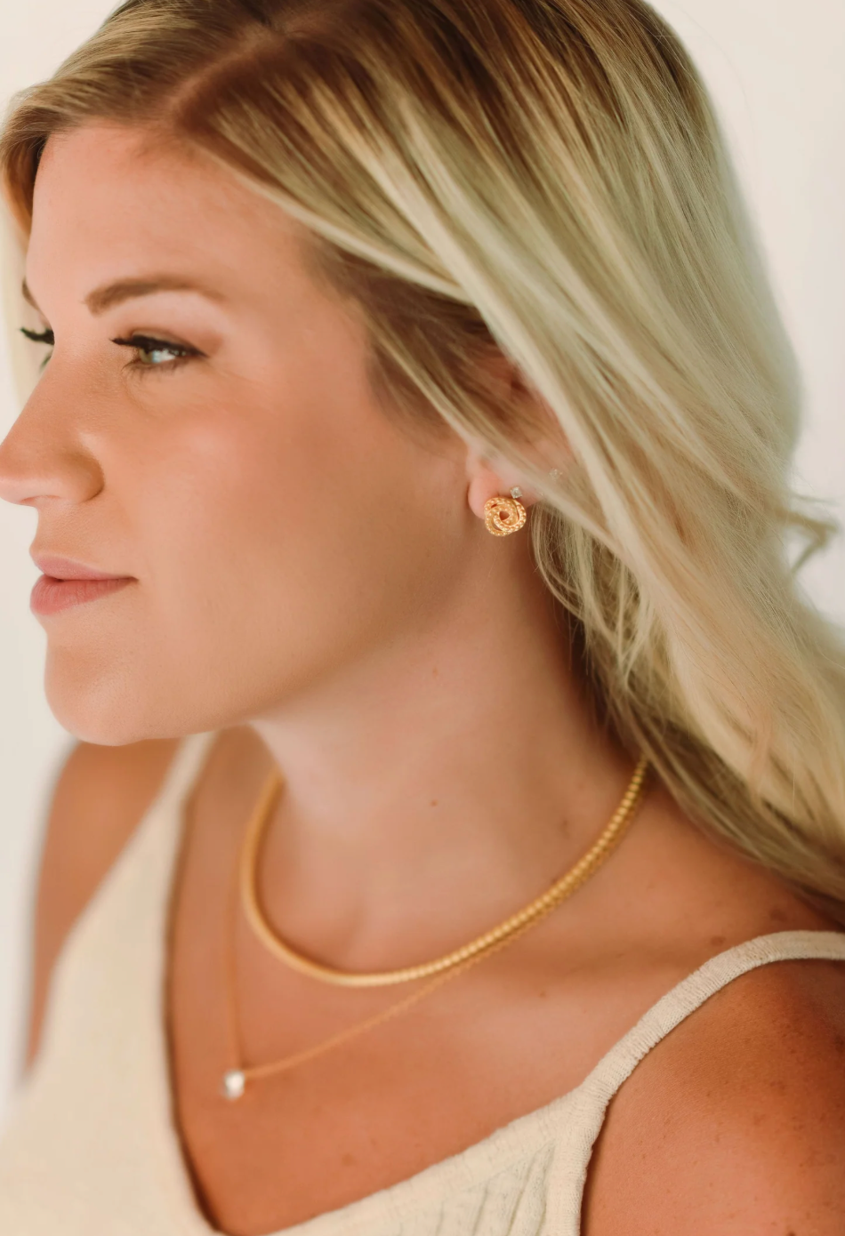 This simple, yet unique necklace is sure to dress up any outfit! It is made up of square beads that really elevate the look! This necklace is made shorter than our others so that it can layer well with other necklaces, and it also has an extender chain so you can wear it longer if you wish. It matches perfectly with our Square Bead Bracelet and Hoops.