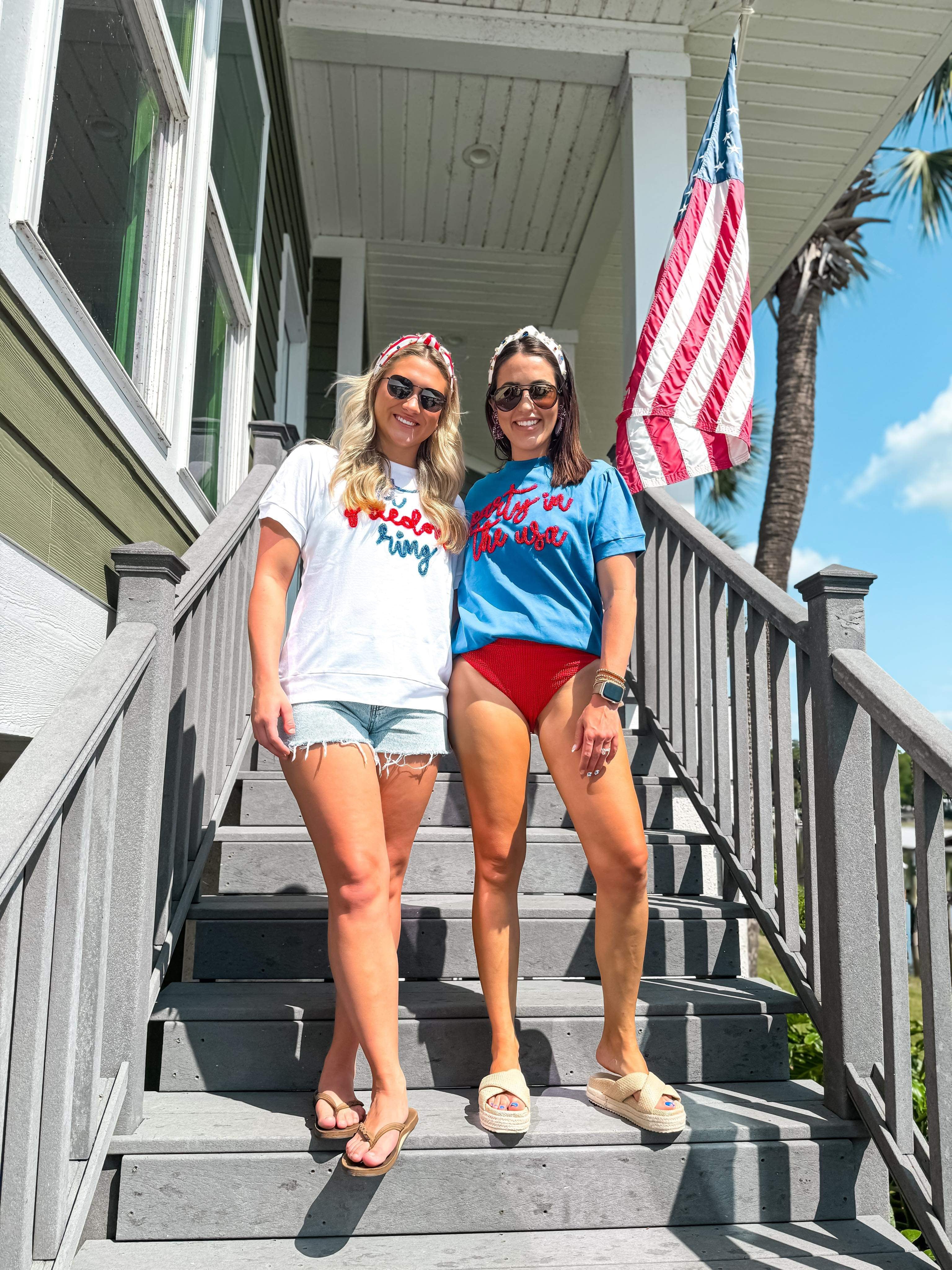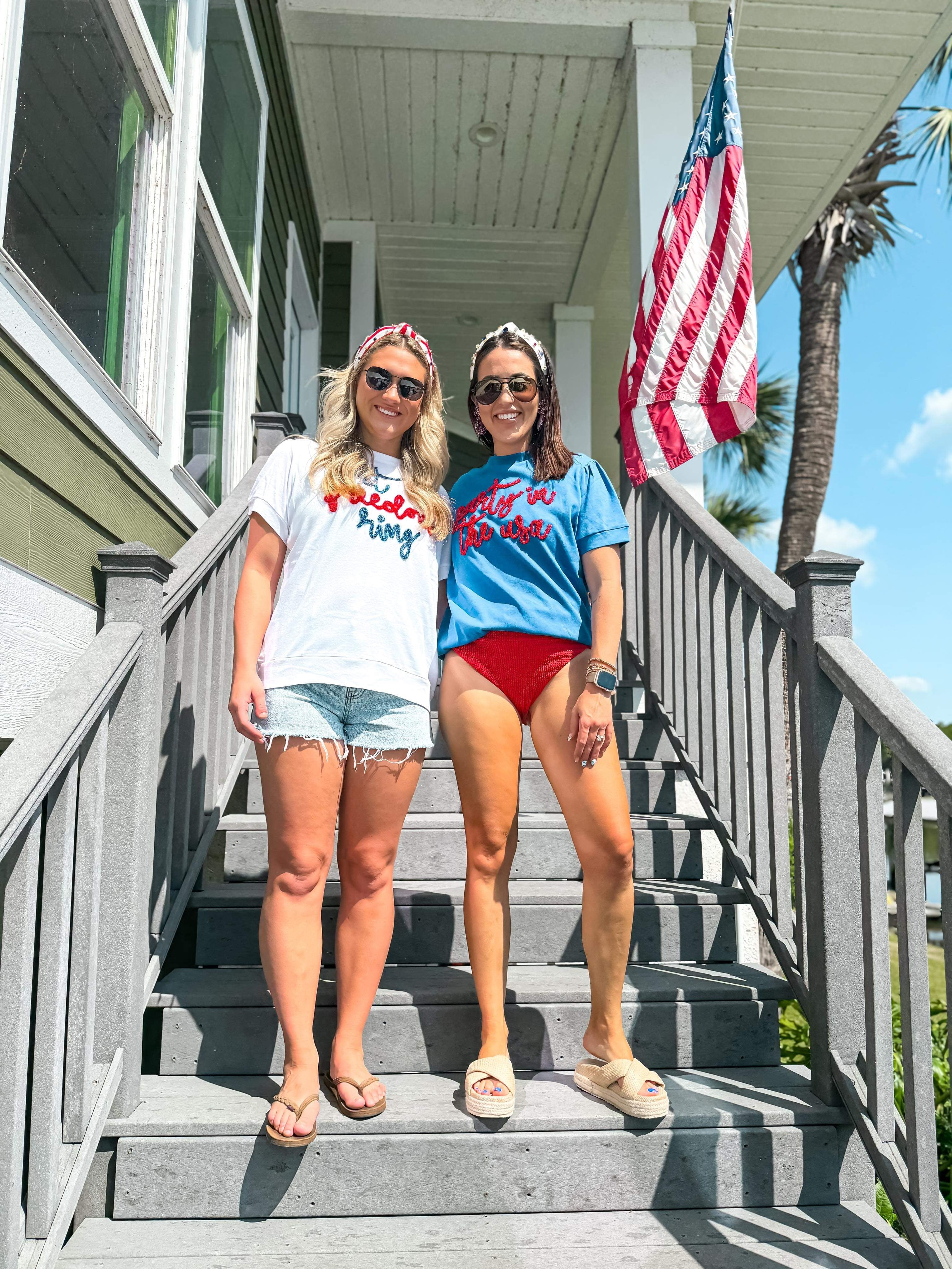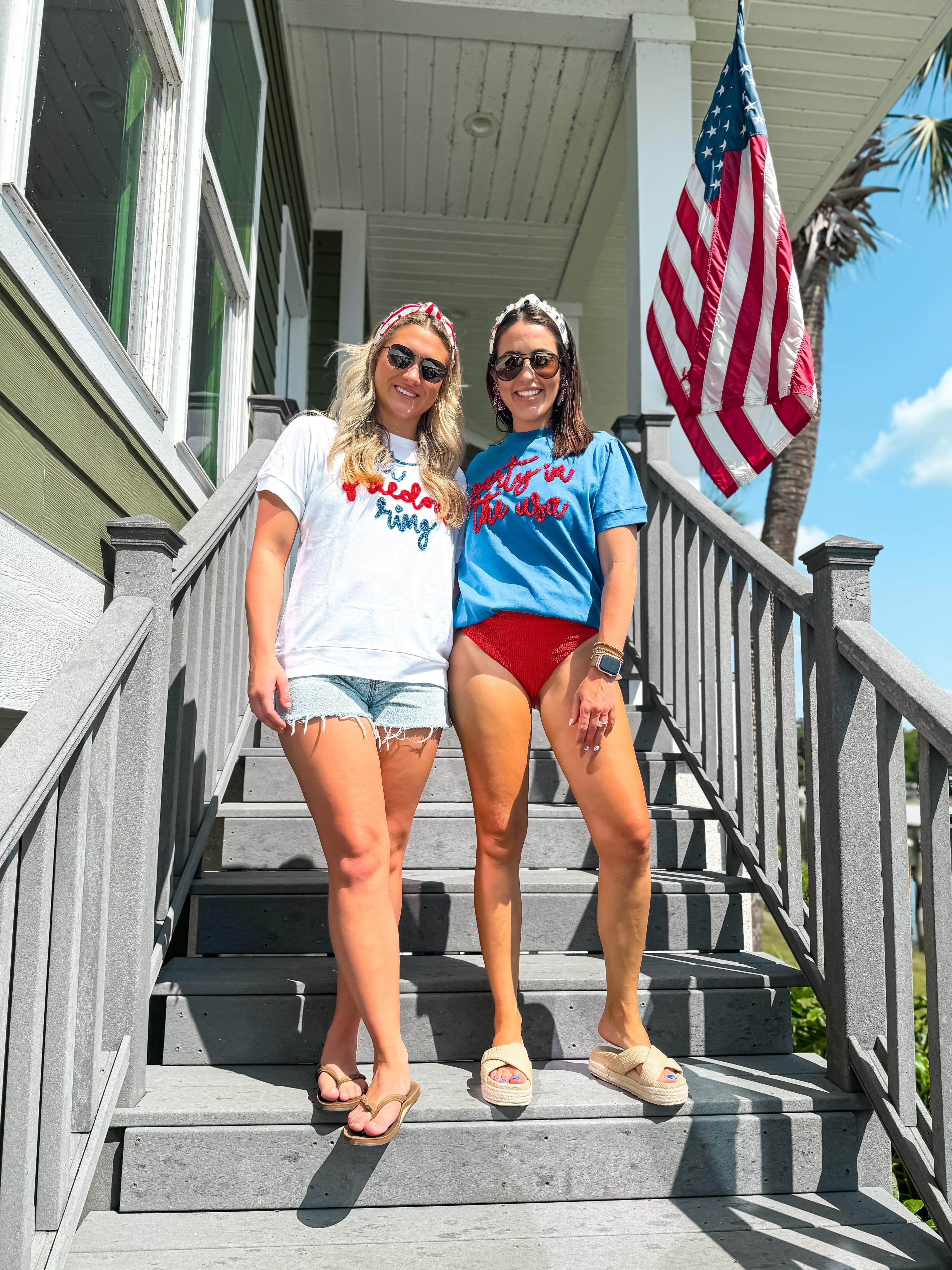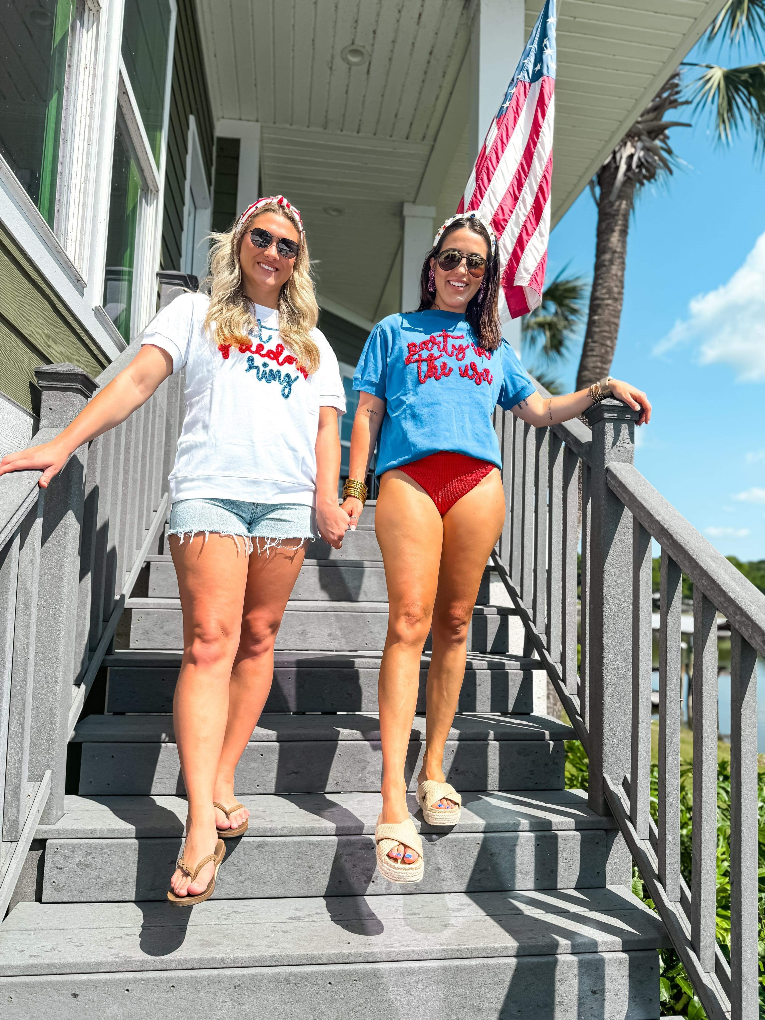 This tee is perfect for your 4th of July festivities! Pair with red denim or your favorite blue jean shorts to complete the look!