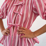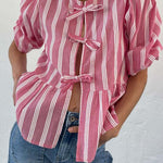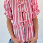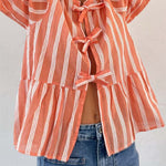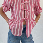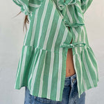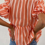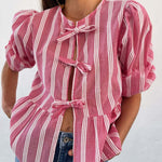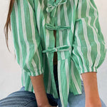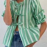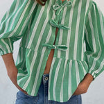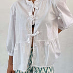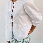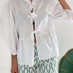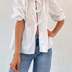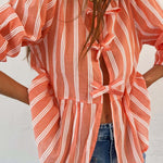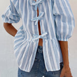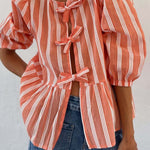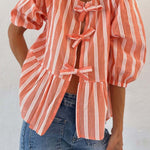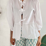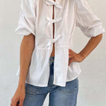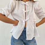 Tied Round Neck Balloon Sleeve Shirt