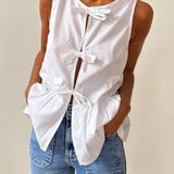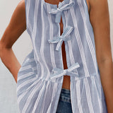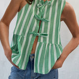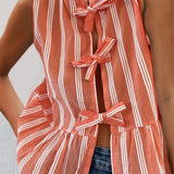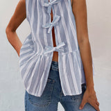 Tied Striped Round Neck Tank