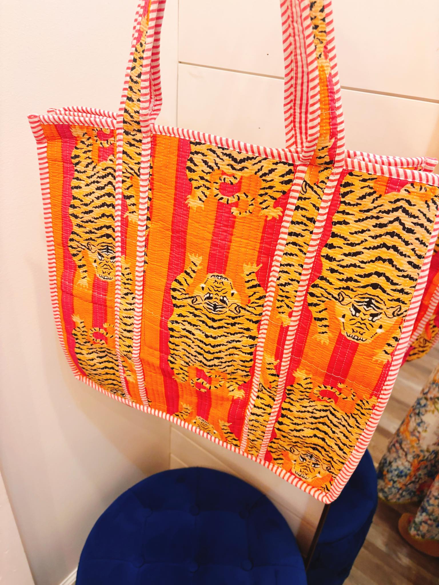 Tiger Strikes Orange Quilted Tote - Final Sale