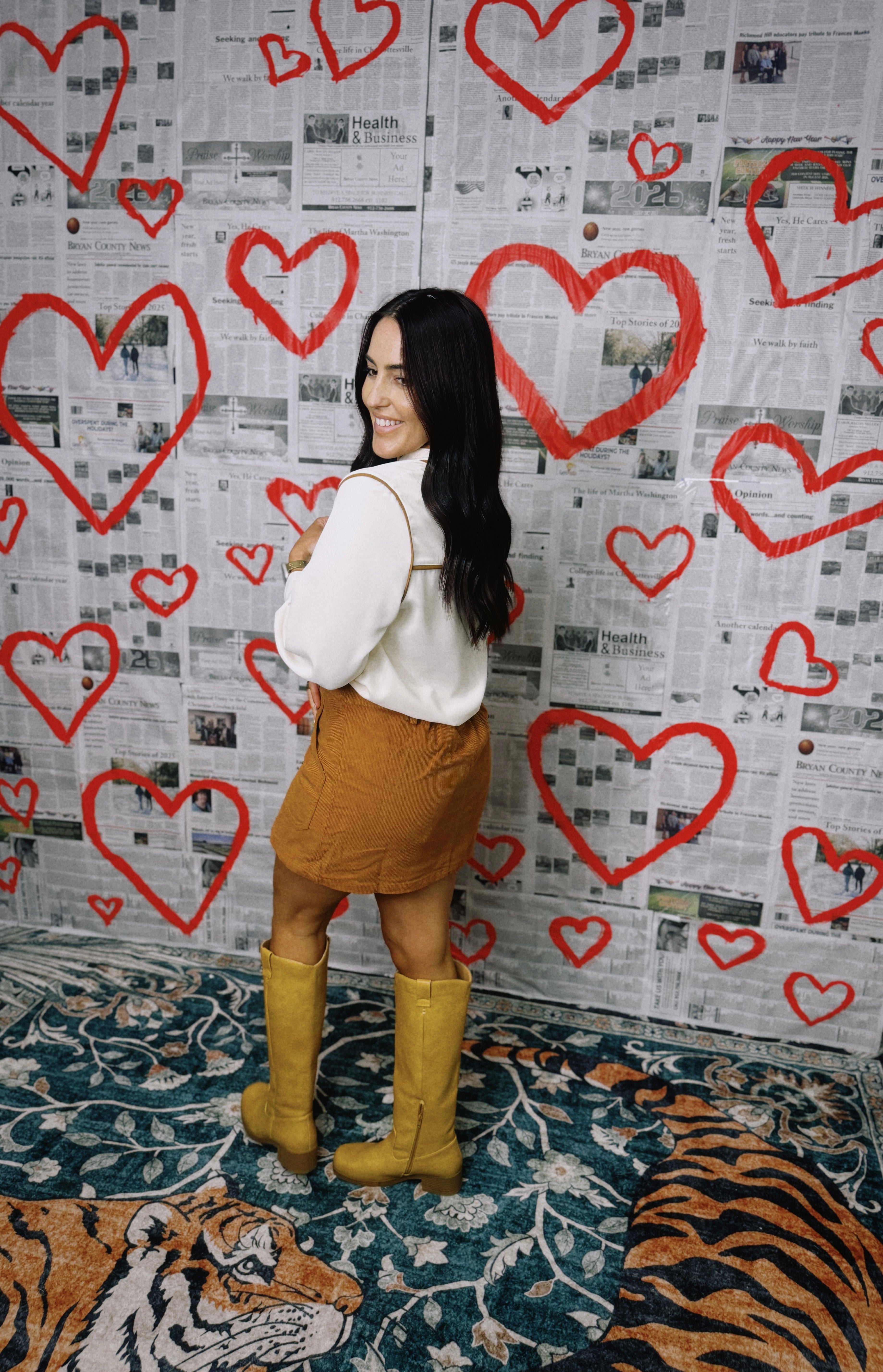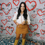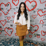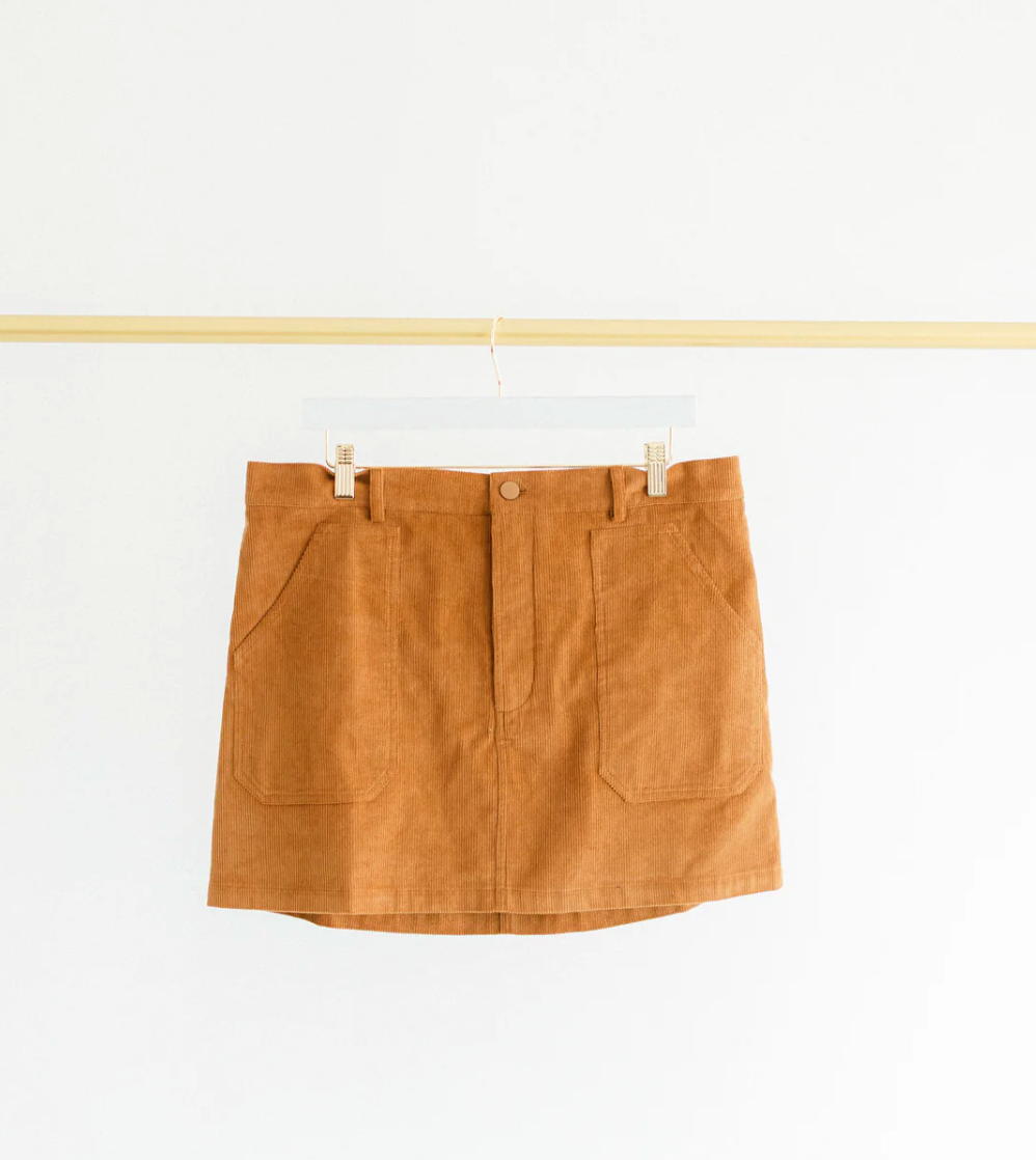 Classic meets modern comfort in this timeless corduroy skort. It combines the structured look of a mini skirt with the practicality of built-in shorts underneath and elastic in the waist band. Front patch pockets, belt loops, custom printed lining inside, and a button-zip closure give it a polished, everyday feel that pairs perfectly with knits, blouses, or boots. This skort in cognac matches perfectly with the corduroy on our Victoria Vest! The chocolate brown looks so good with many of our blouses!