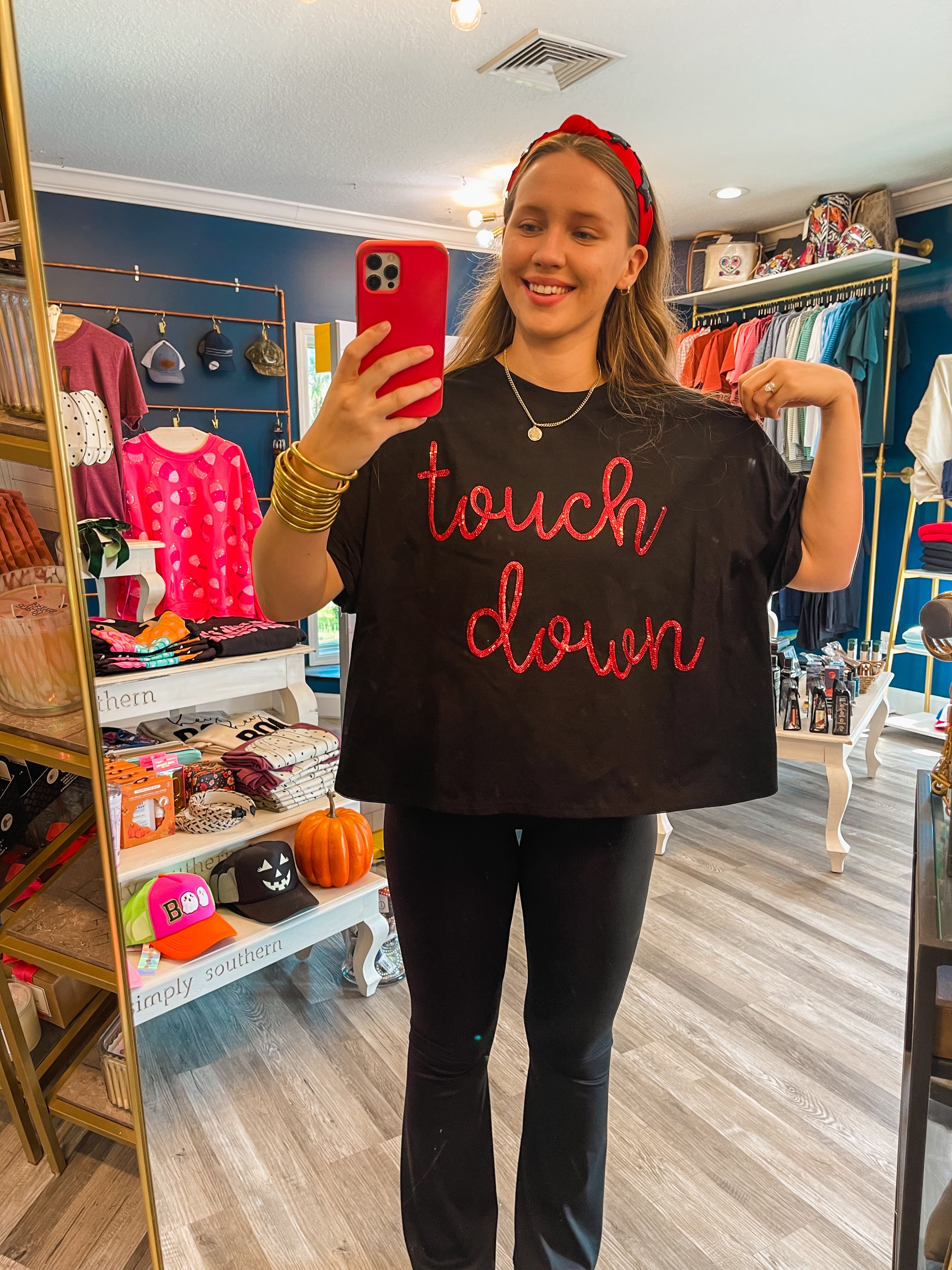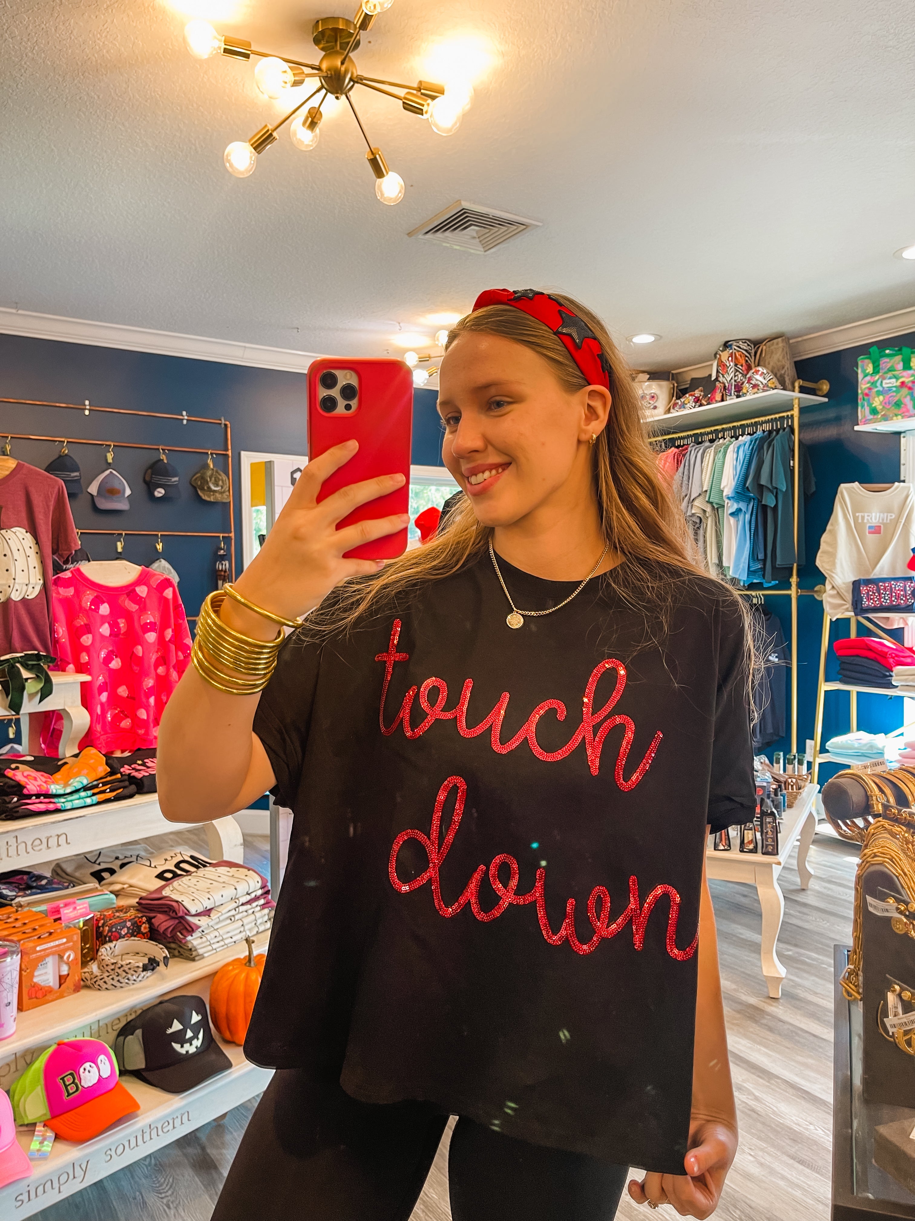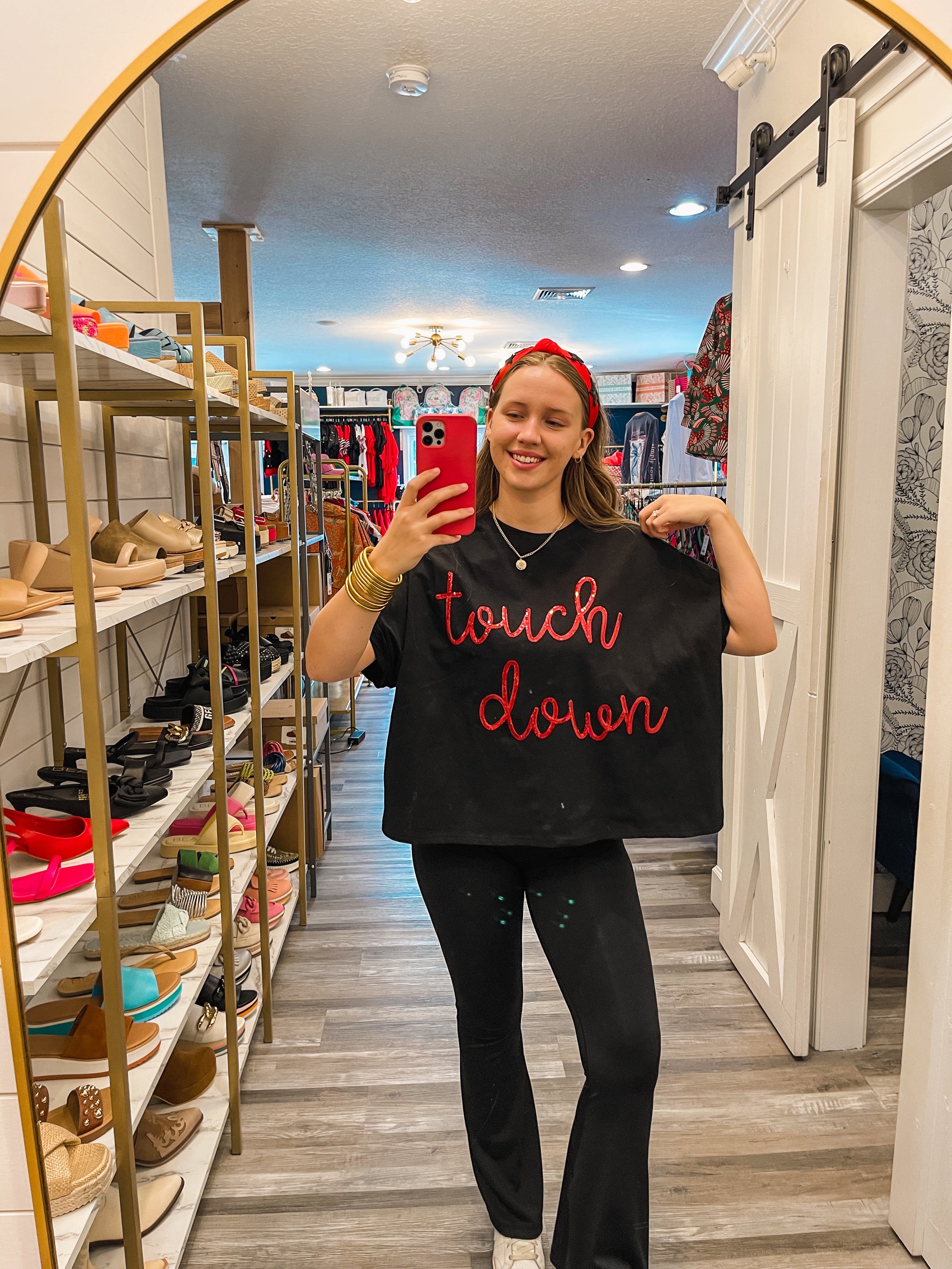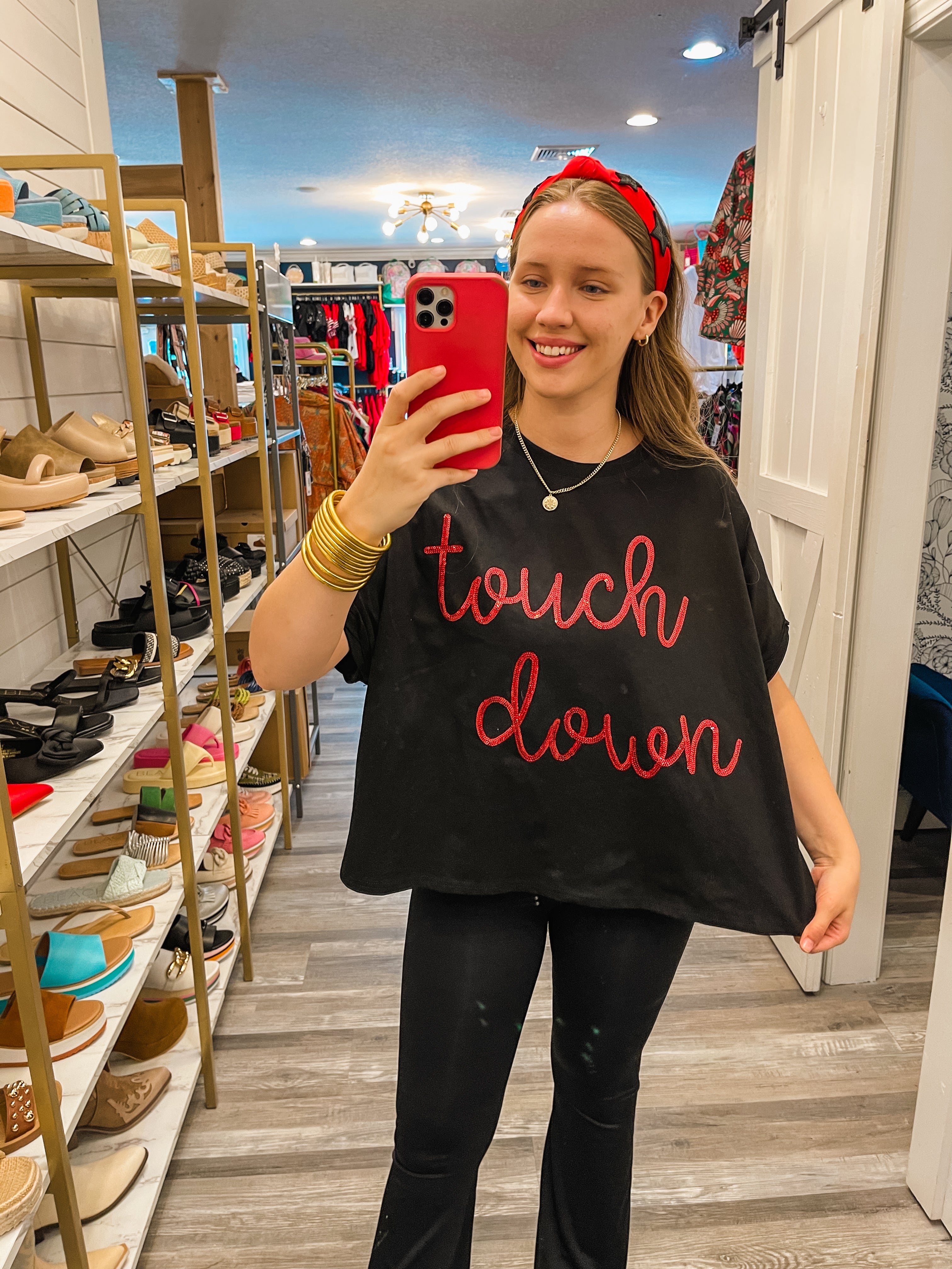 'touch Down' Sequin Embroidery Oversized Top- Black/Red