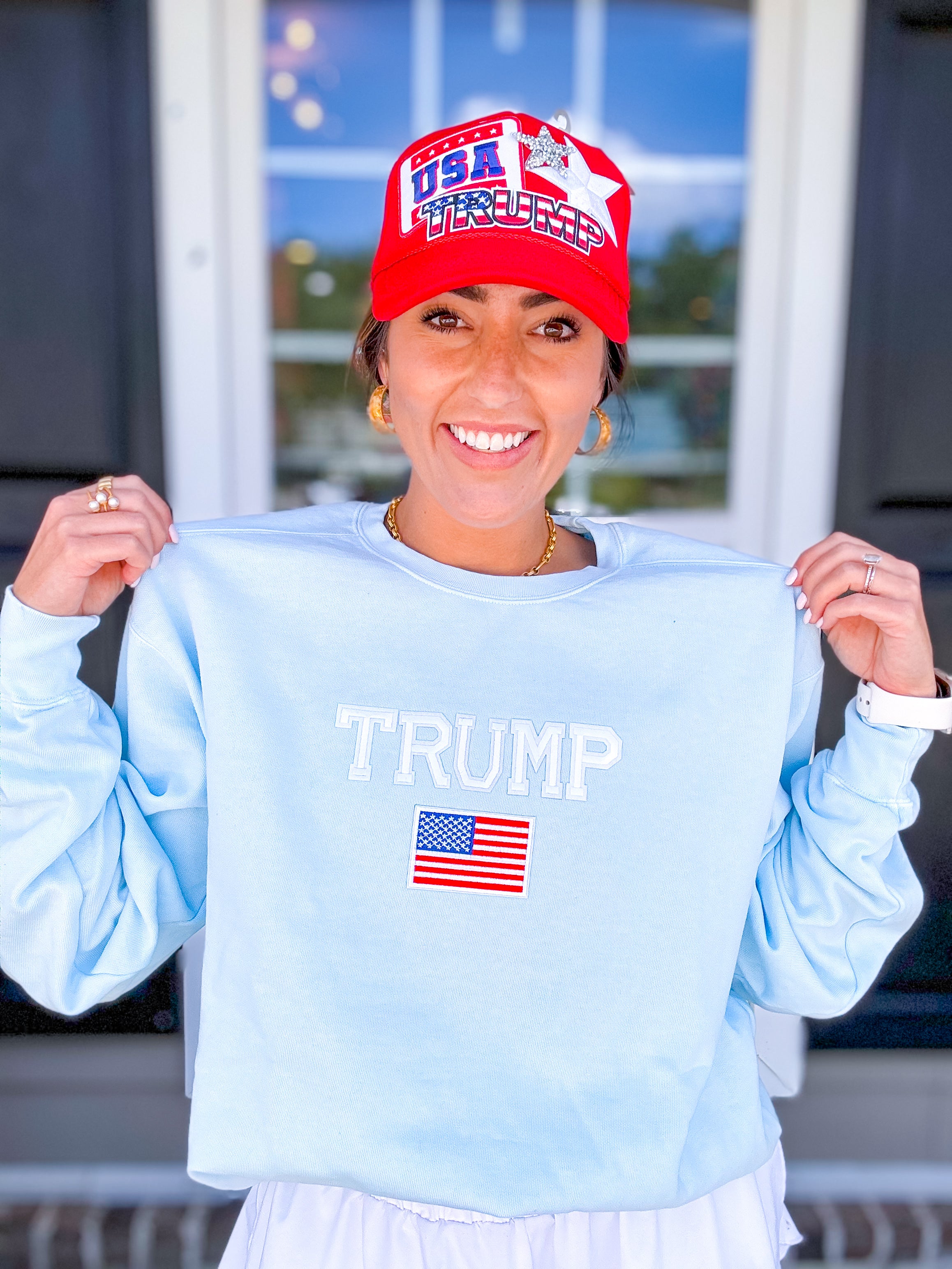 Trump Crewneck Sweatshirt- Light Blue