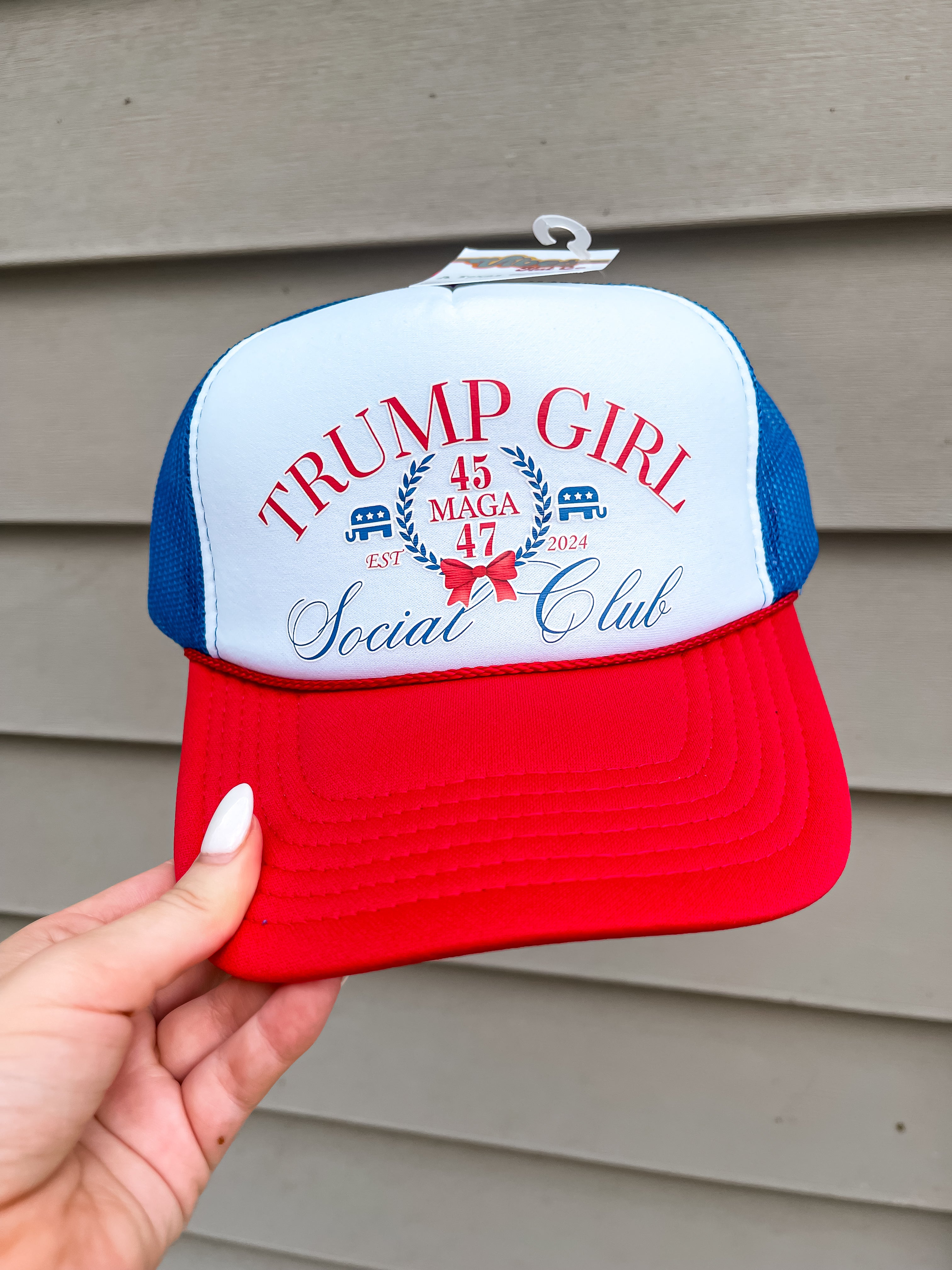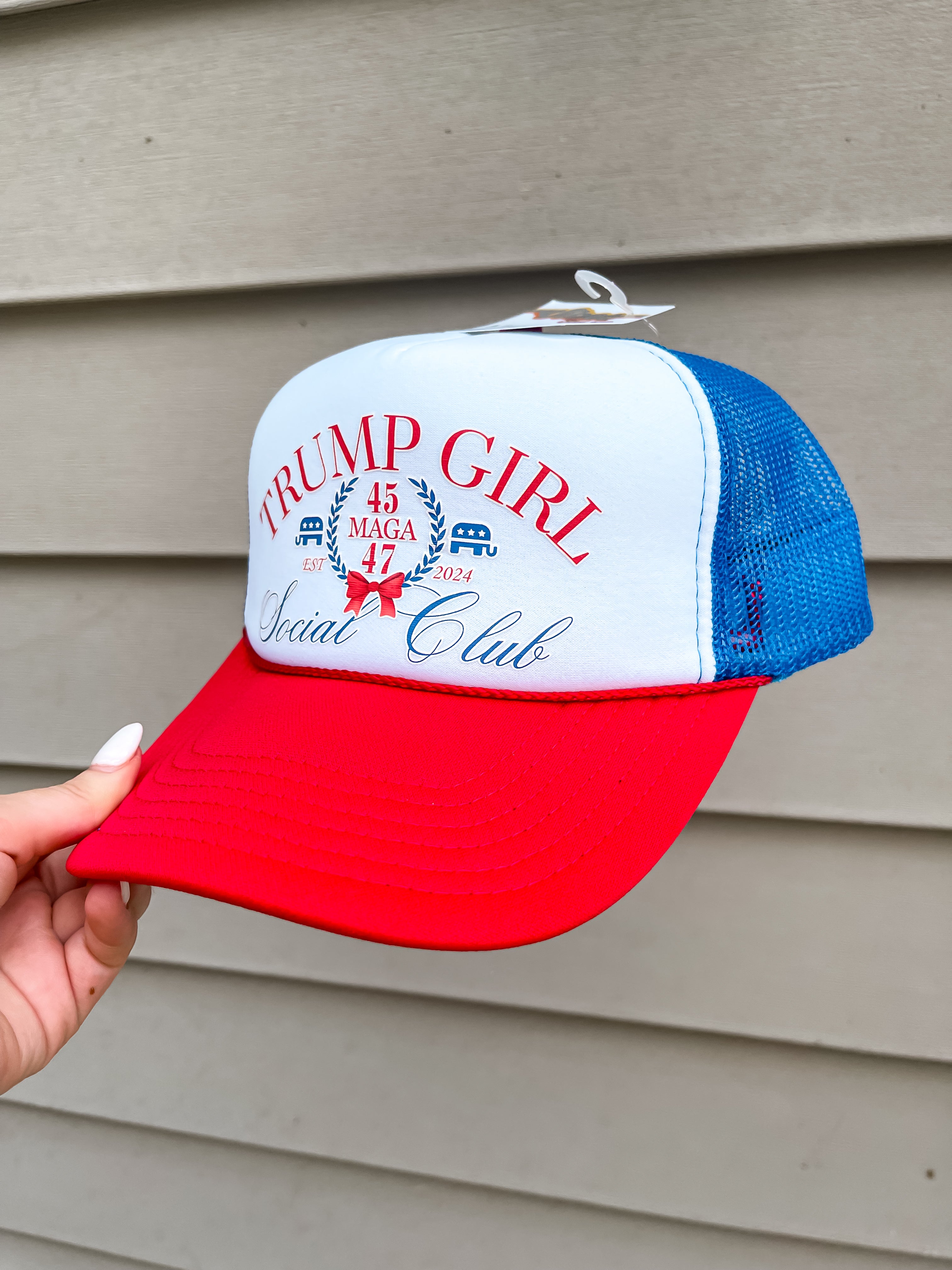 Trump Girl Social Club Trucker Hat- Red/Blue