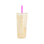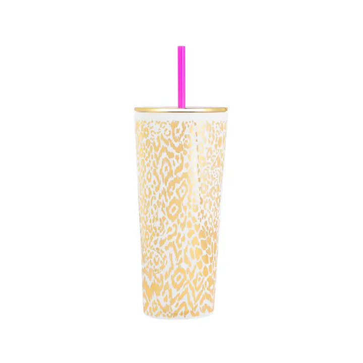 Sip in style with this 24 ounce acrylic printed tumbler. Made of BPA-free plastic and fashioned with the latest Lilly print, a luxe gold lid, and a reusable straw, this insulated tumbler is fit for sipping with Lilly Pulitzer herself!
