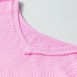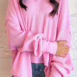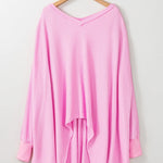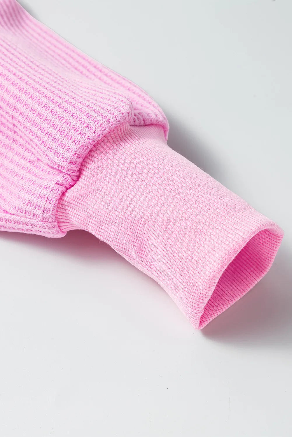 Waffle-Knit V-Neck Long Sleeve Blouse