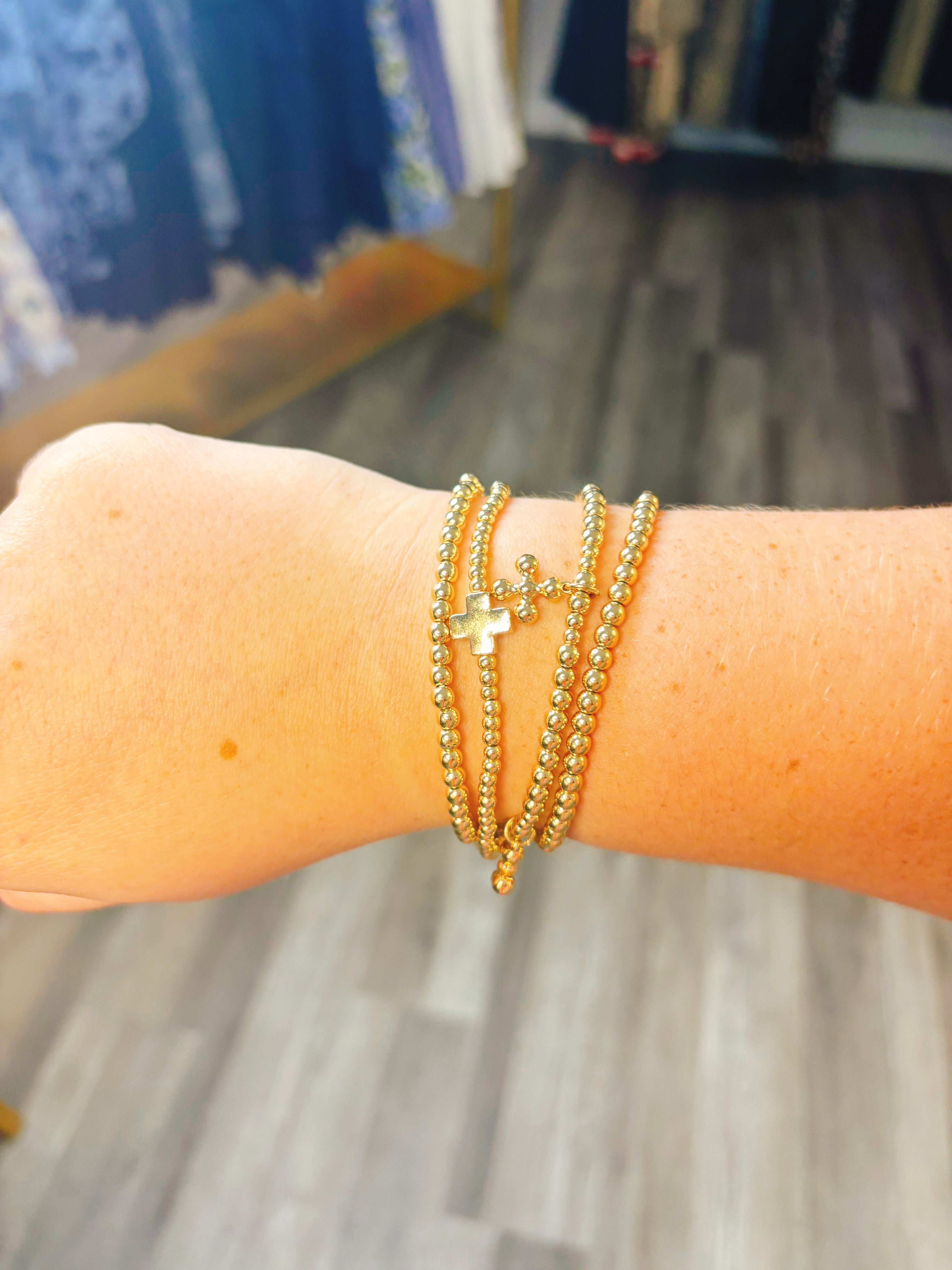 Water Resistant 4 Gold Cross Charm Stretch Bracelets