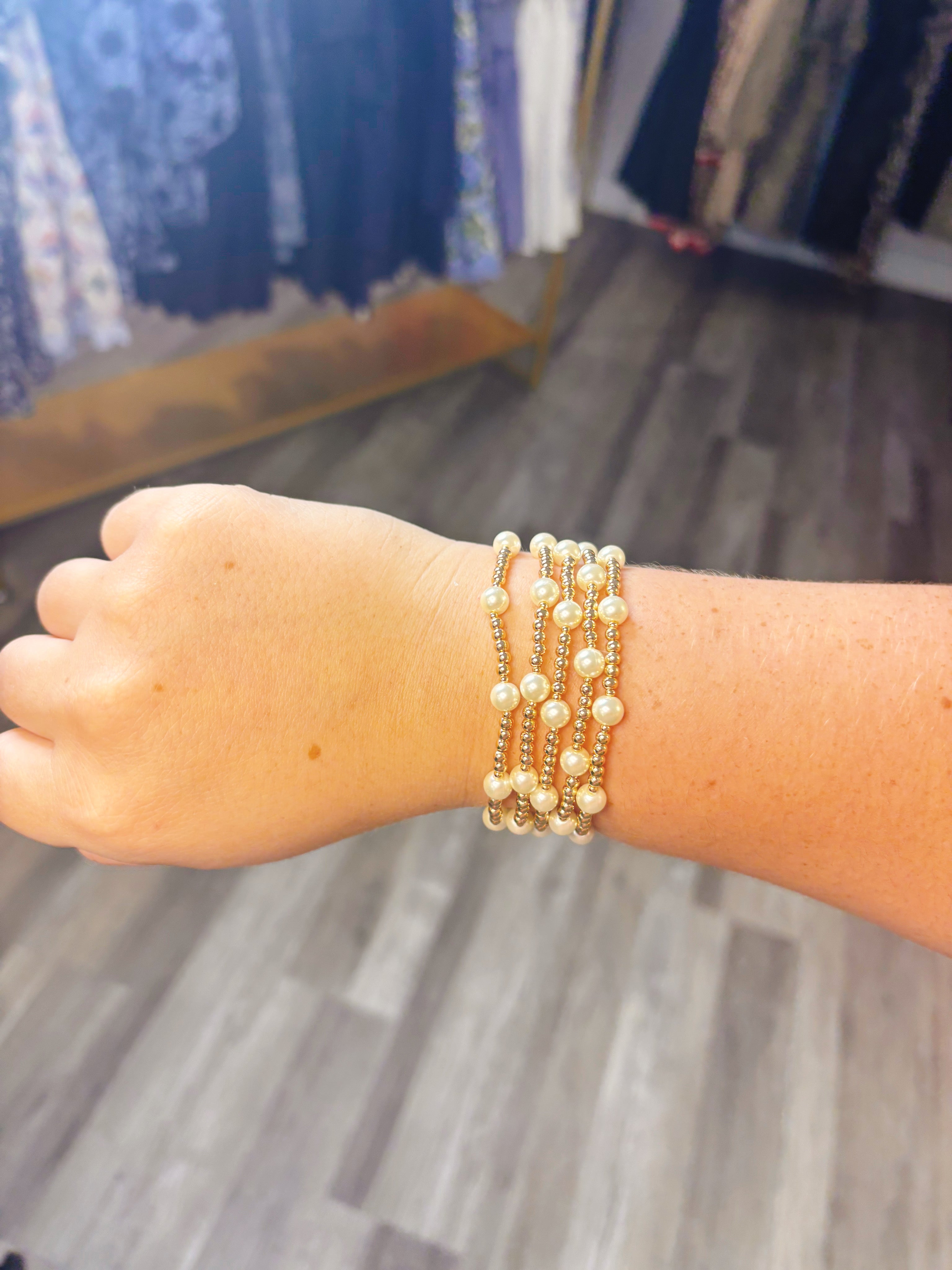 Water Resistant Set of 5 3 mm Small Pearl Bracelet