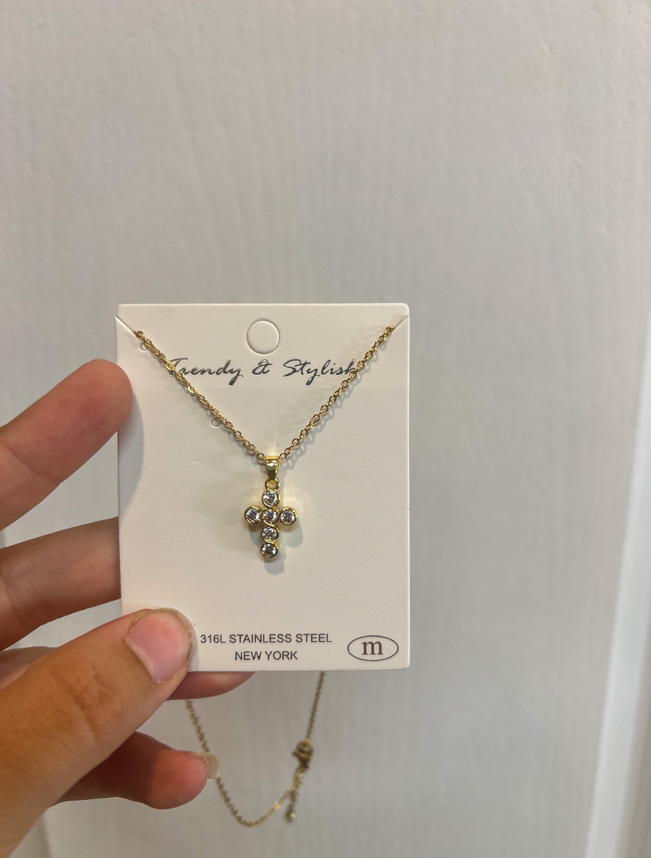 Waterproof Stainless-Steel Gold Chain - Rhinestone Cross Charm Necklace - Final Sale