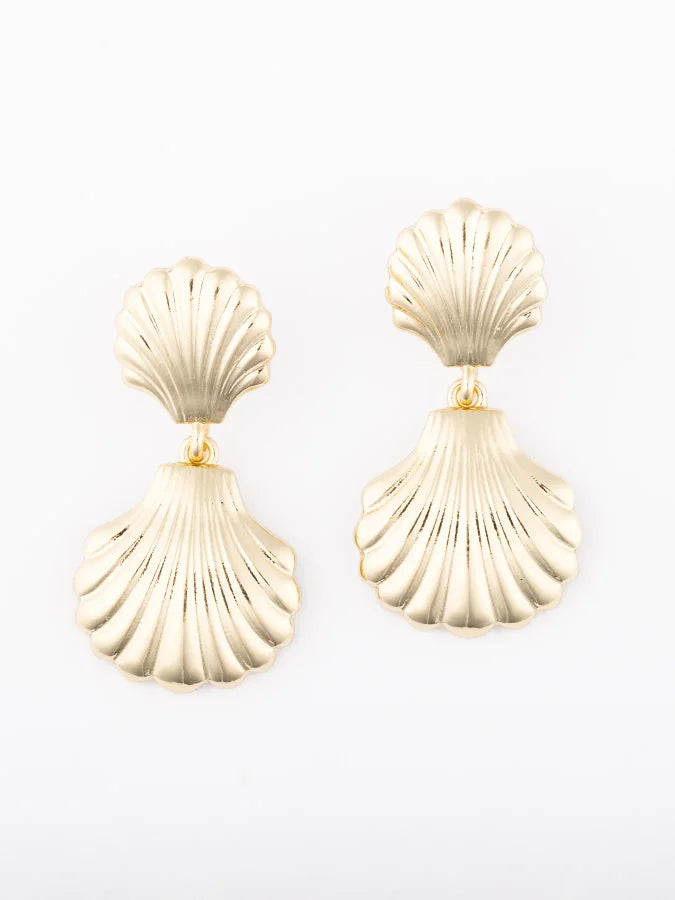 Capture coastal charm with our classic Wrenley Earrings. These double seashell earrings add a touch of seaside elegance to your everyday look.